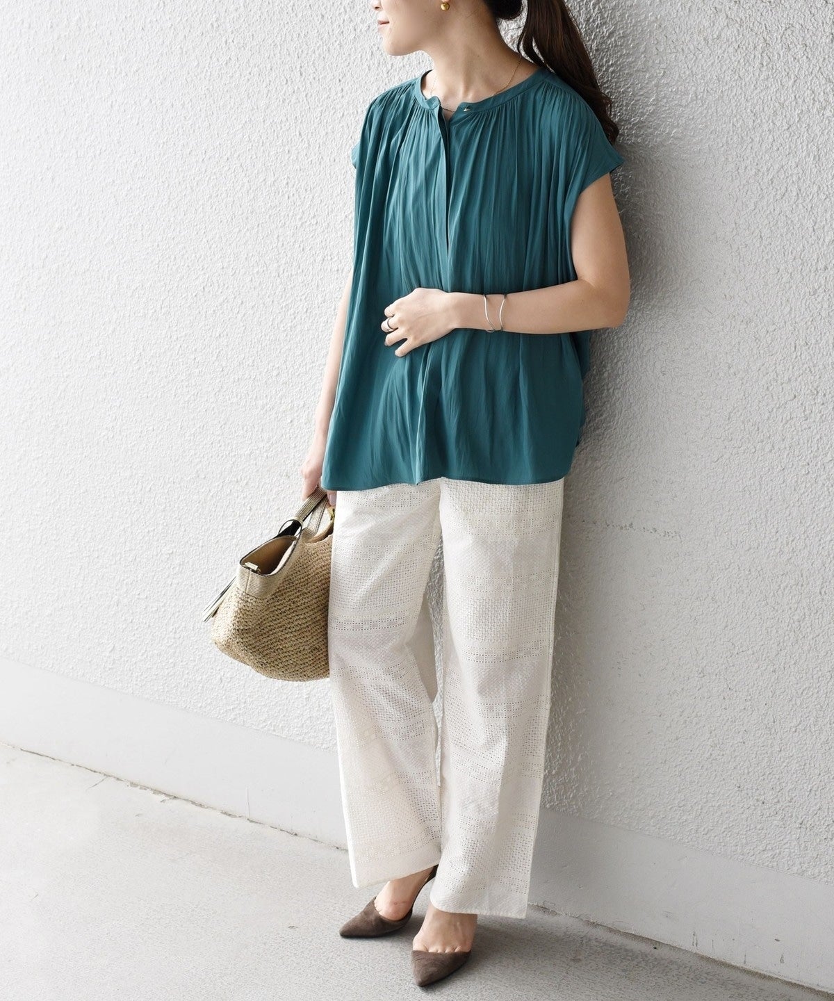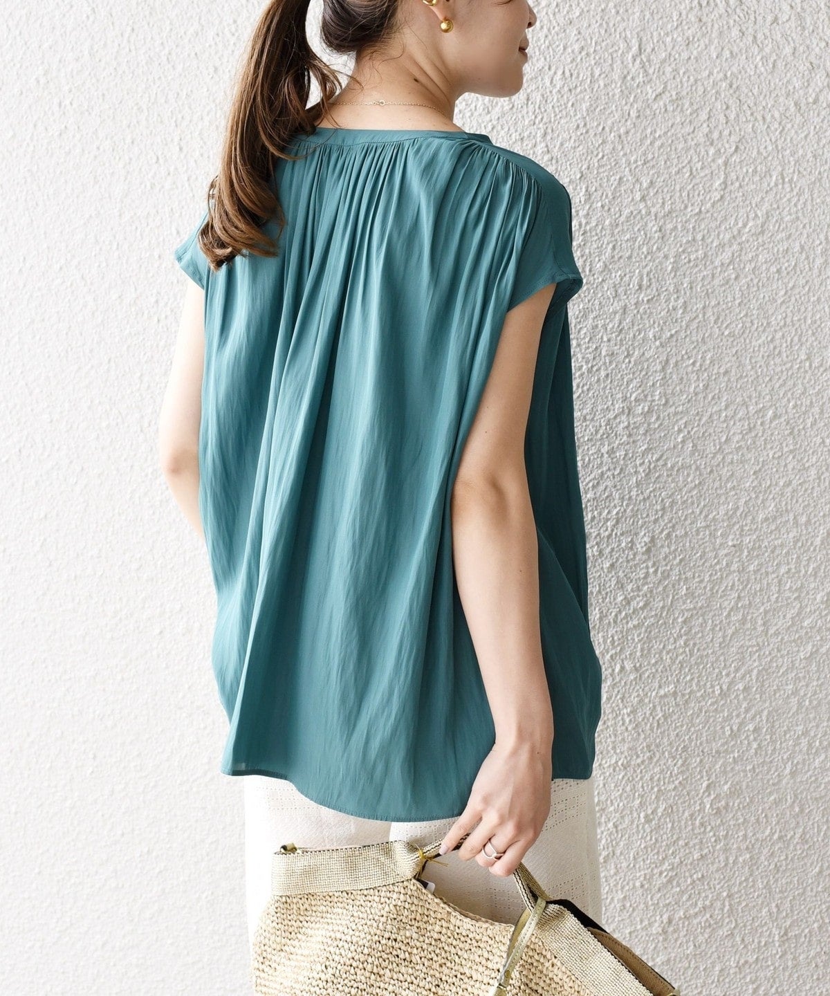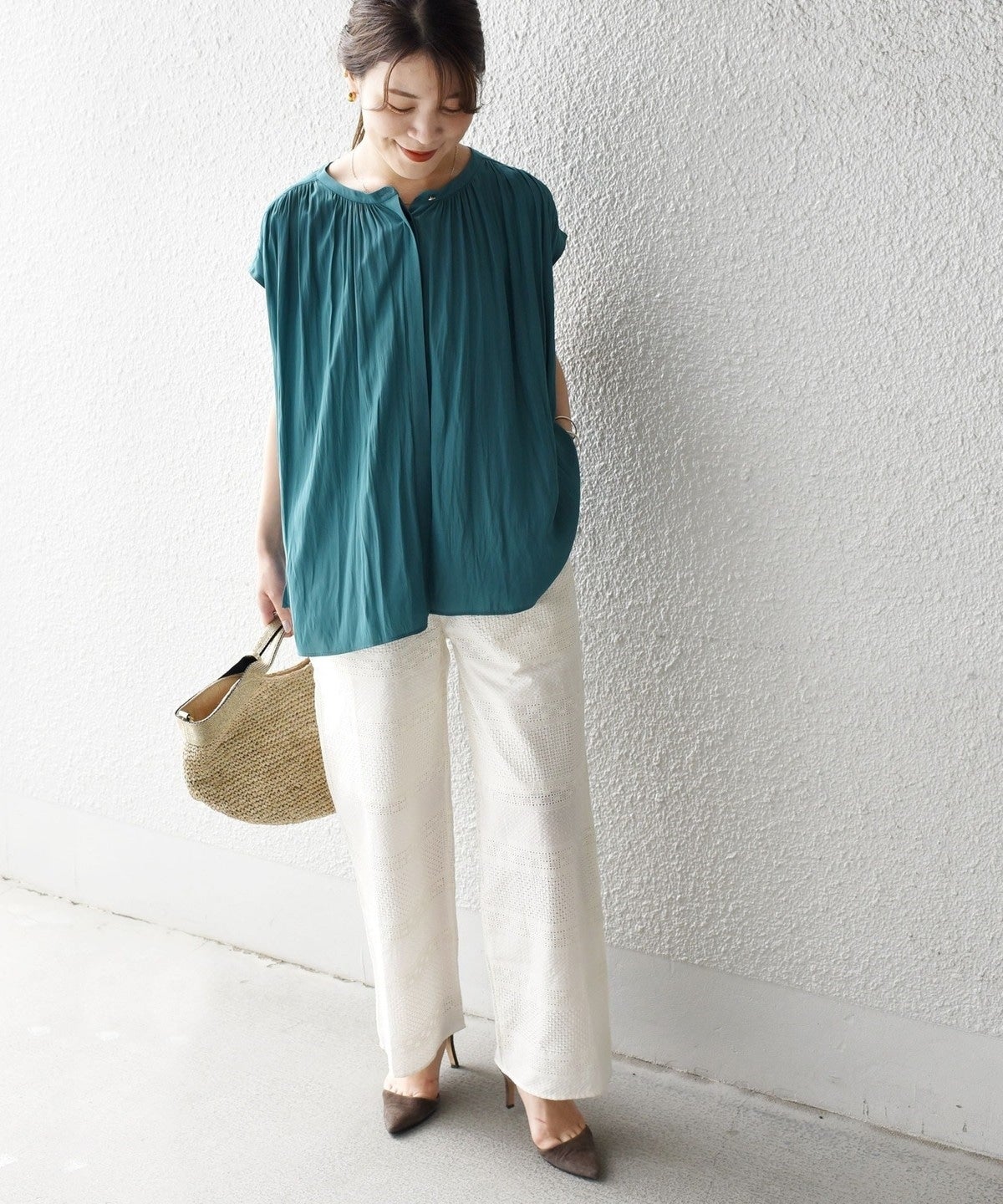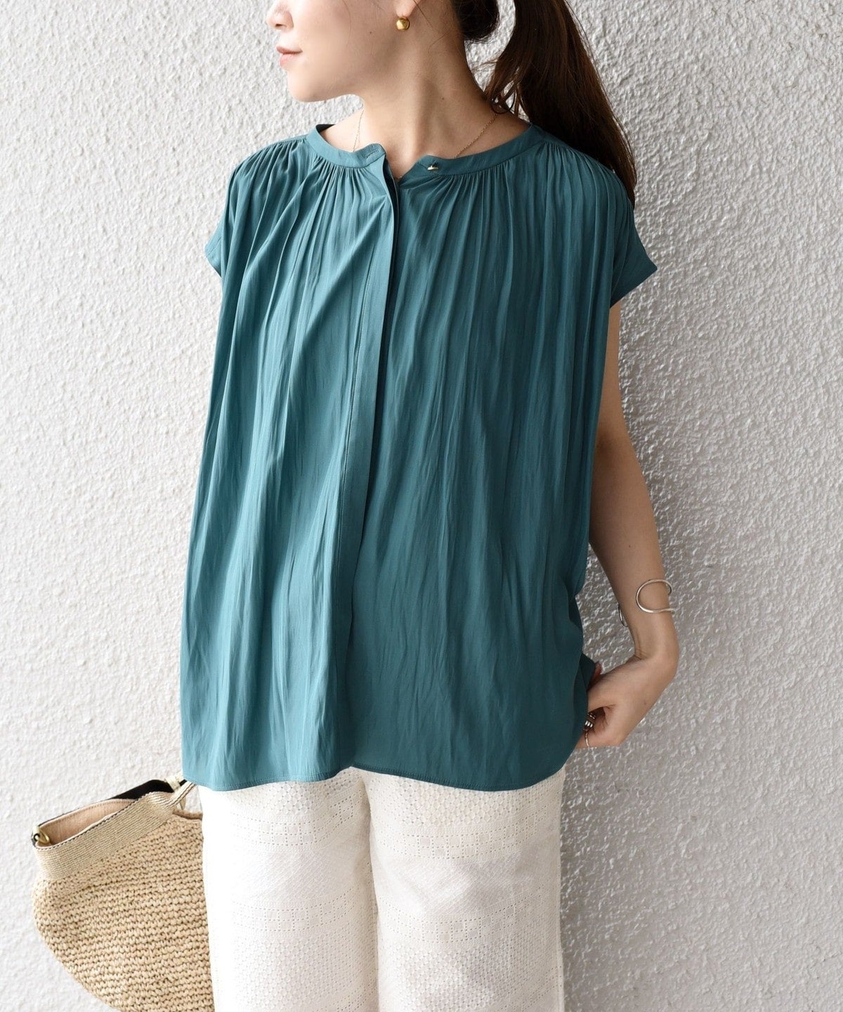 繊細なギャザーが女性らしいドレープを演出してくれるブラウス。