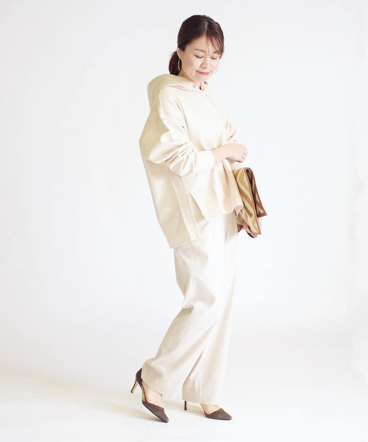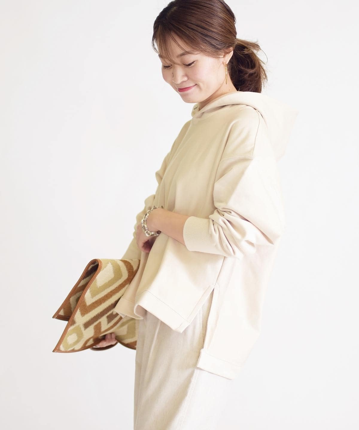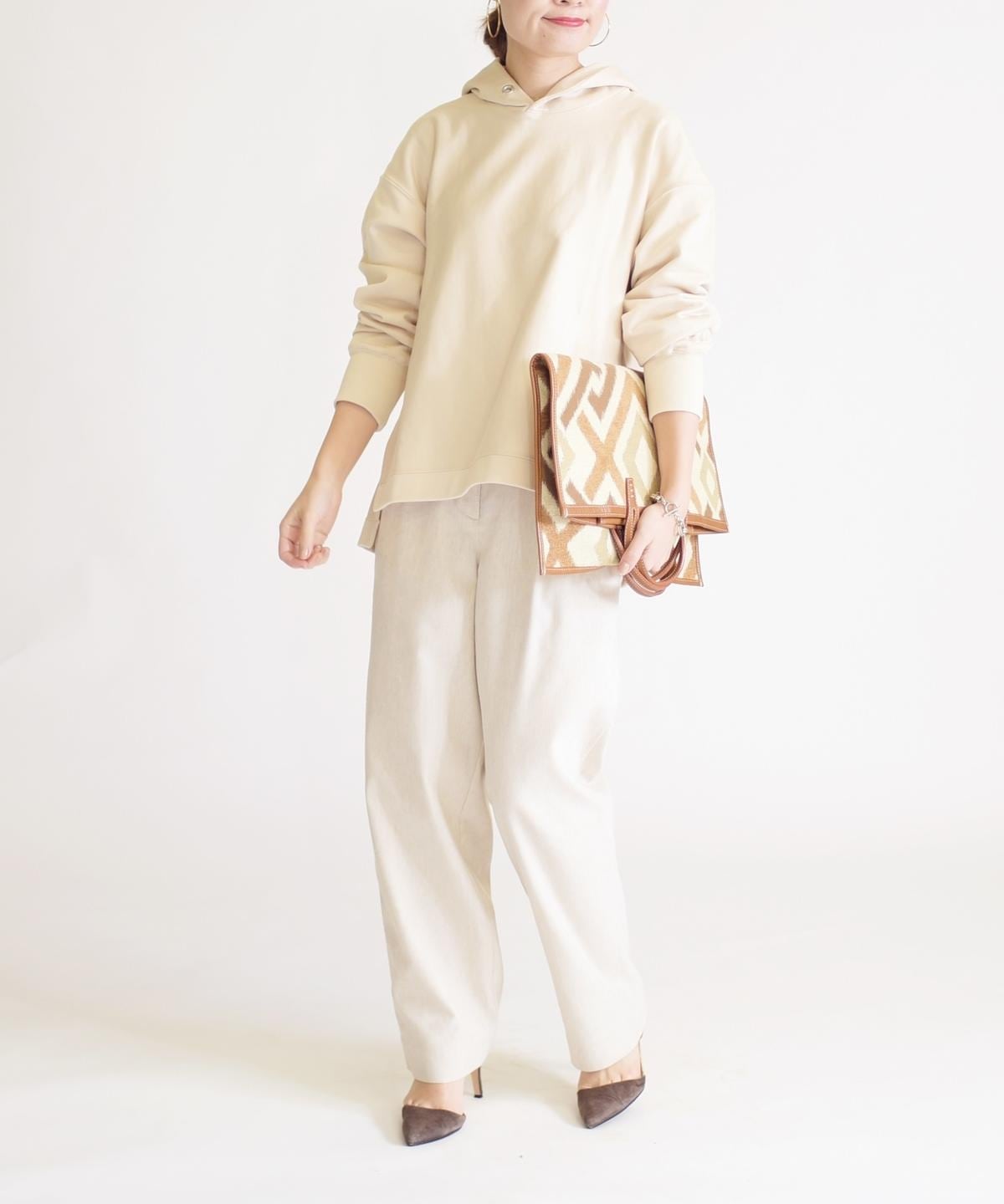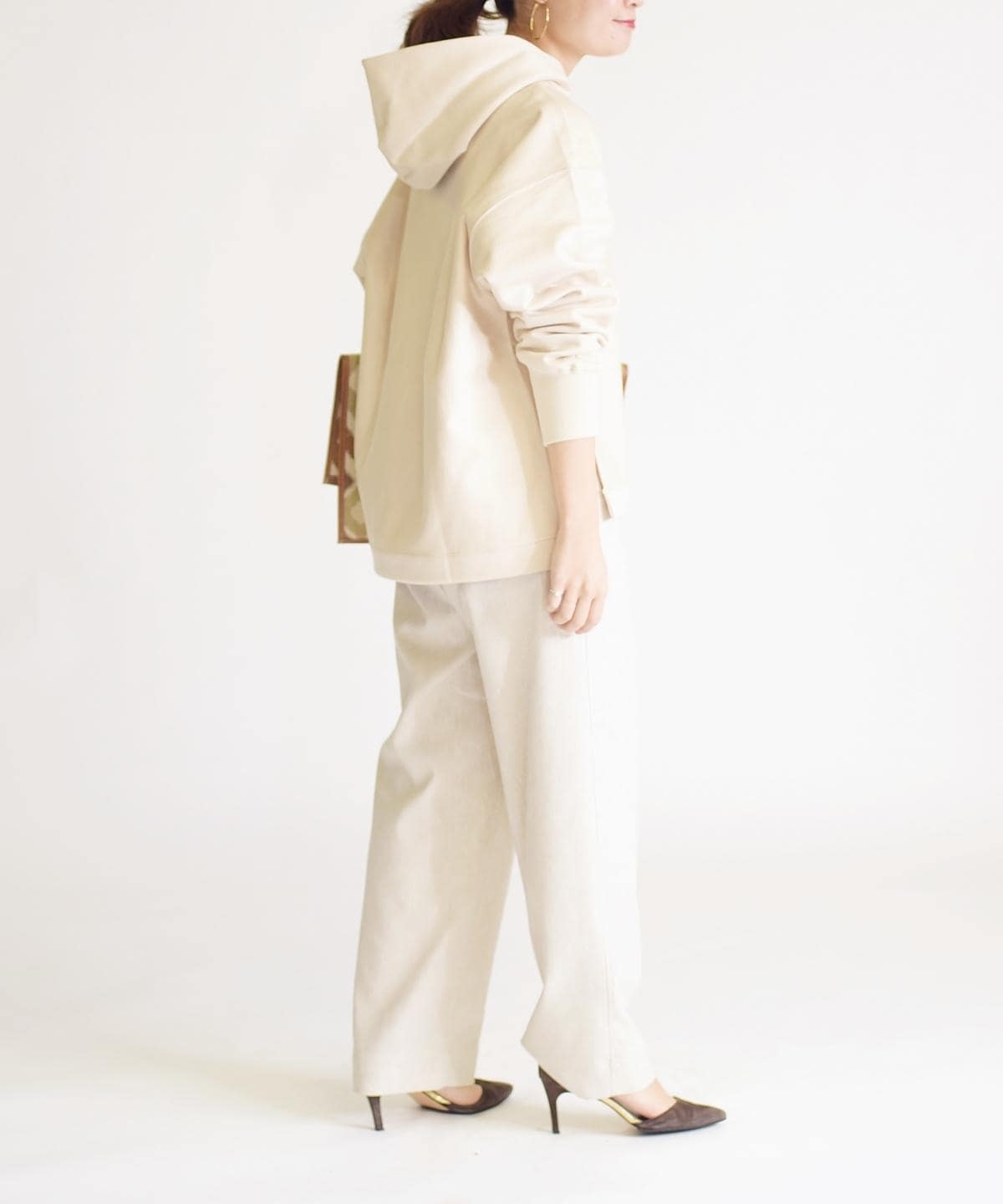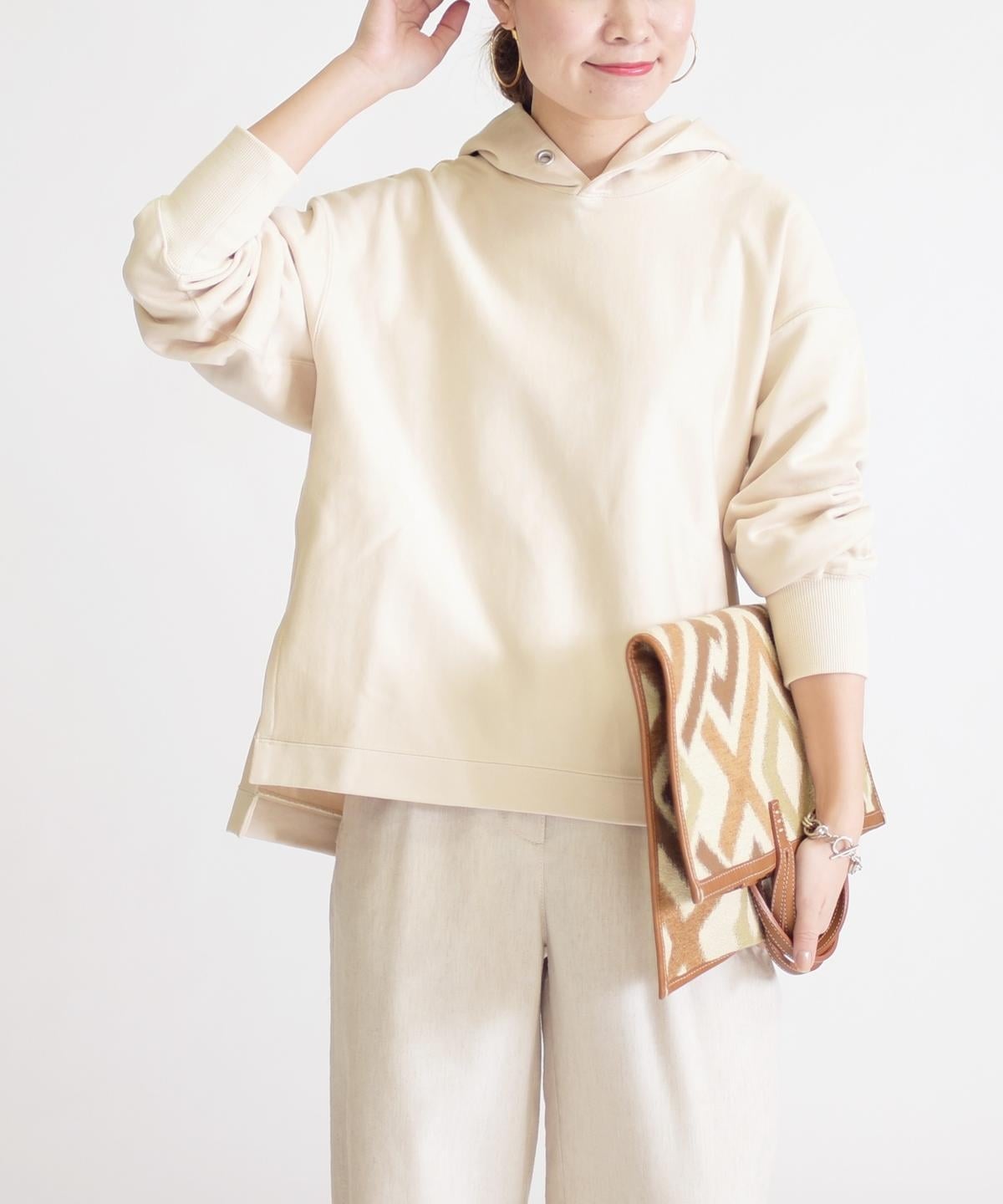 シンプルながらも脇にスリットを入れることでもたつかず、抜け感のあるシルエットにするなど細かいデティールにこだわっています。