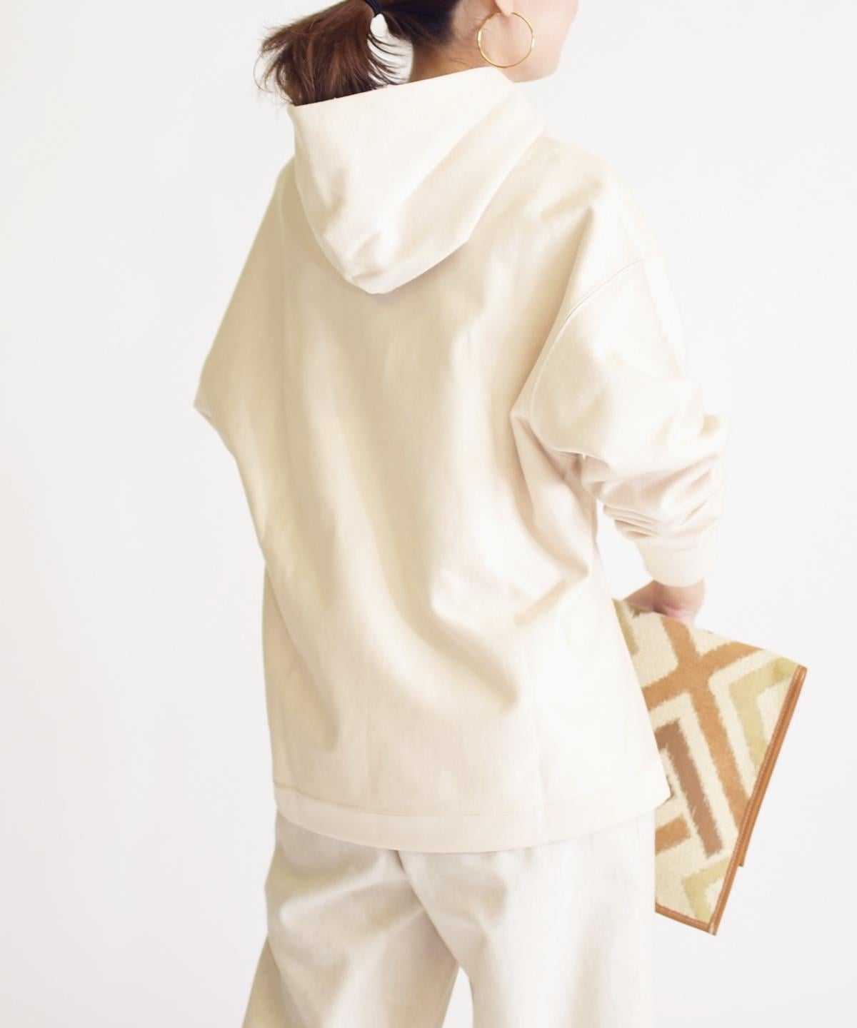 ニュアンスカラーが今の気分にぴったりな密度を詰めてきれいに編みたてたフードパーカです。
