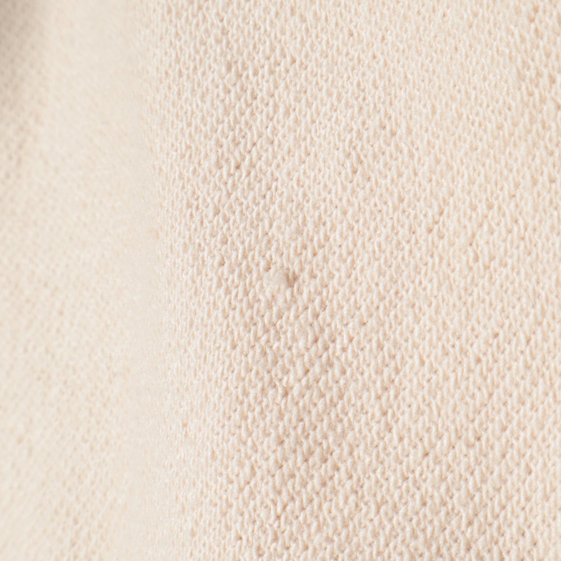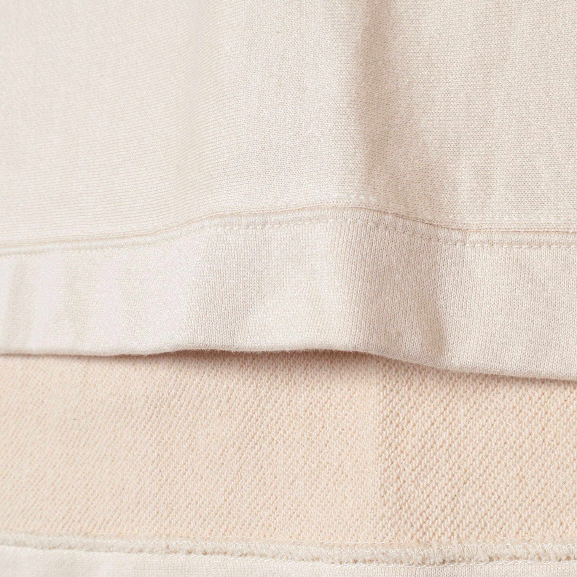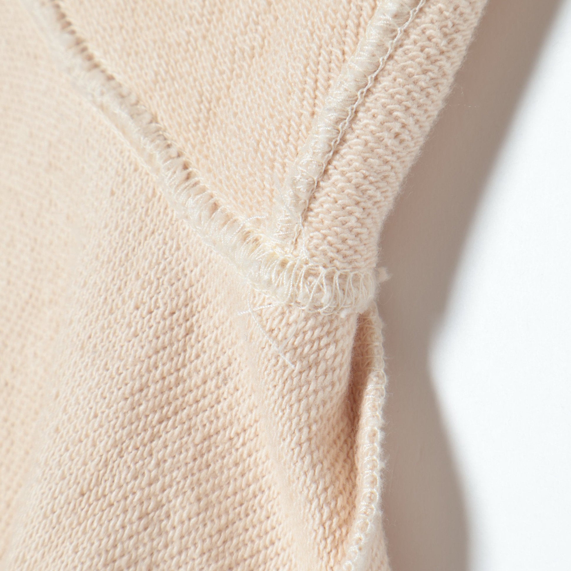 特殊加工により、程よいハリと光沢をもたせながらも裏毛本来のふくらみ感をなくさないように仕上げています。