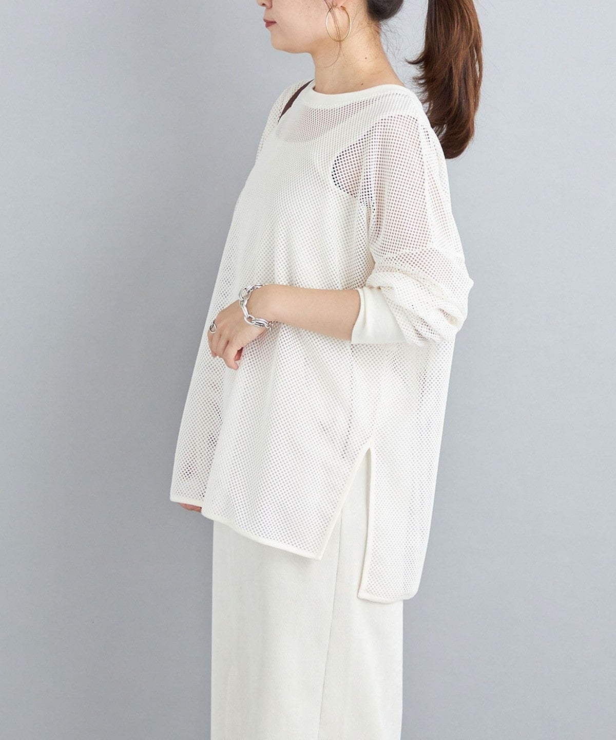 ・コーディネートの抜け感を演出してくれるメッシュプルオーバー。