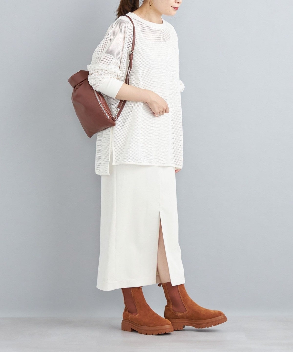 ・パンツ、スカートどちらでもボトムを選ばず合わせられるアイテムです。