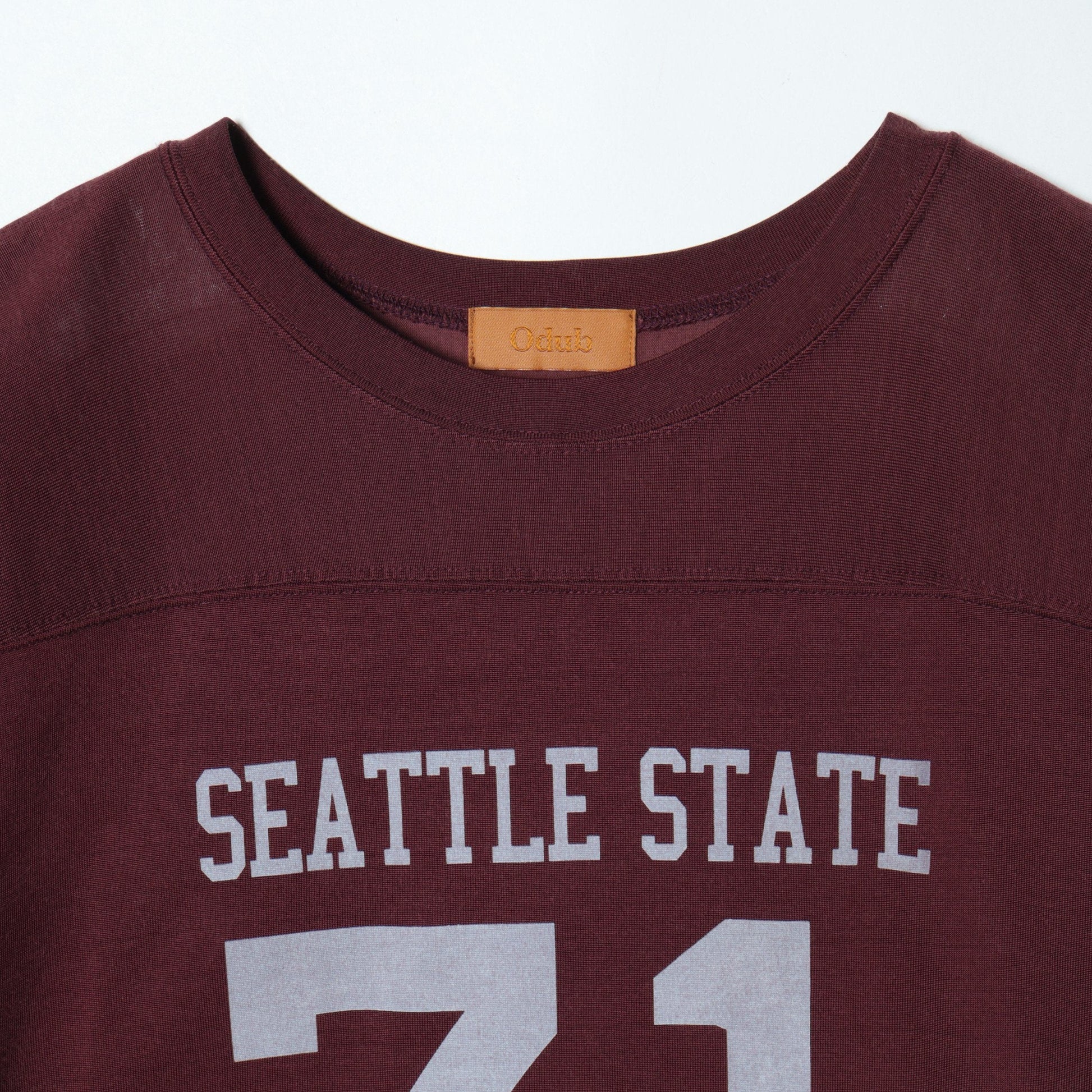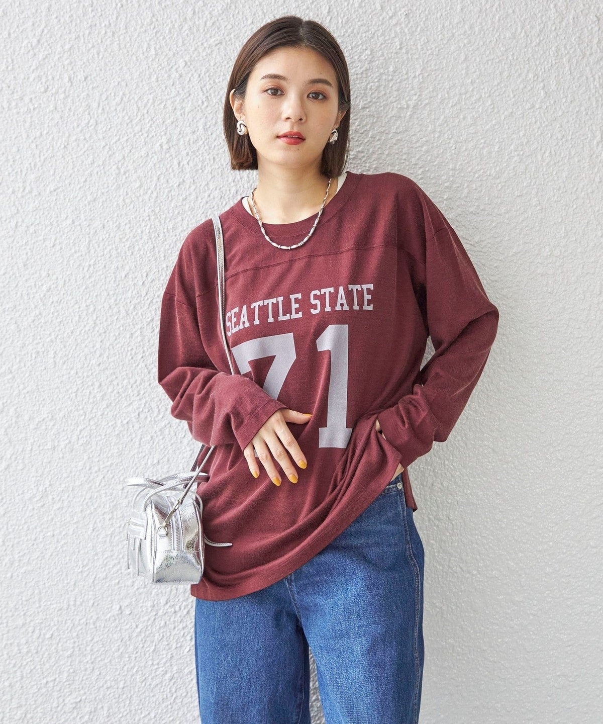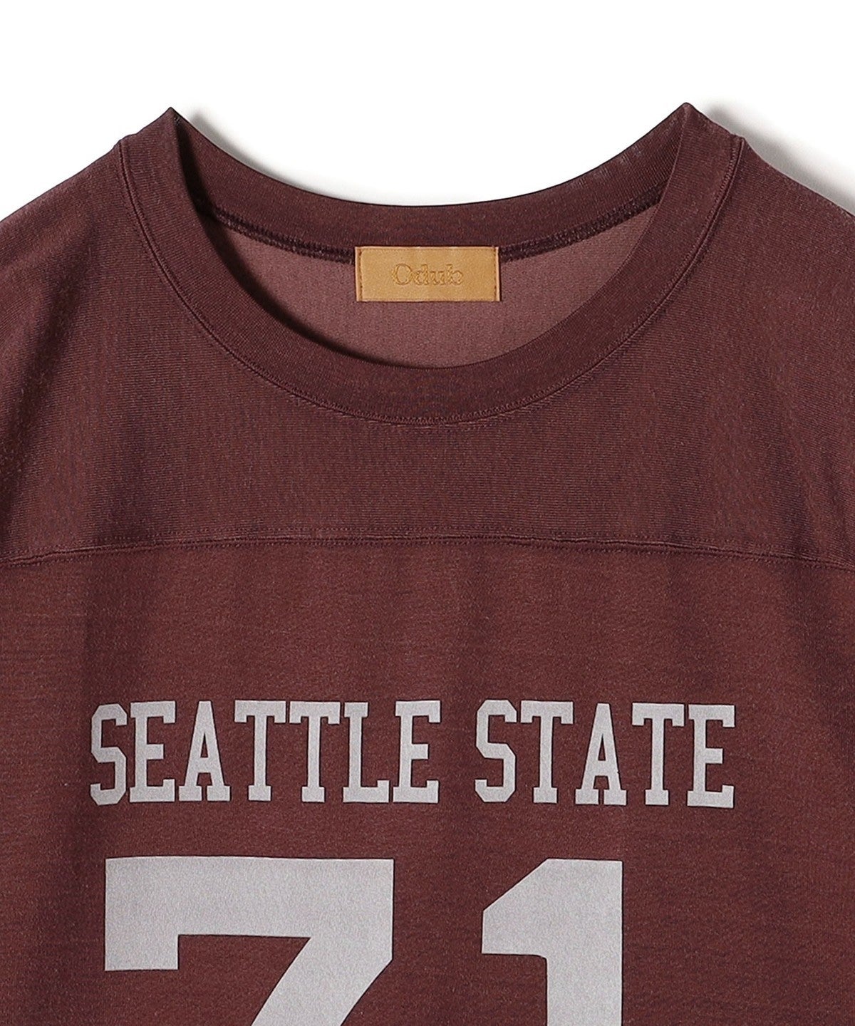 60年代のヴィンテージフットボールTシャツをモチーフにレーヨンとコットンのオリジナルで作成したダブルフェイス生地。