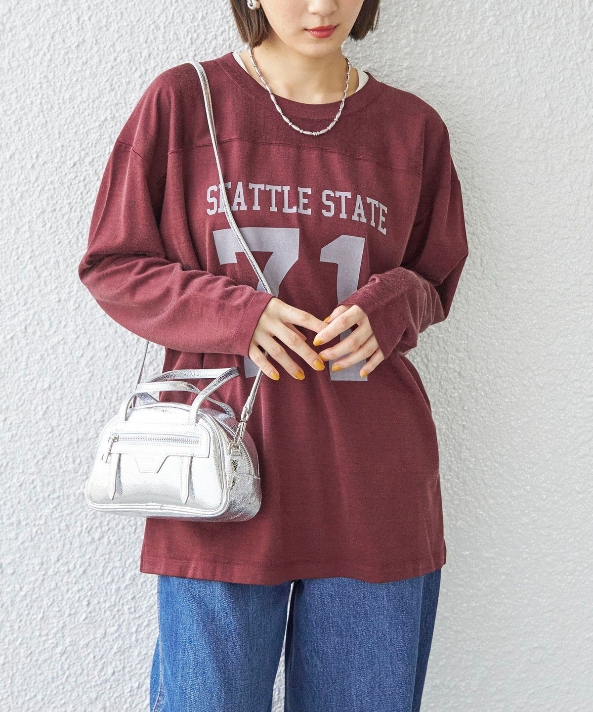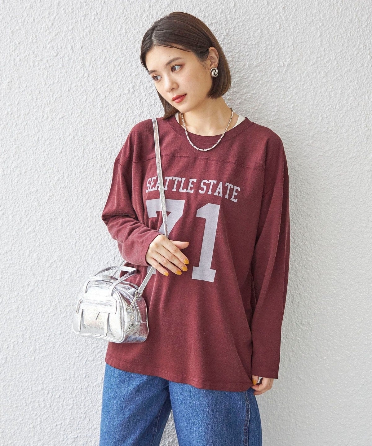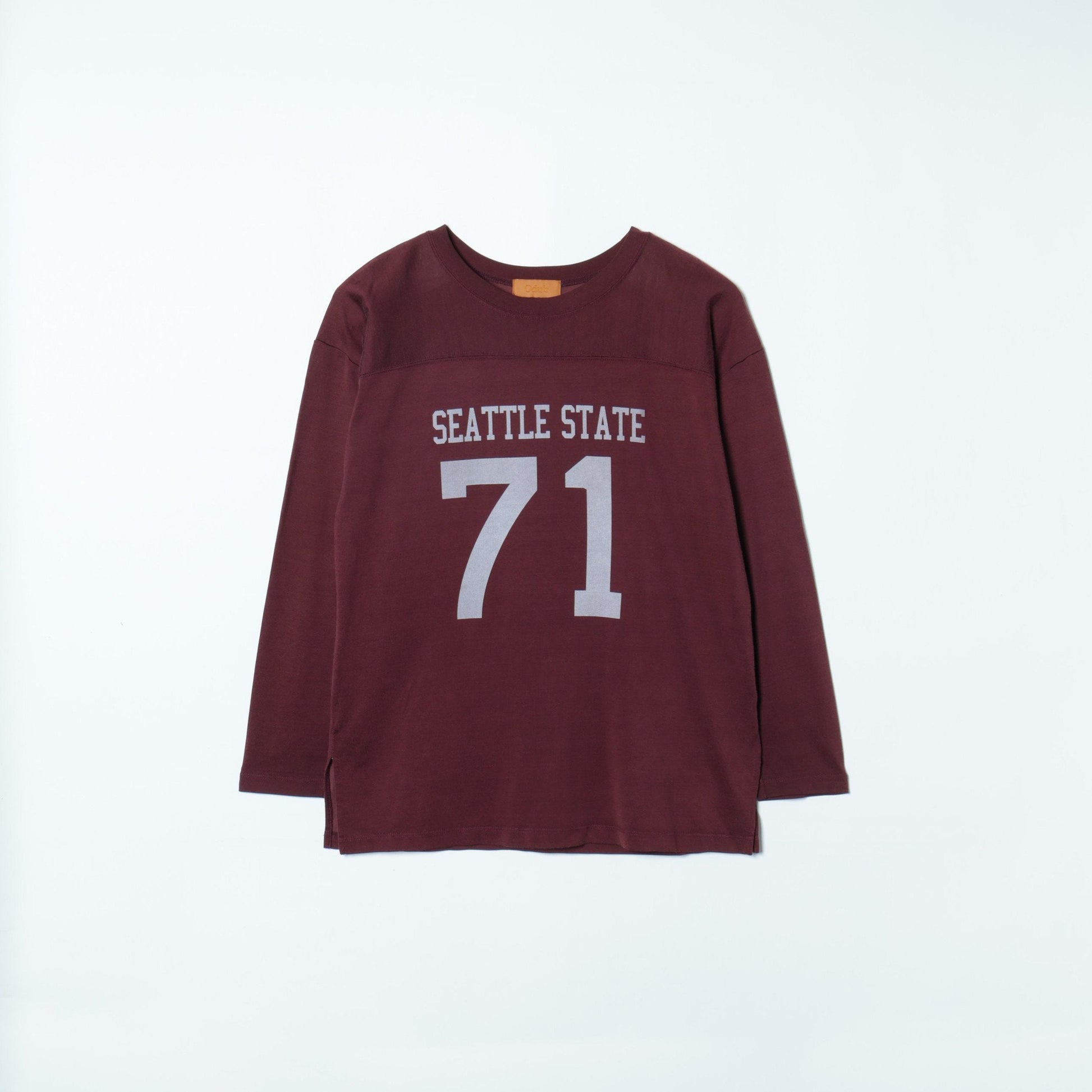 60年代のヴィンテージフットボールTシャツをモチーフにレーヨンとコットンのオリジナルで作成したダブルフェイス生地。