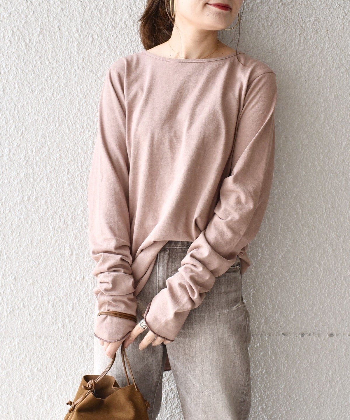 袖をルーズに伸ばして着たり、アジャストしレイヤード用のインナーとして着ていただけるシーズンレスな一着。