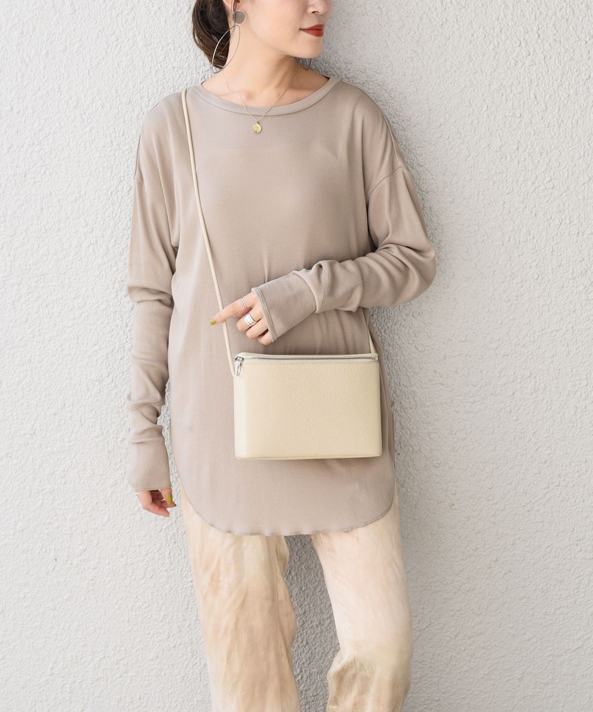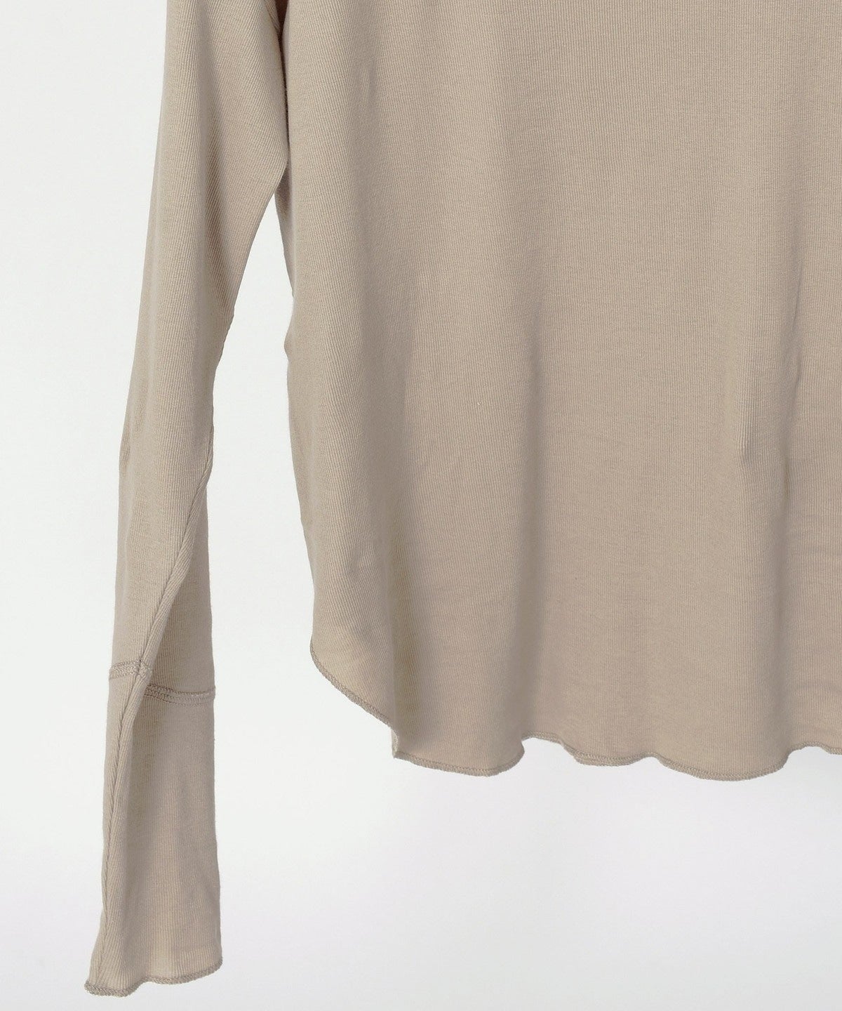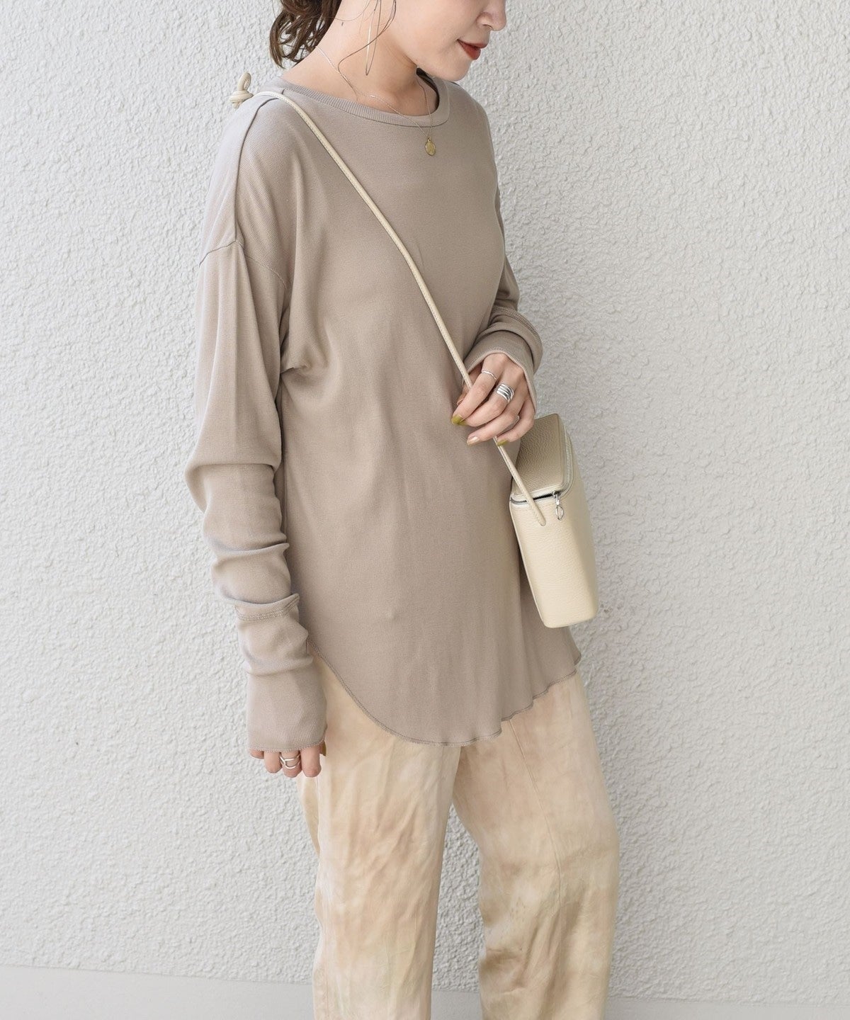袖口のリブを長くすることで遊びの要素をプラスしました。落ち感のある素材が今の気分とマッチ。アースカラーを取り入れた肌なじみの良い3色展開です。