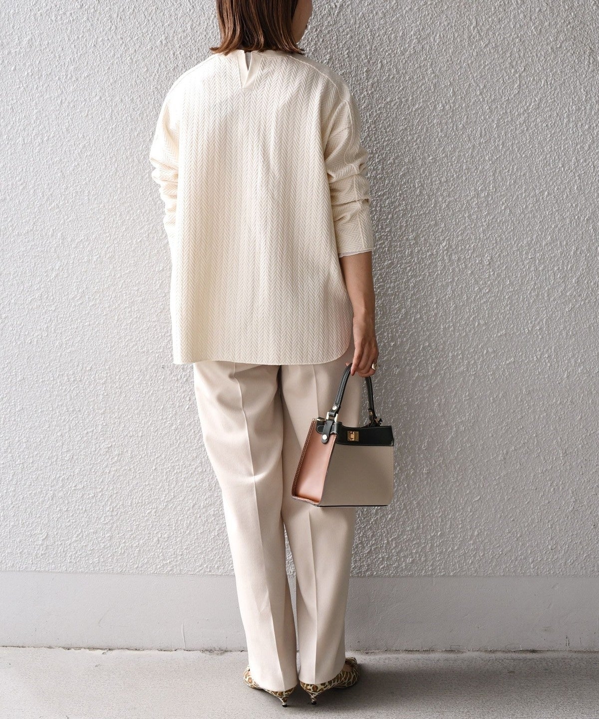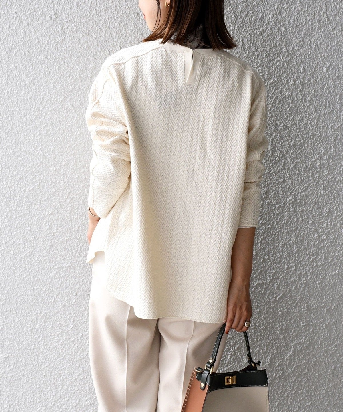 へリンボーンの編み柄が表現されたプルオーバーです。