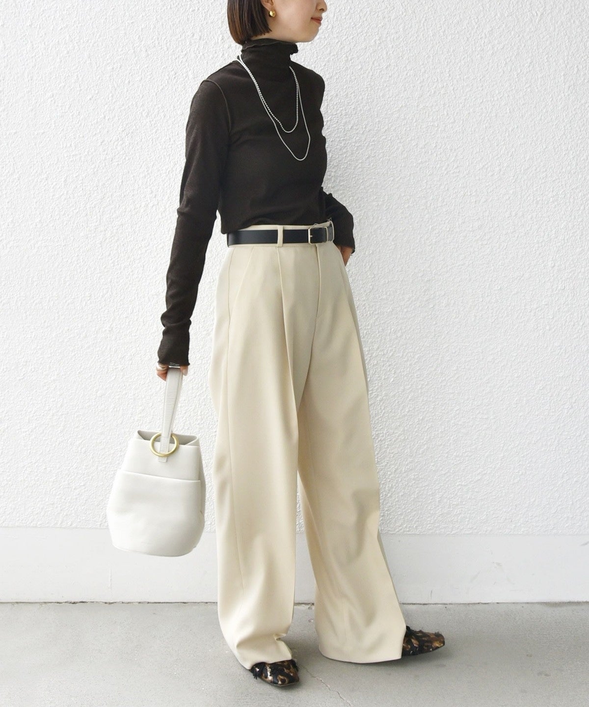 オフホワイトとブラックは同色のメローがシンプルで着回しやすさ◎