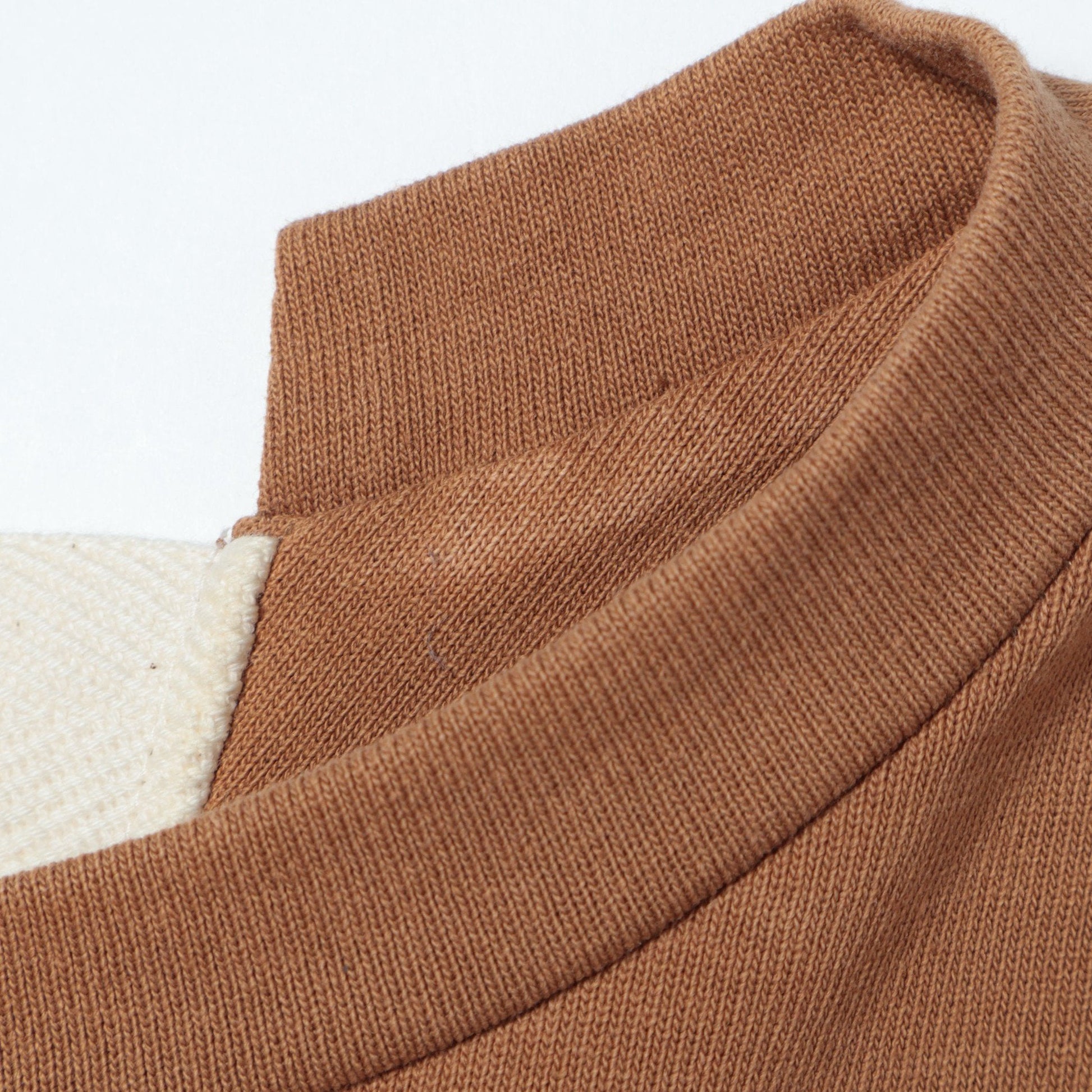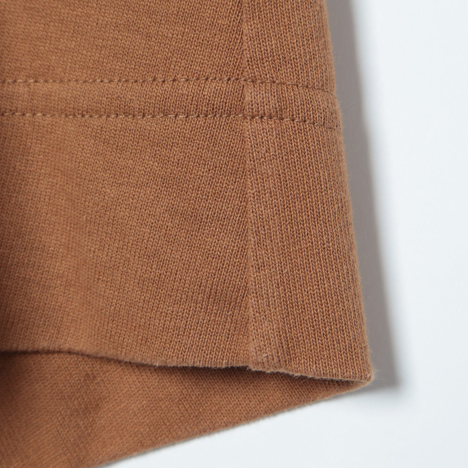 バックのテープがポイントになったカットソー。前はシンプルなので、ボトムも選ばずに合わせられます。