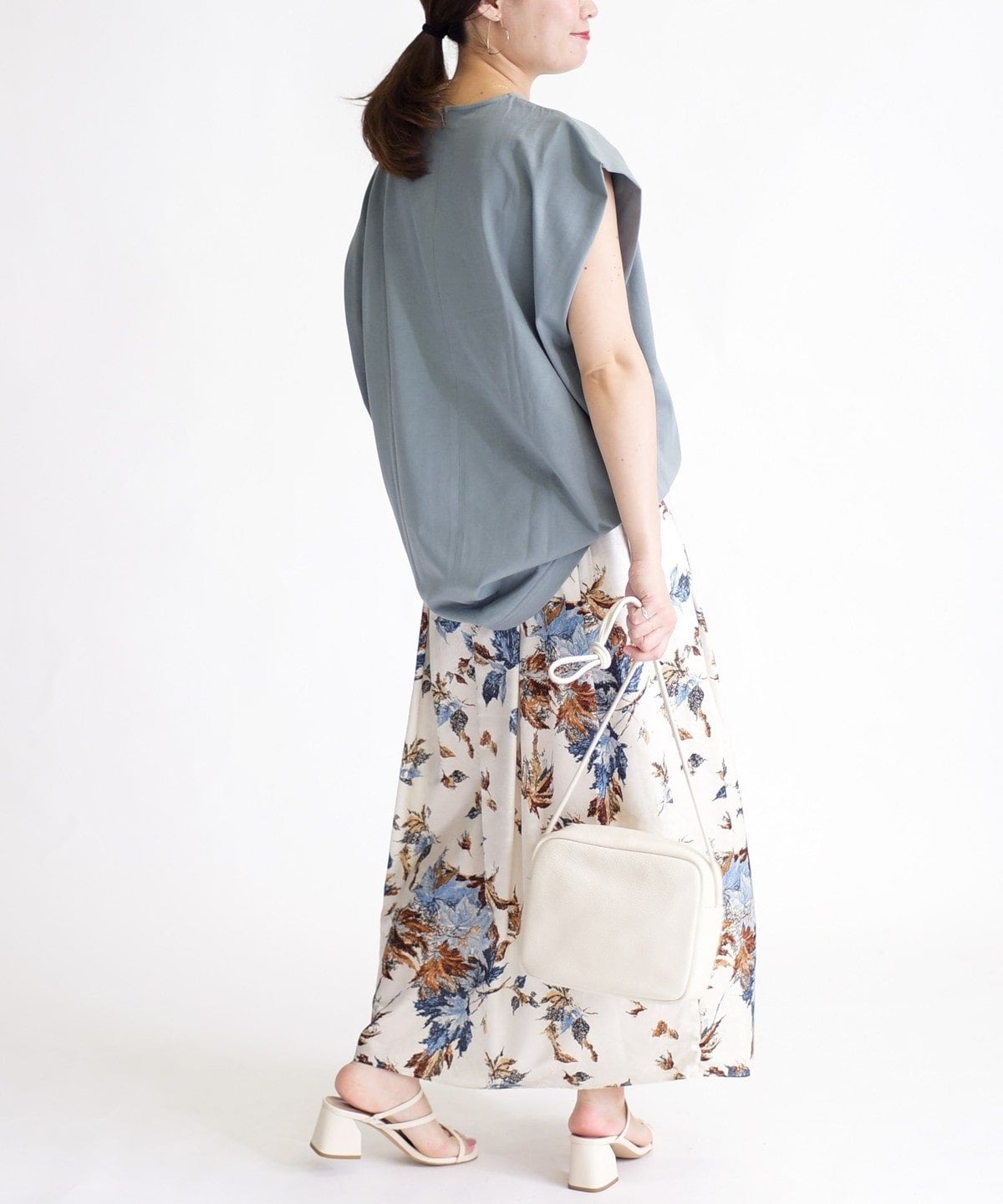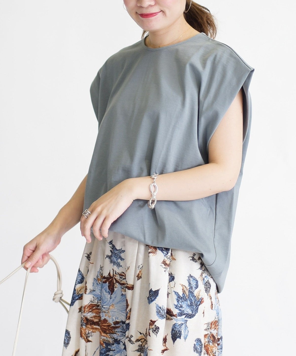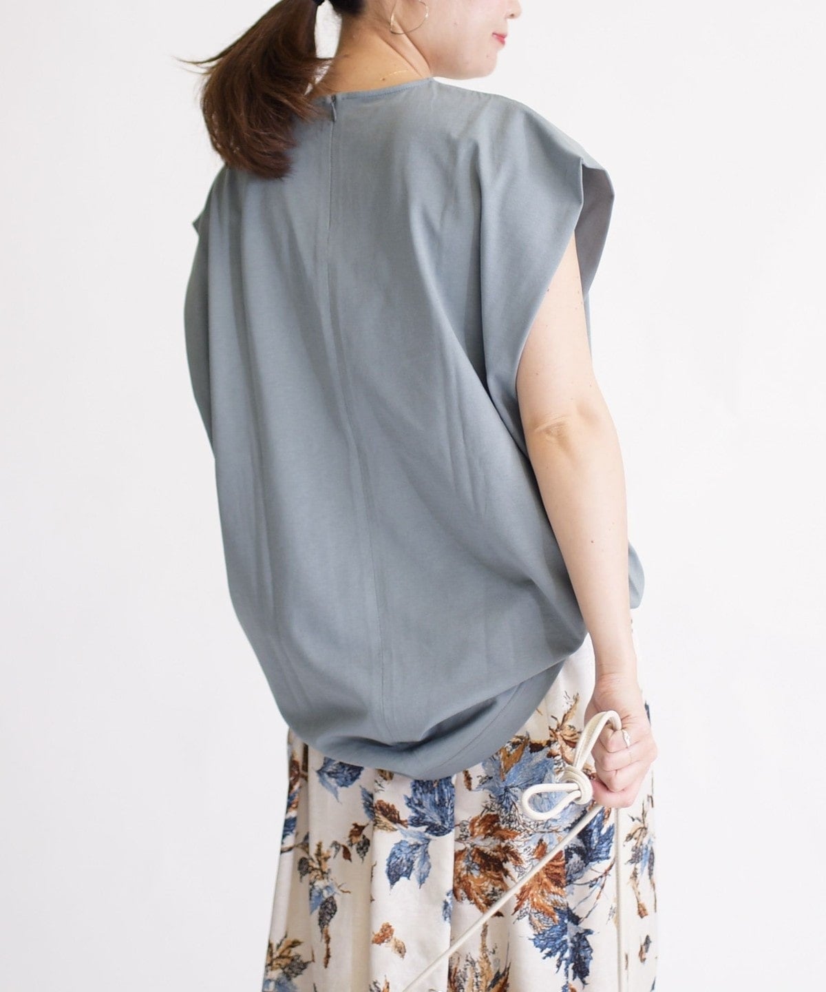 フレンチスリーブですが後ろ身に大き目のタックを入れて背中に丸みが出るようにしています。