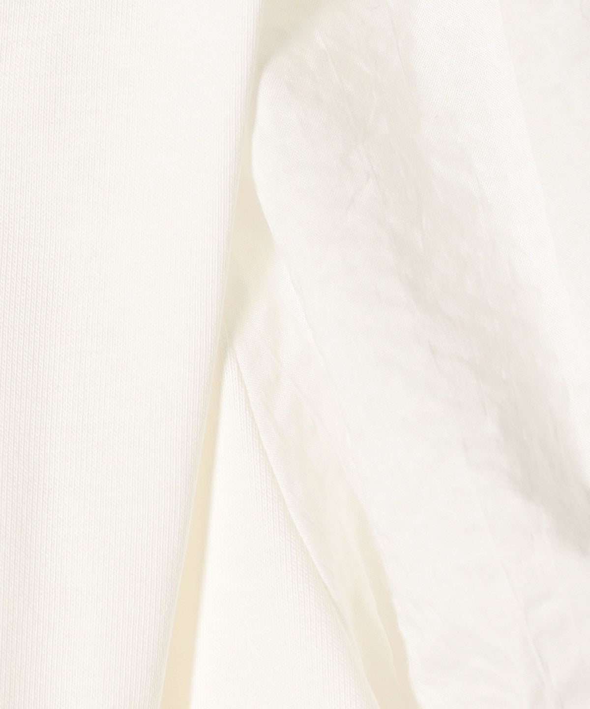 オンオフで着回せるブラウス見えの布帛コンビTシャツ。