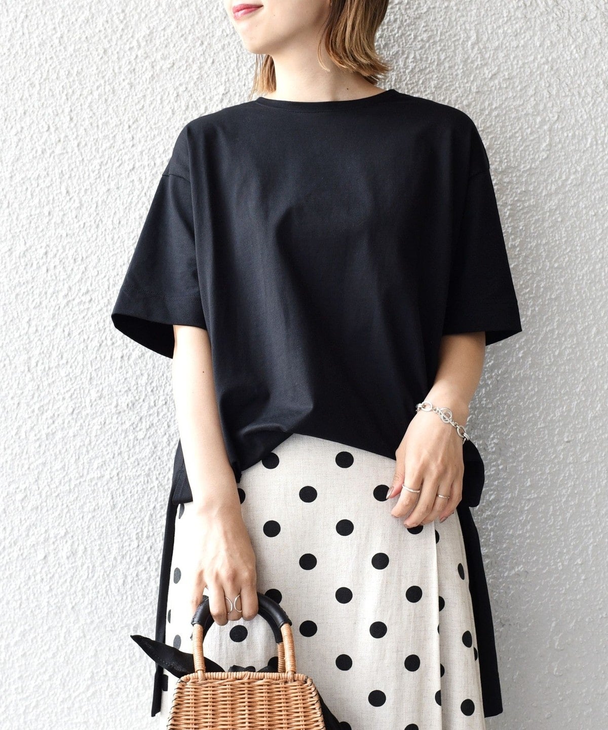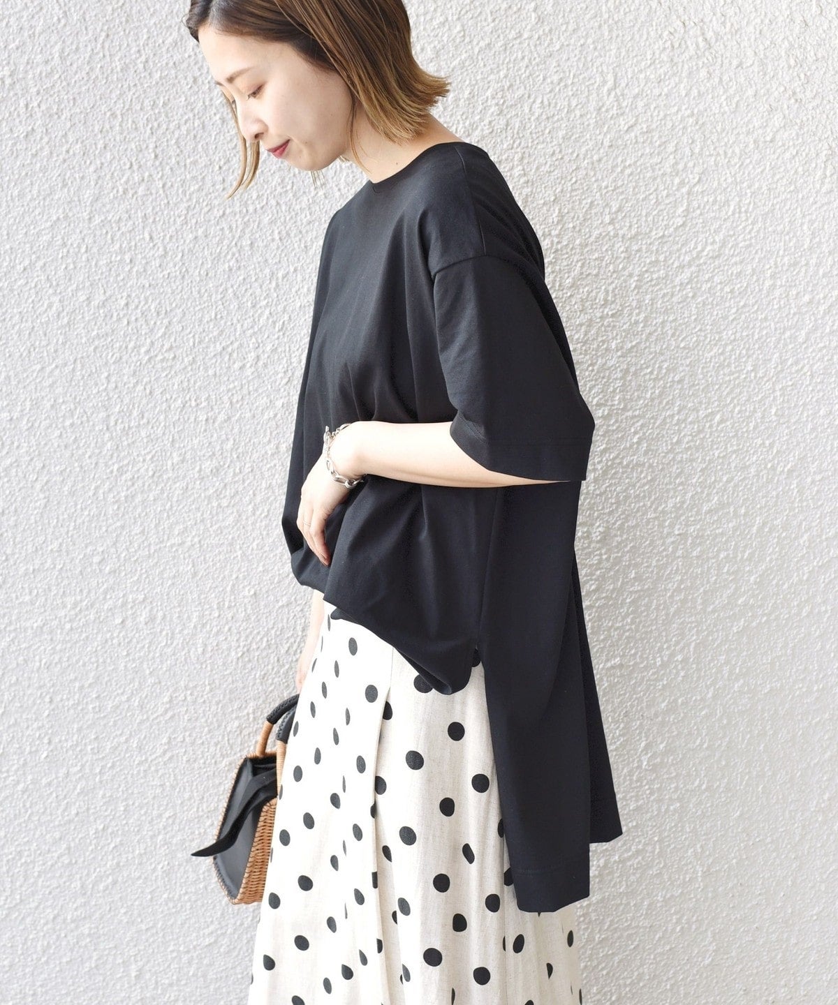 前から見るとシンプルなので着回し易いセミベーシックカットソーになります。