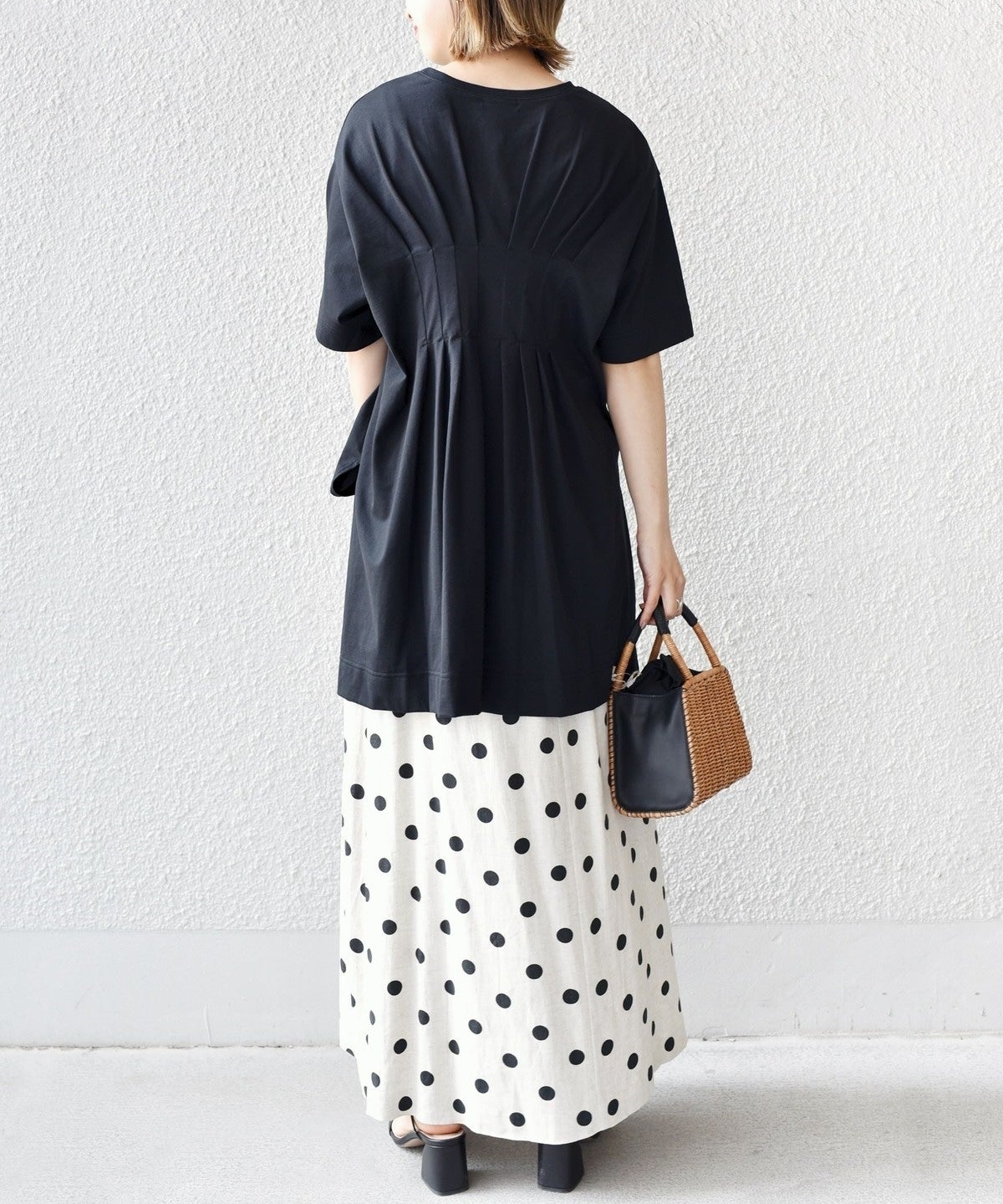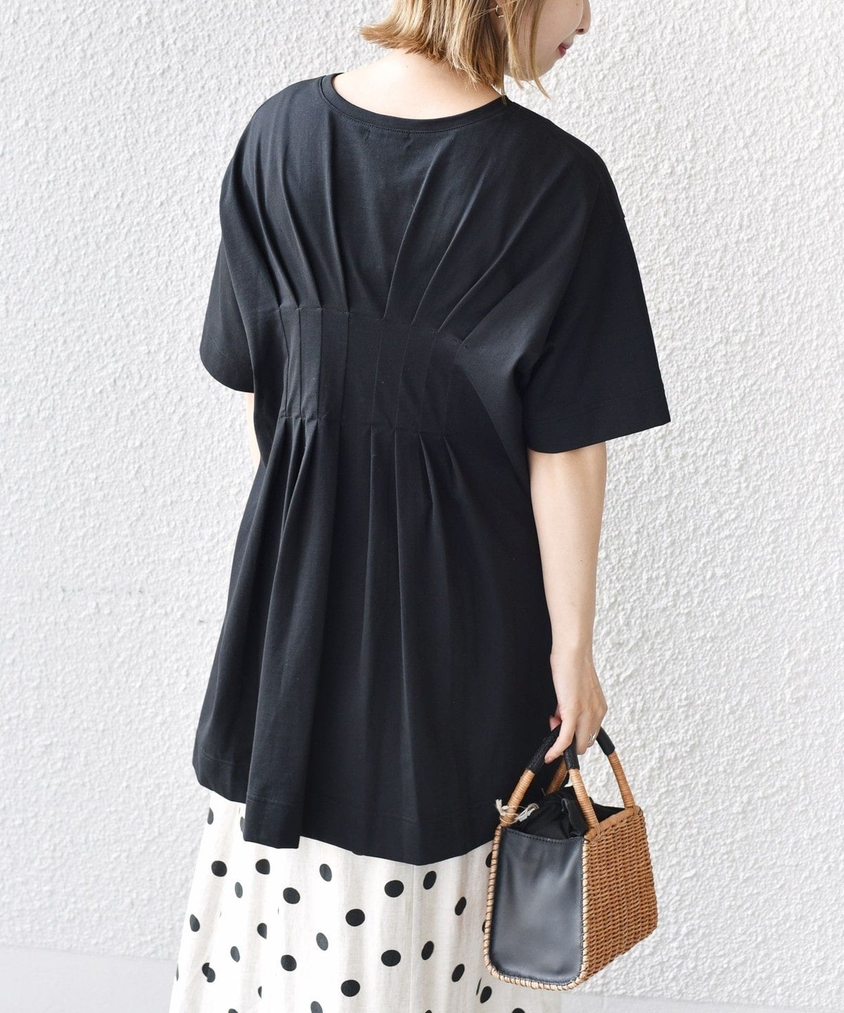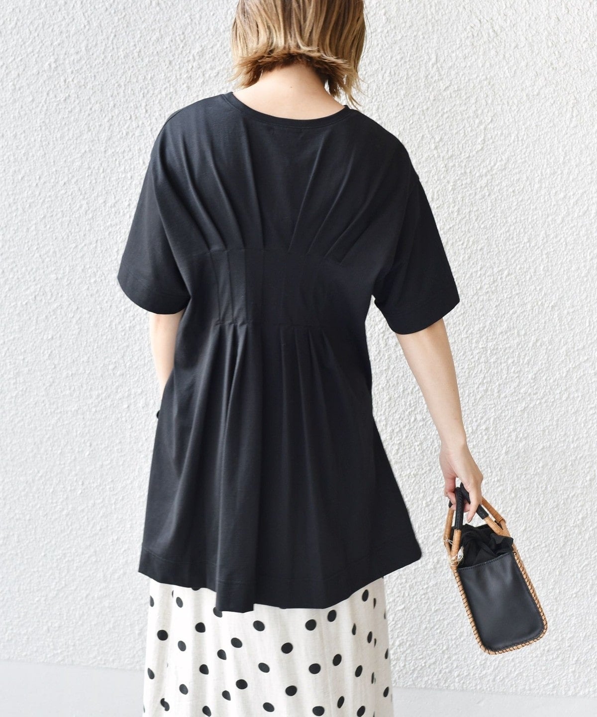 コメント:バックスタイルが目を引くアイテムです。シンプルながらも1枚で決まります。