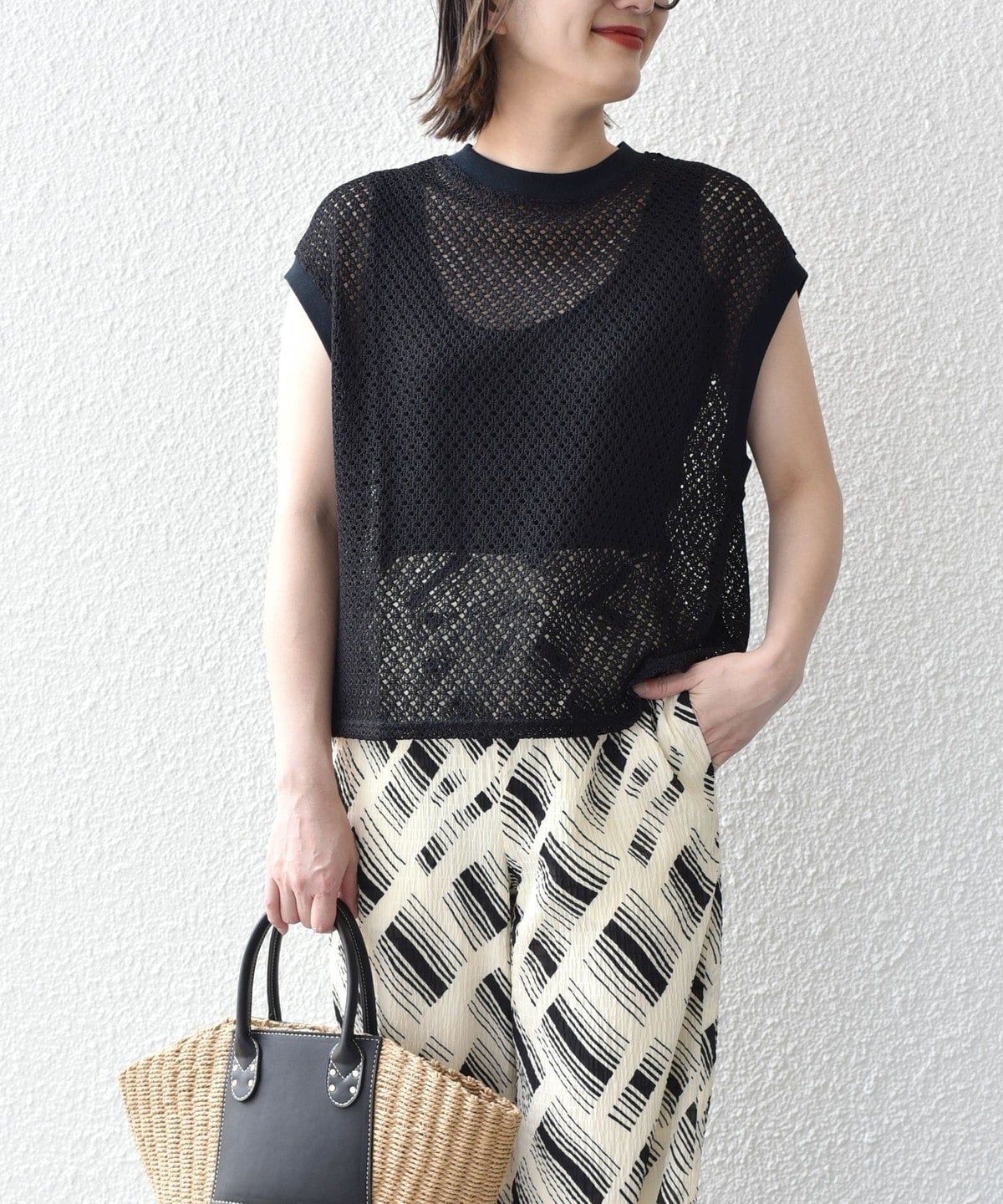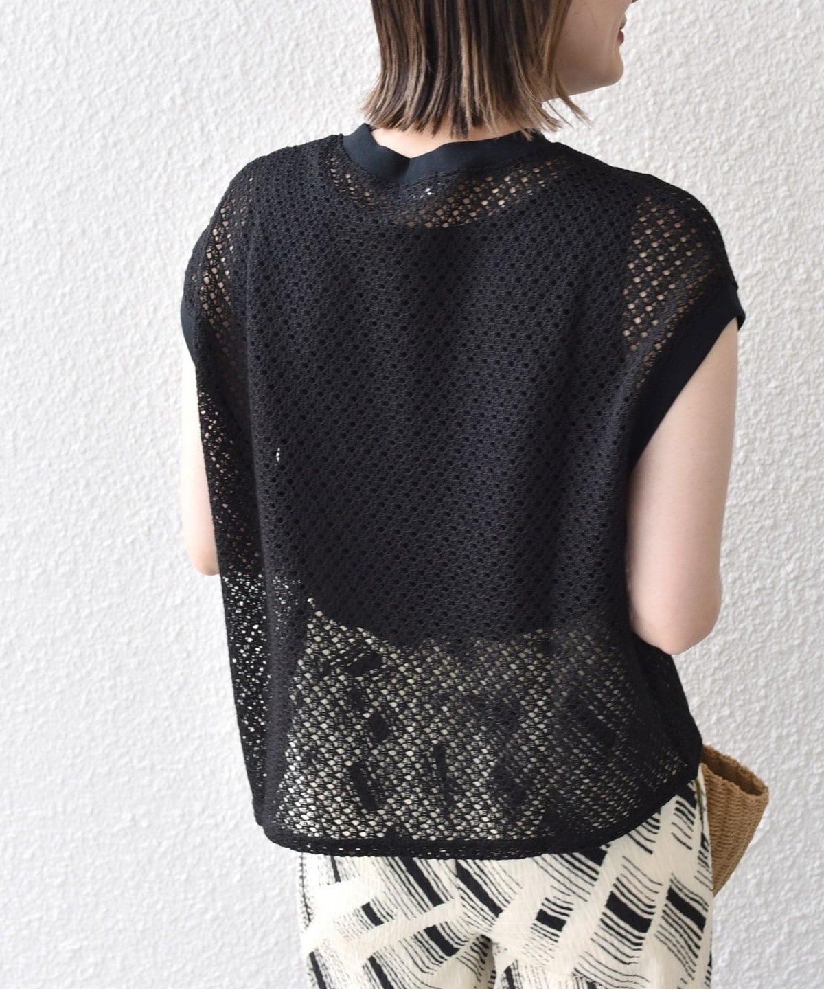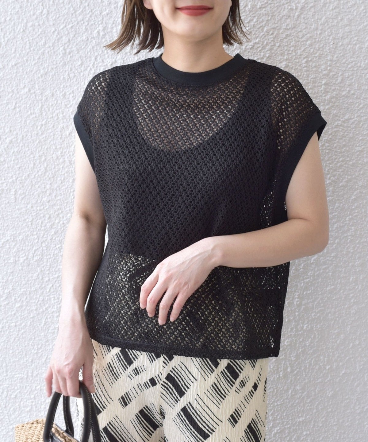 清涼感のある繊細な幾何柄に仕上げ、着心地の良いレース素材です。