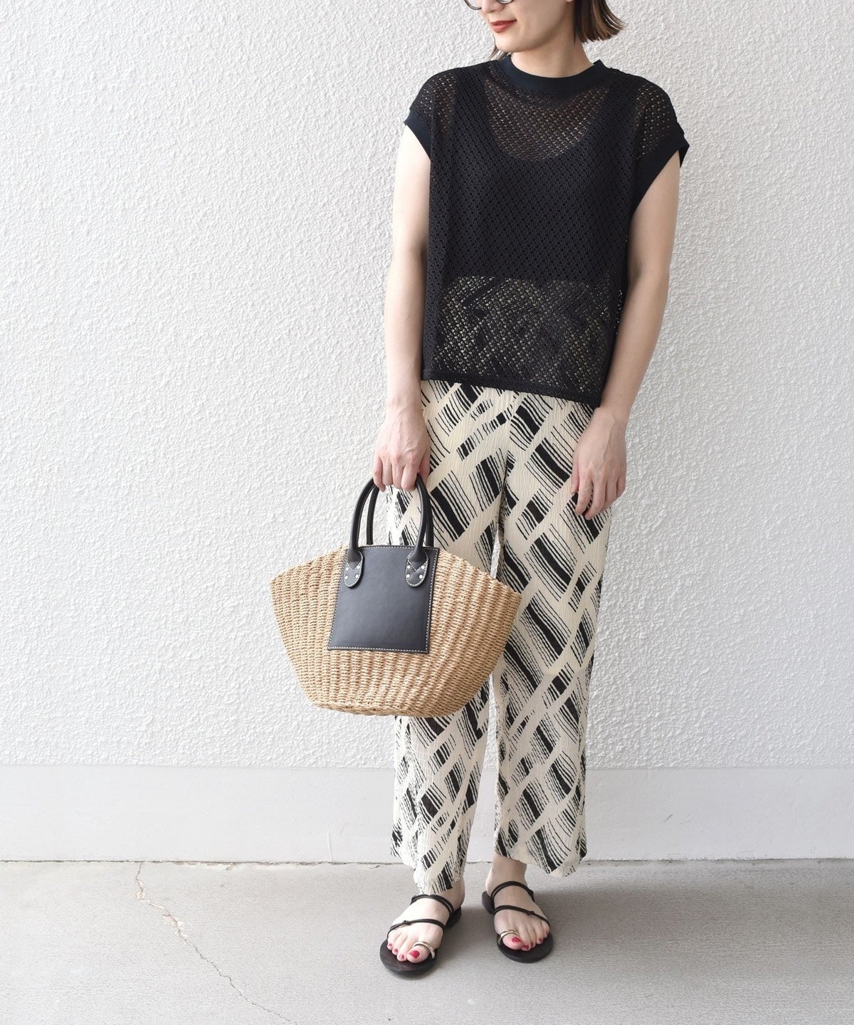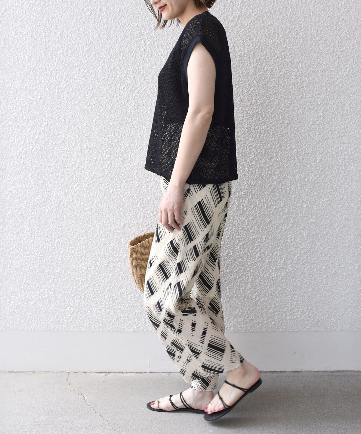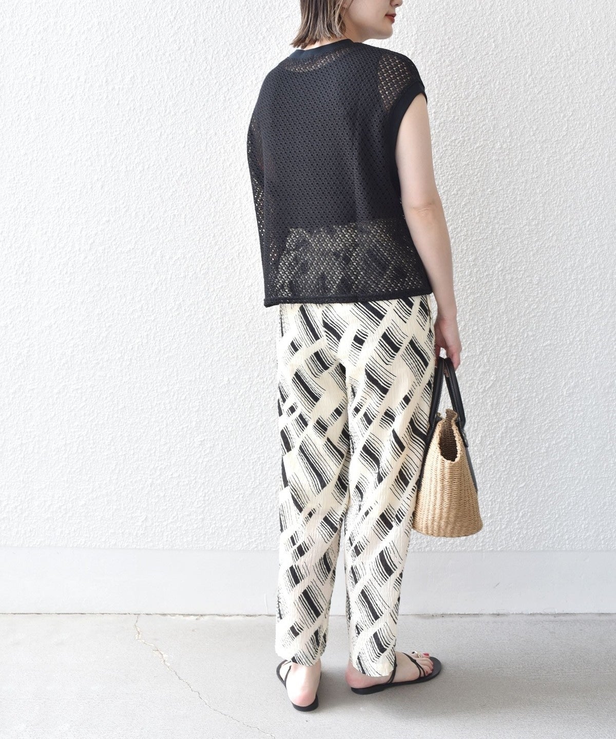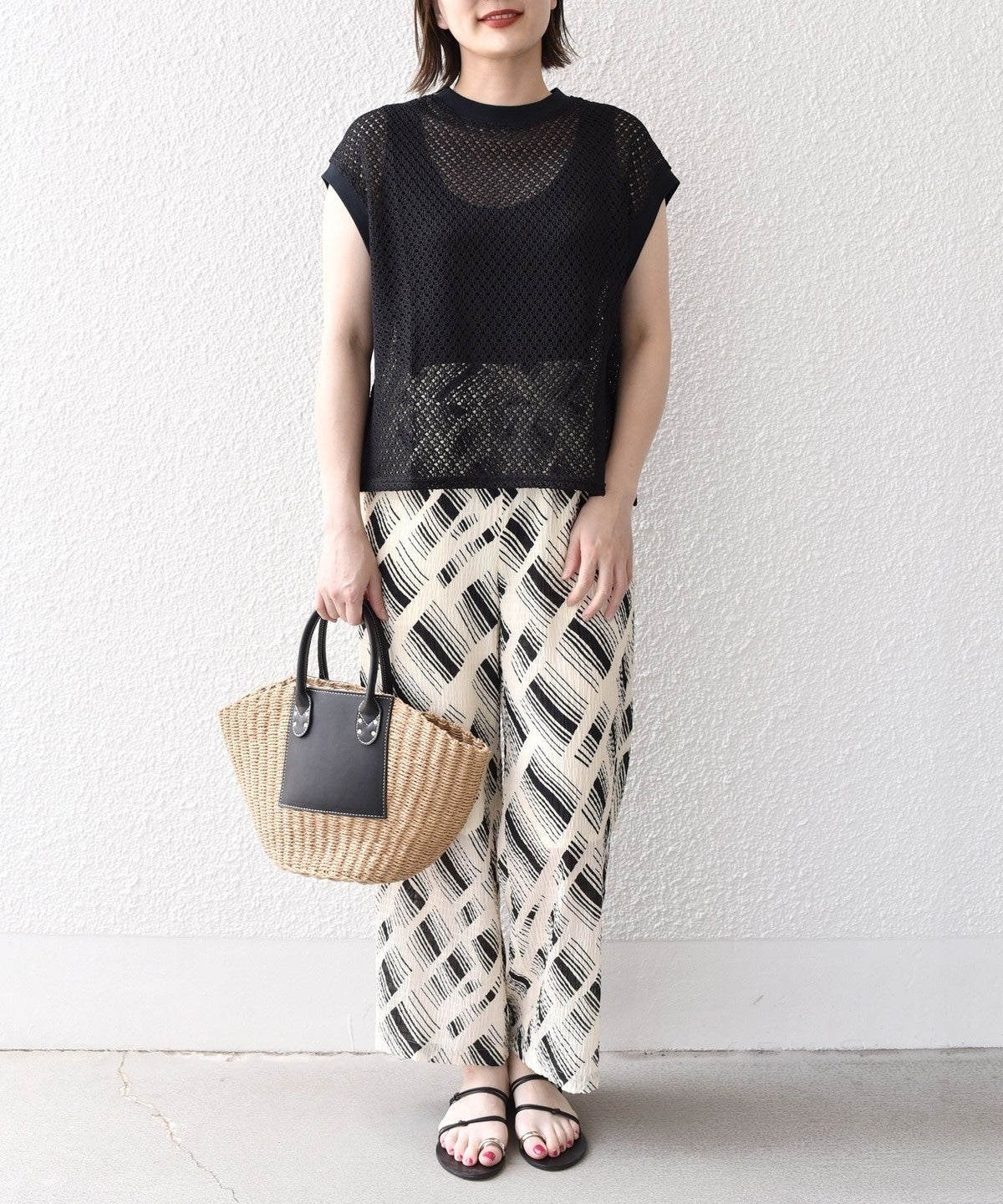 清涼感のある繊細な幾何柄に仕上げ、着心地の良いレース素材です。