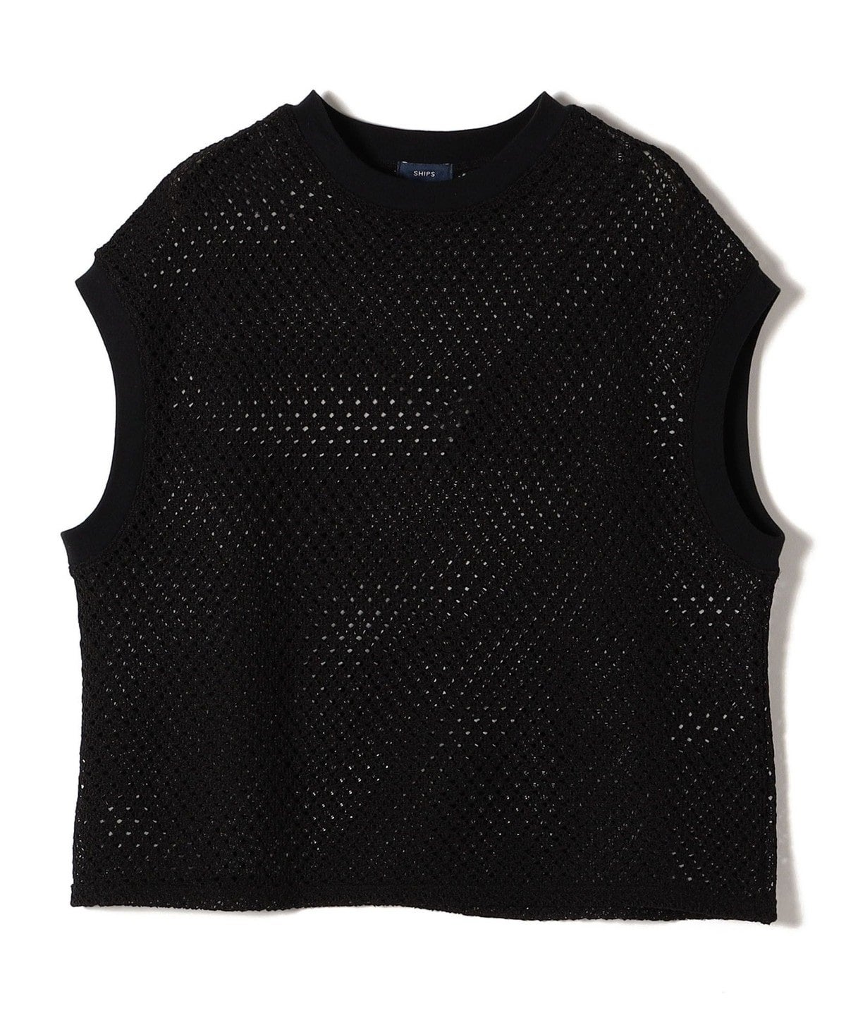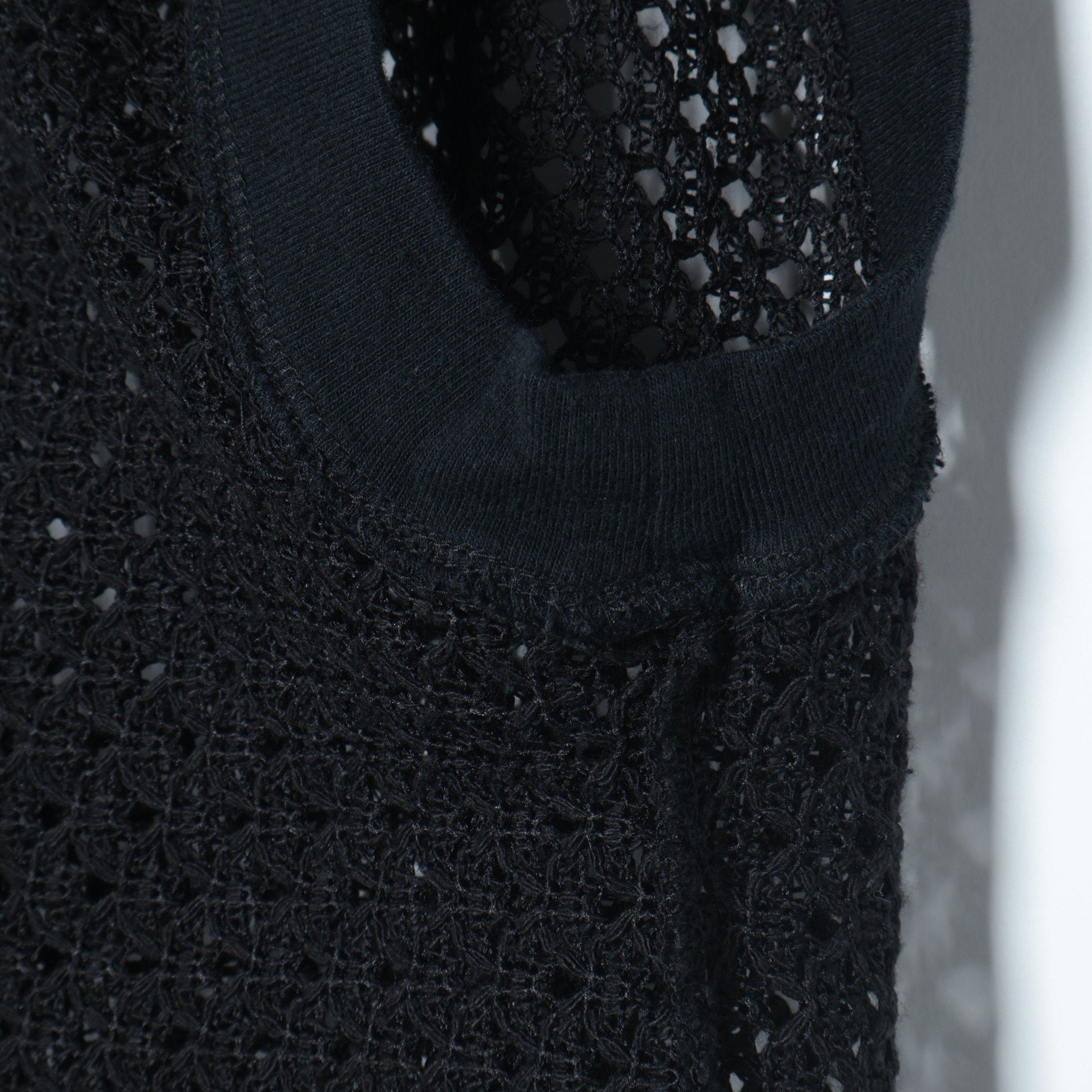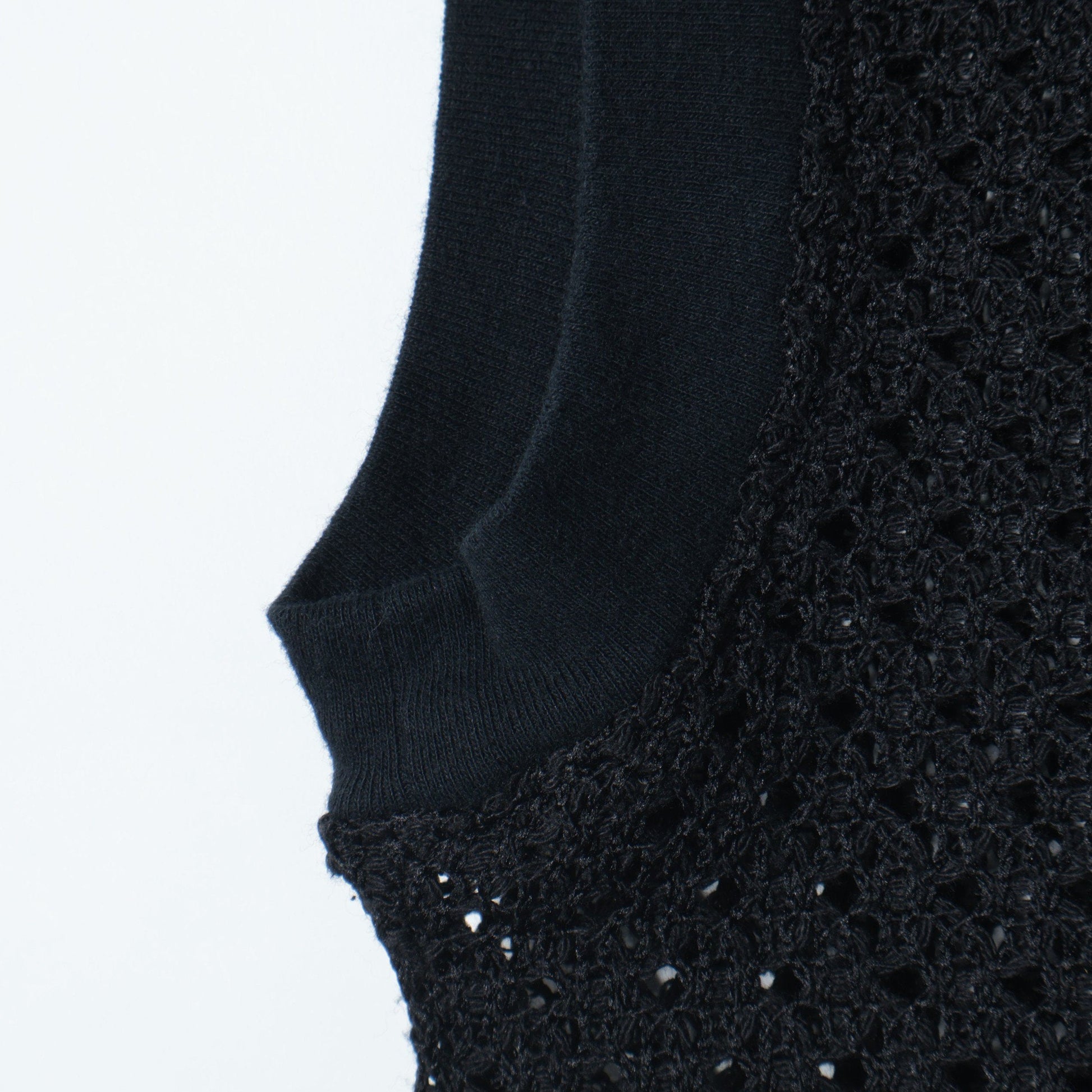 オリジナルの幾何柄で編んだラッセルレースのプルオーバー。
