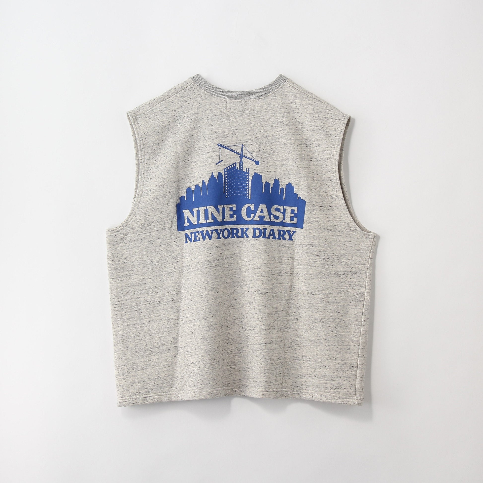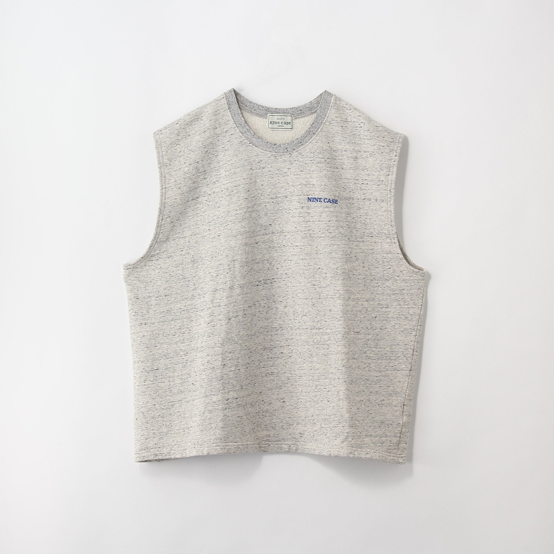 NINE CASEのロゴを企業ロゴに仕立てて、薄手のノースリーブスウェットに載せた一枚。
