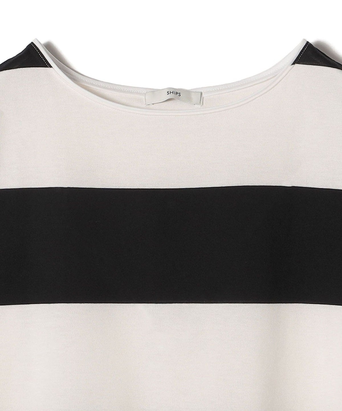 程よく丸みのあるキャップスリーブシルエットで、カジュアルすぎない上品なワイドボーダーのカットソーです。