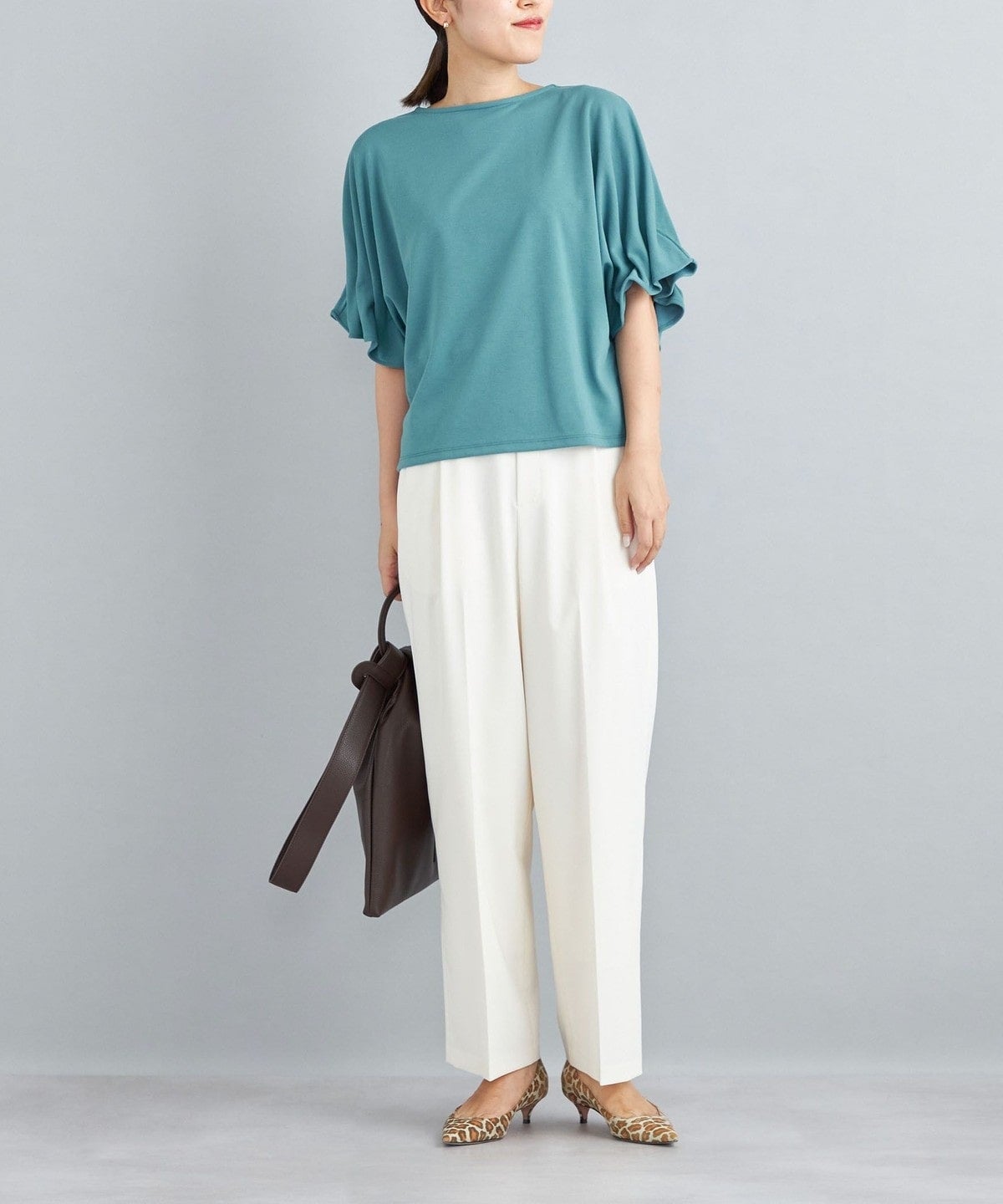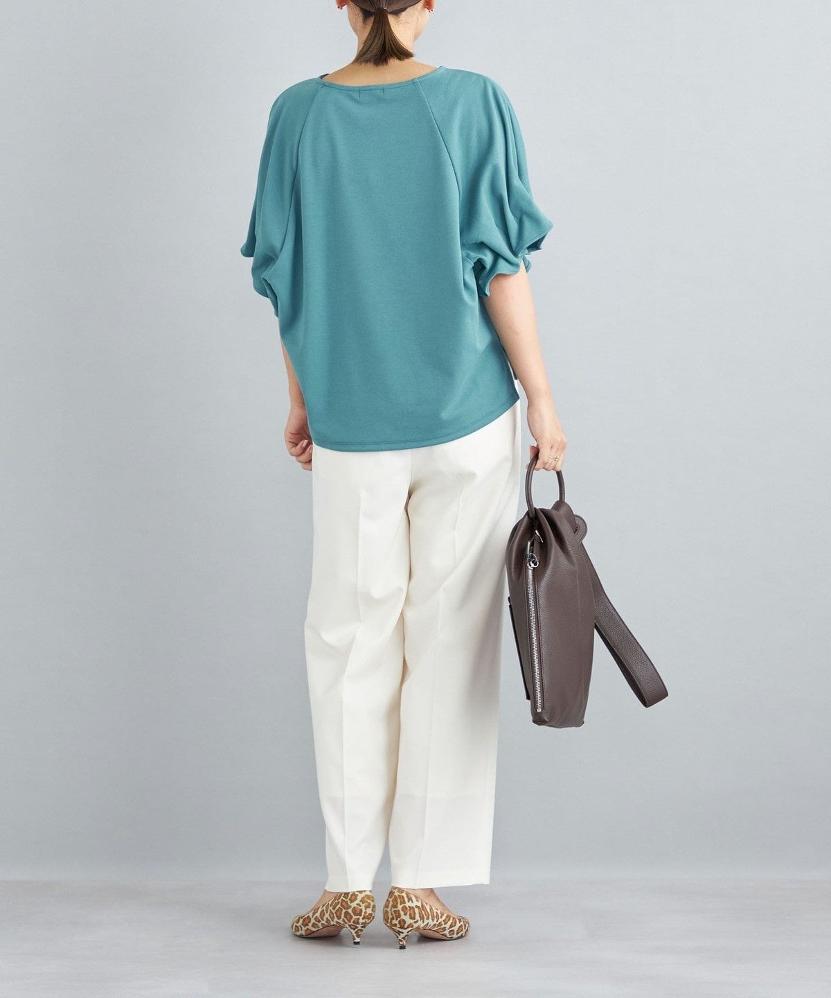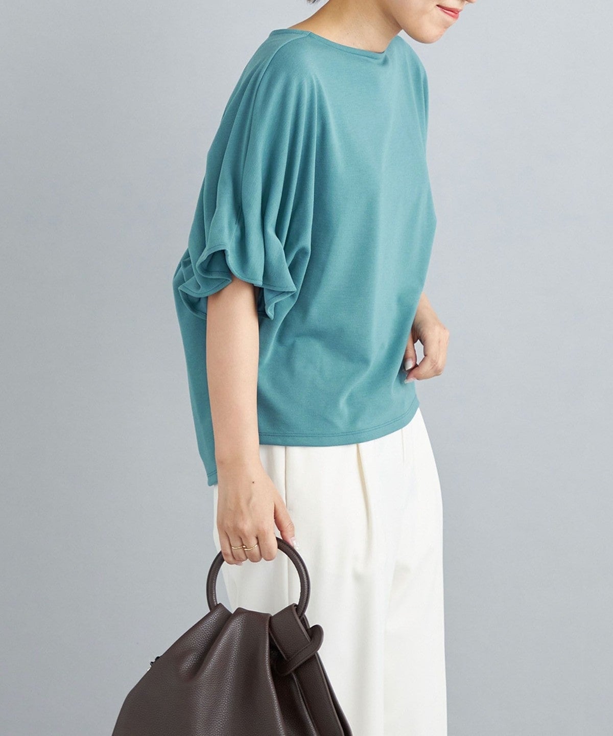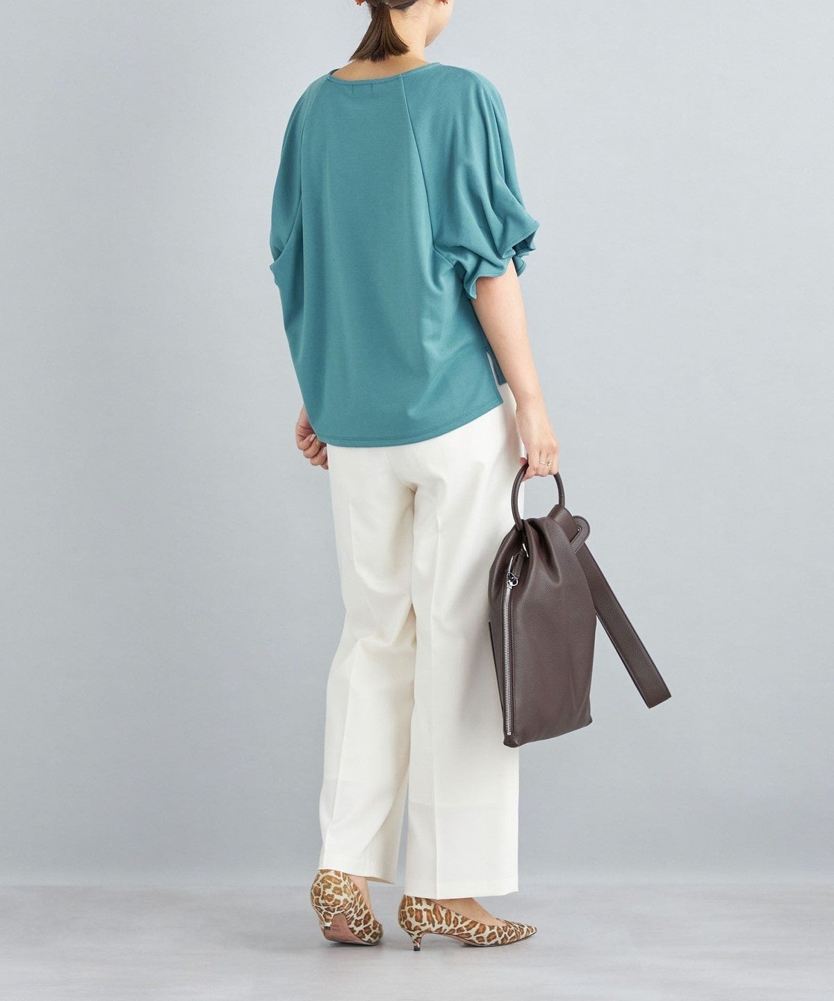 ・袖口にゴムを使用しタックを固定することにより、華奢さと着用時に安定した綺麗なドレープを表現しています。