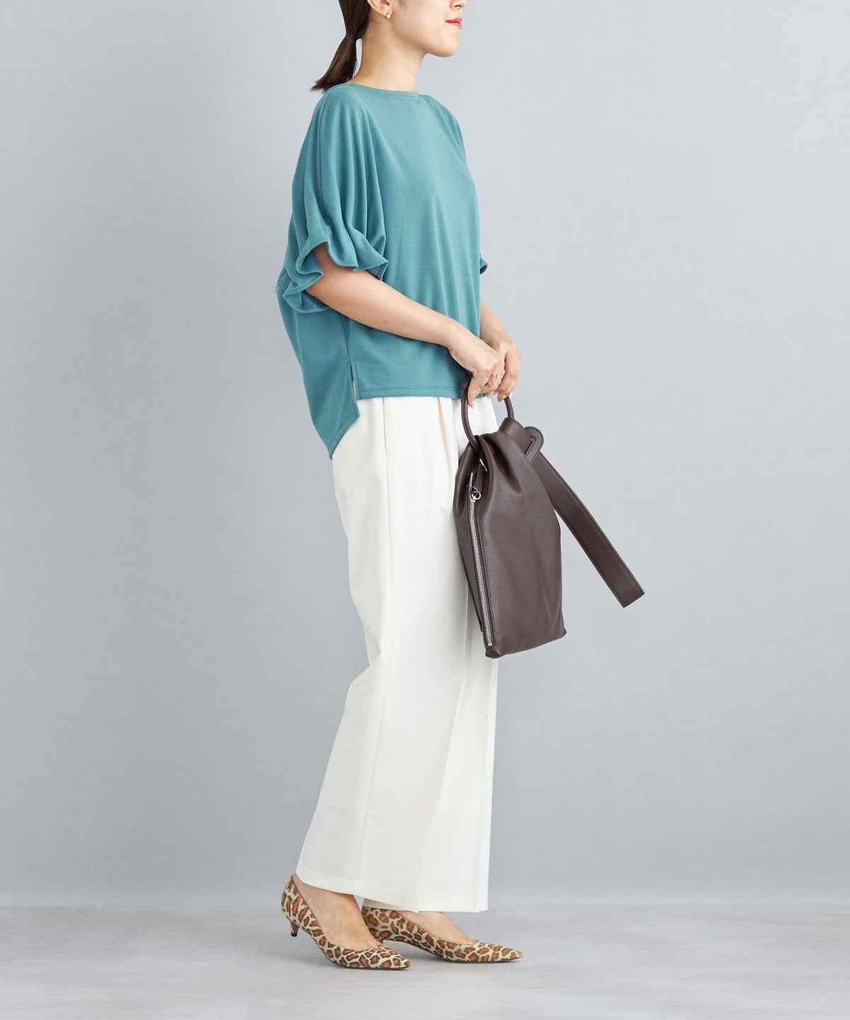 ・ゆったりとしたボックスシルエットでボディラインをカバー。