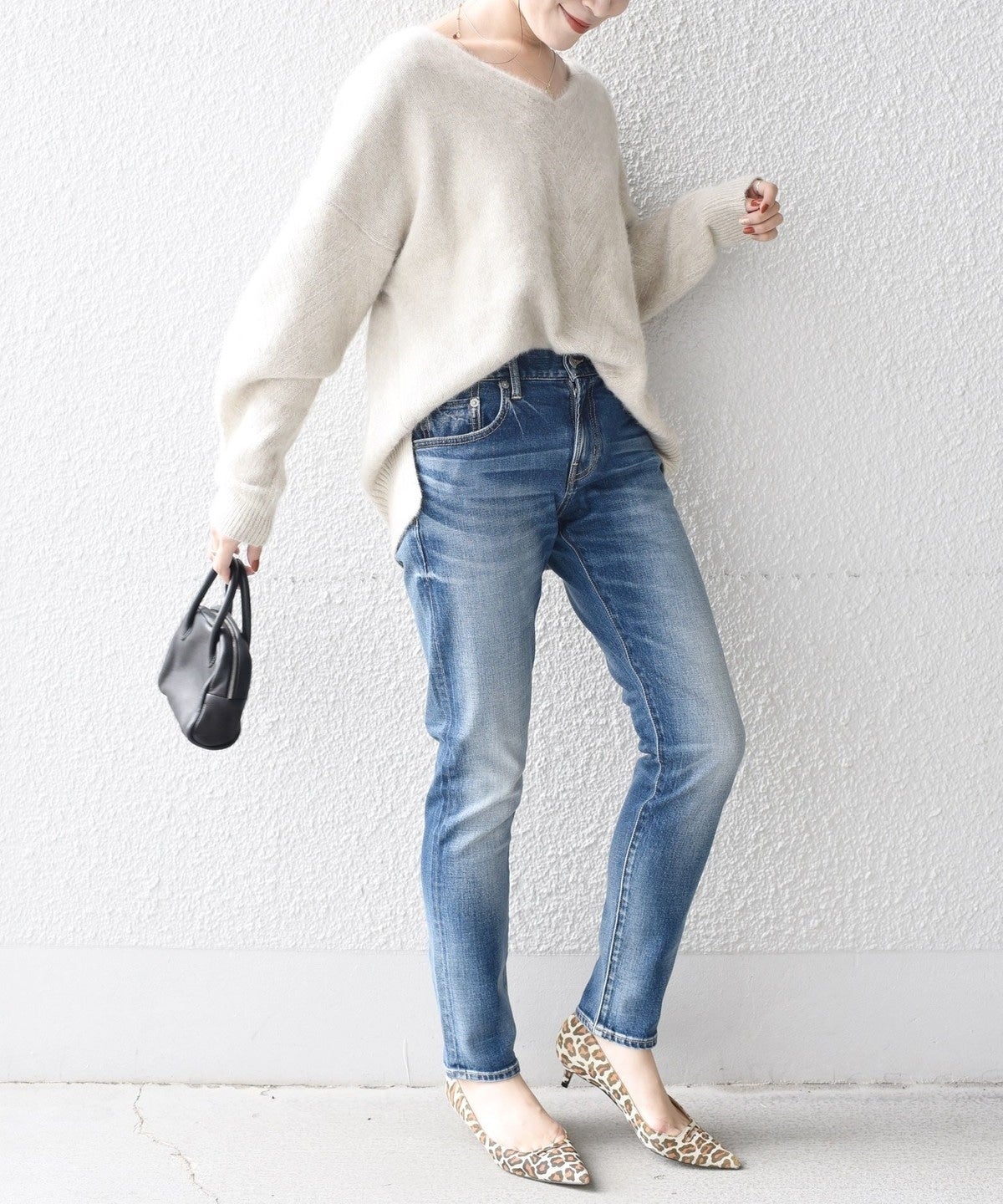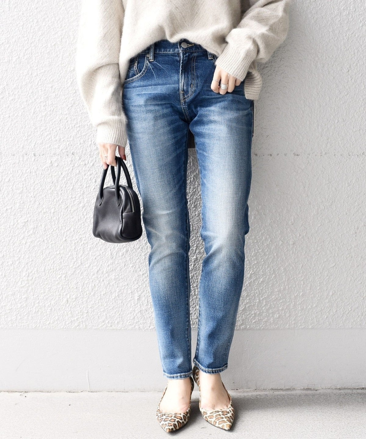 スキニーとは違った、少しゆるっとしたシルエットのデニム。