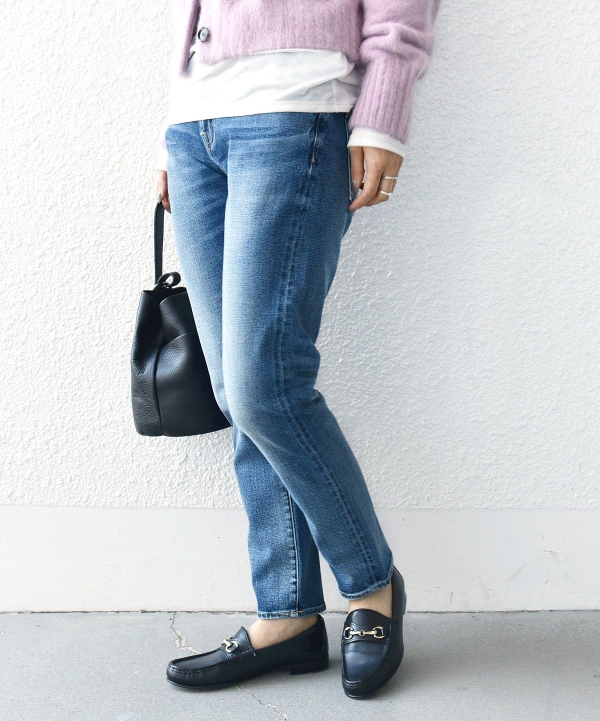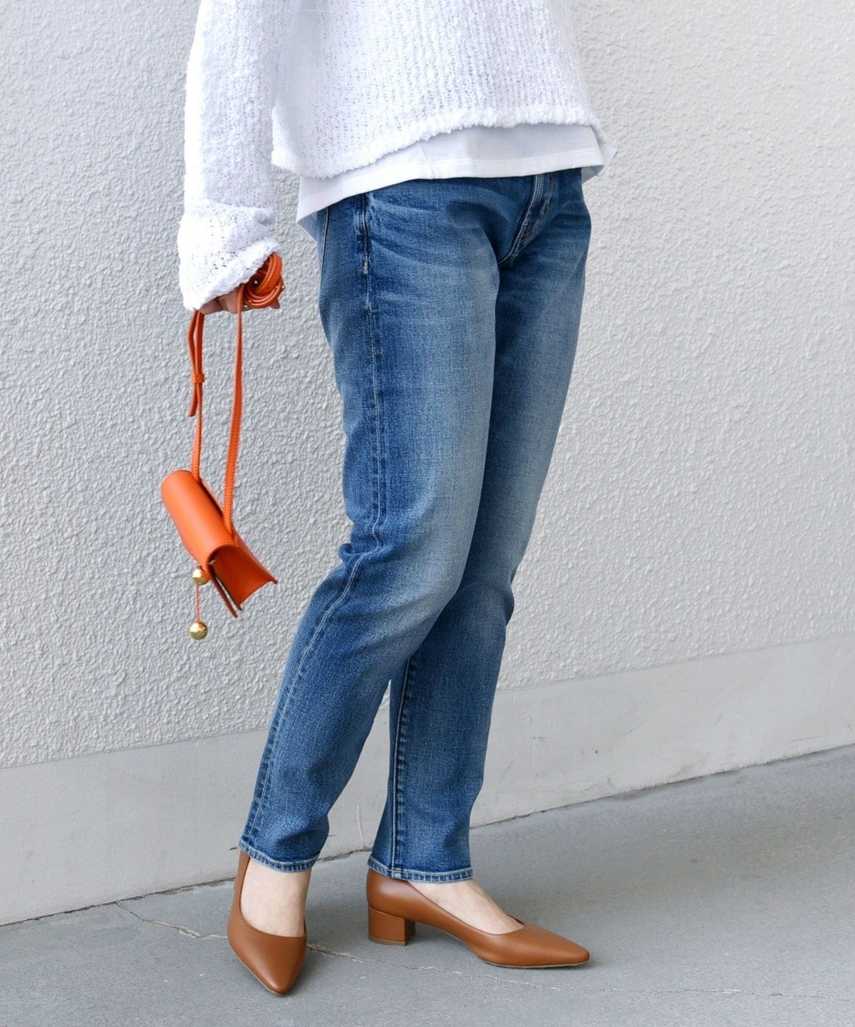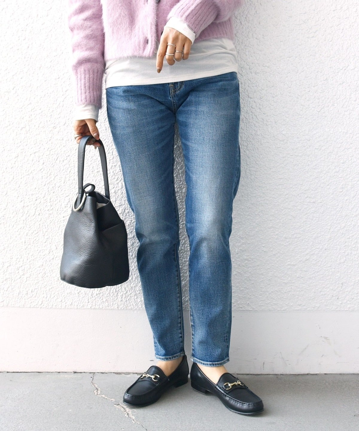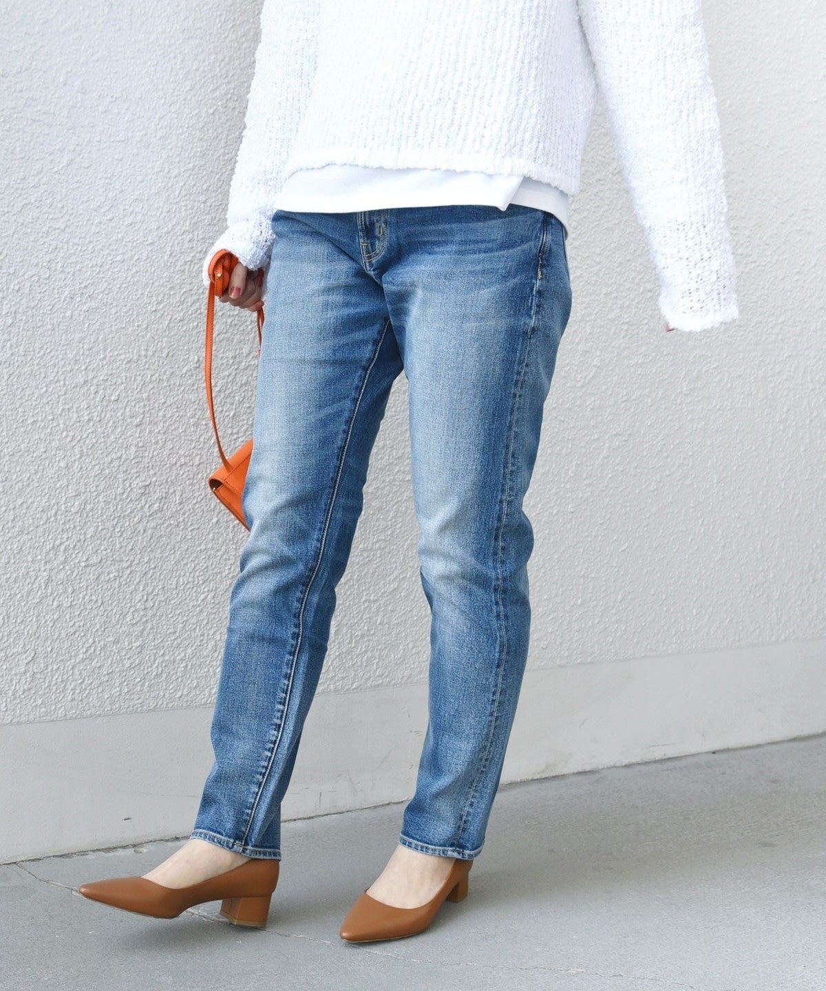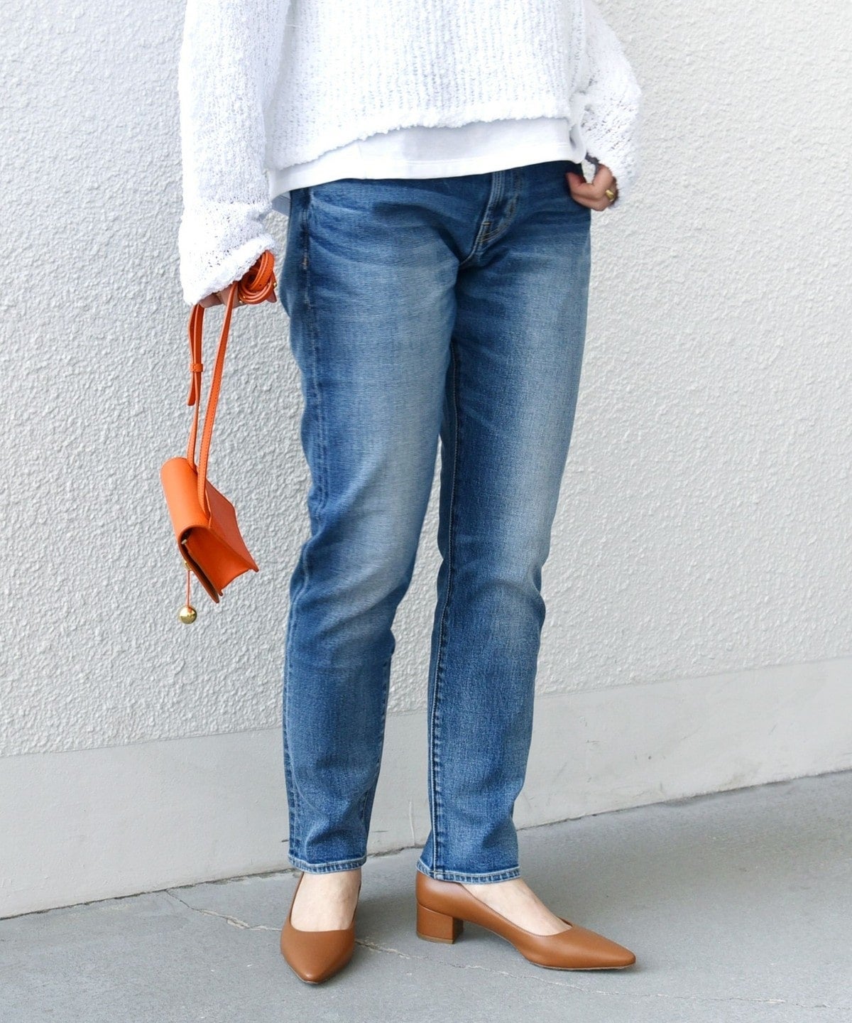着心地:伸縮性があってかなり履きやすいデニムです。長すぎず短すぎない丈感なので、幅広いシューズと相性が良さそう◎