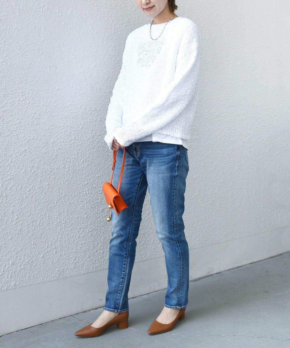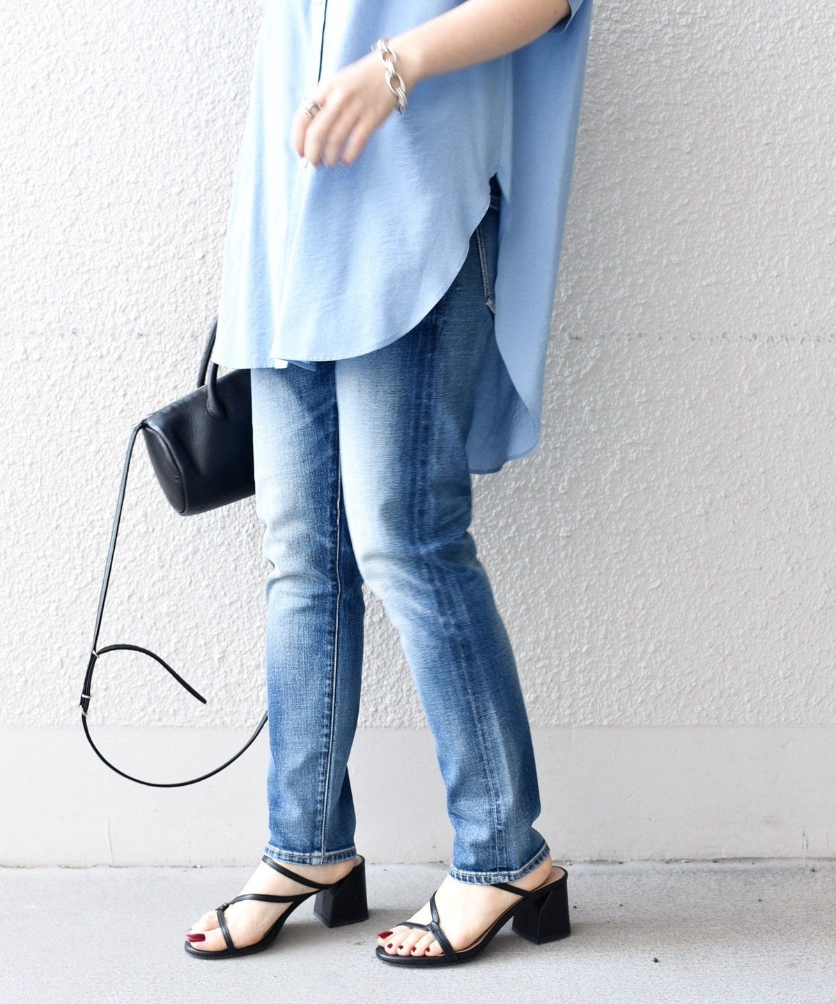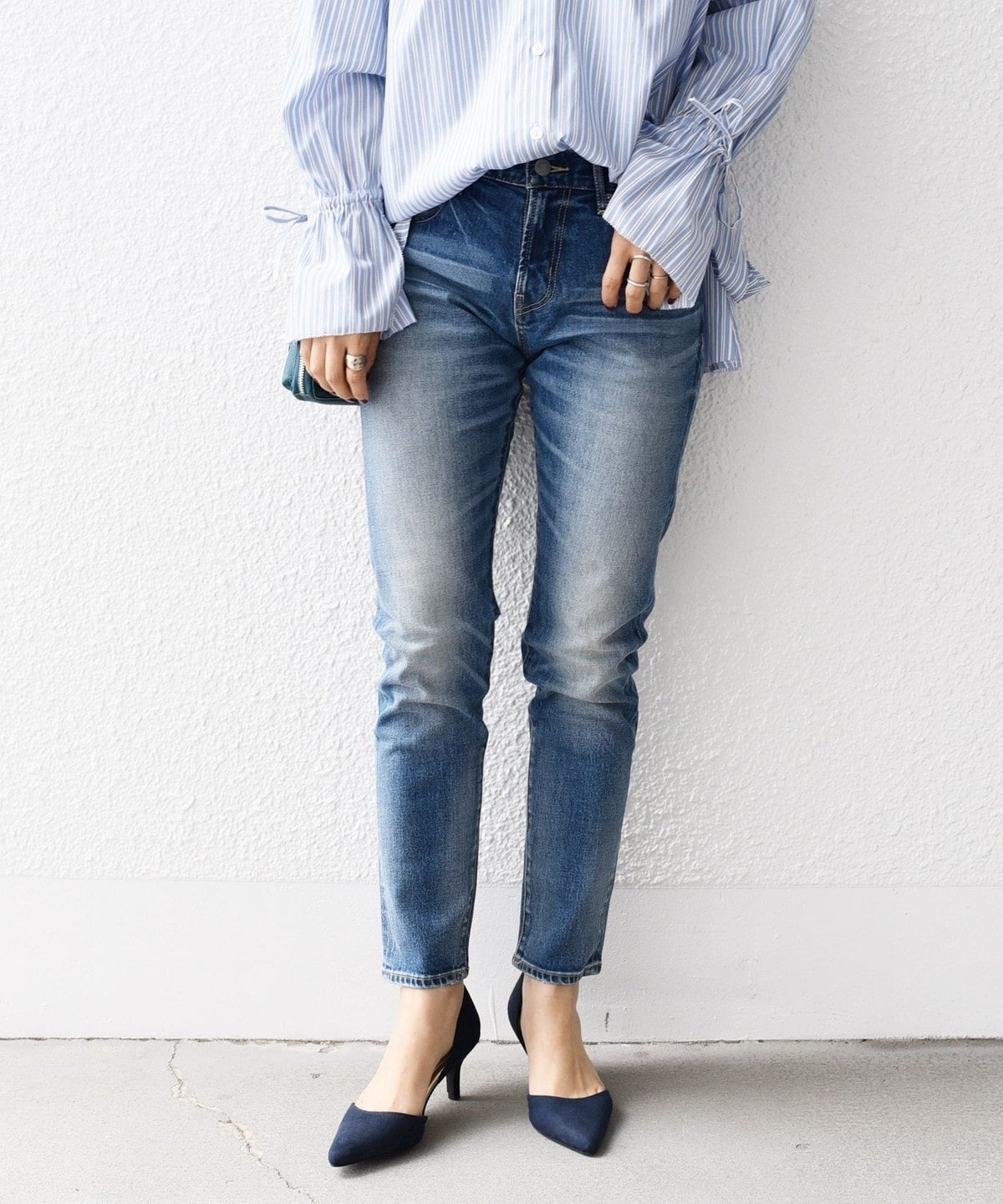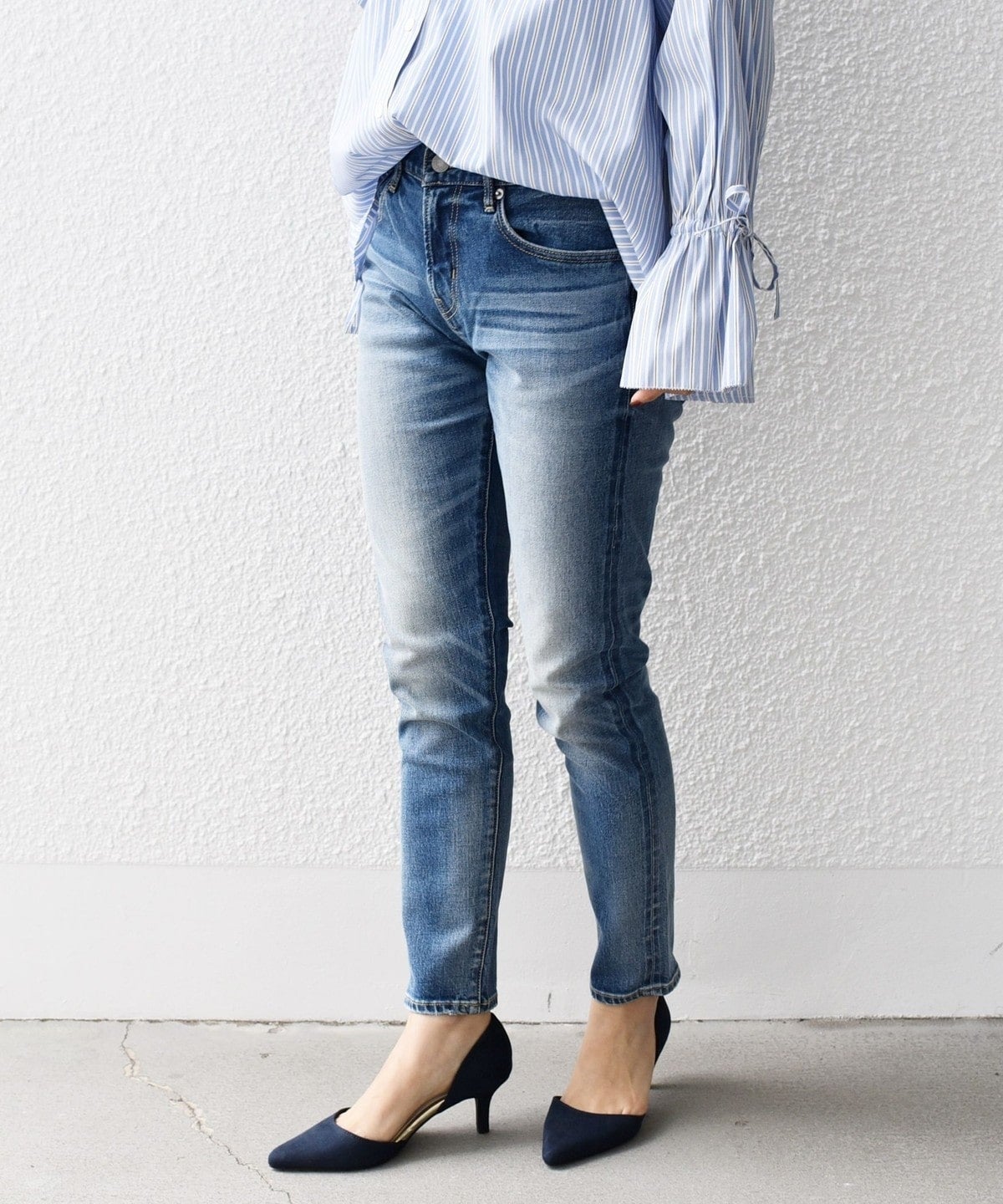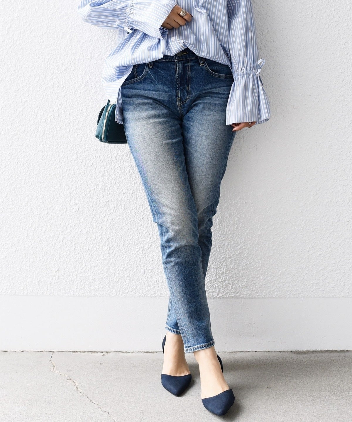 着心地:伸縮性があってかなり履きやすいデニムです。長すぎず短すぎない丈感なので、幅広いシューズと相性が良さそう◎