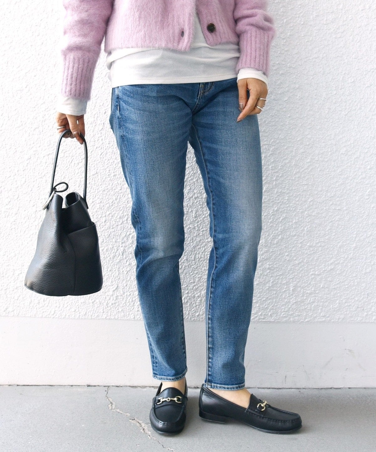 着心地:伸縮性があってかなり履きやすいデニムです。長すぎず短すぎない丈感なので、幅広いシューズと相性が良さそう◎