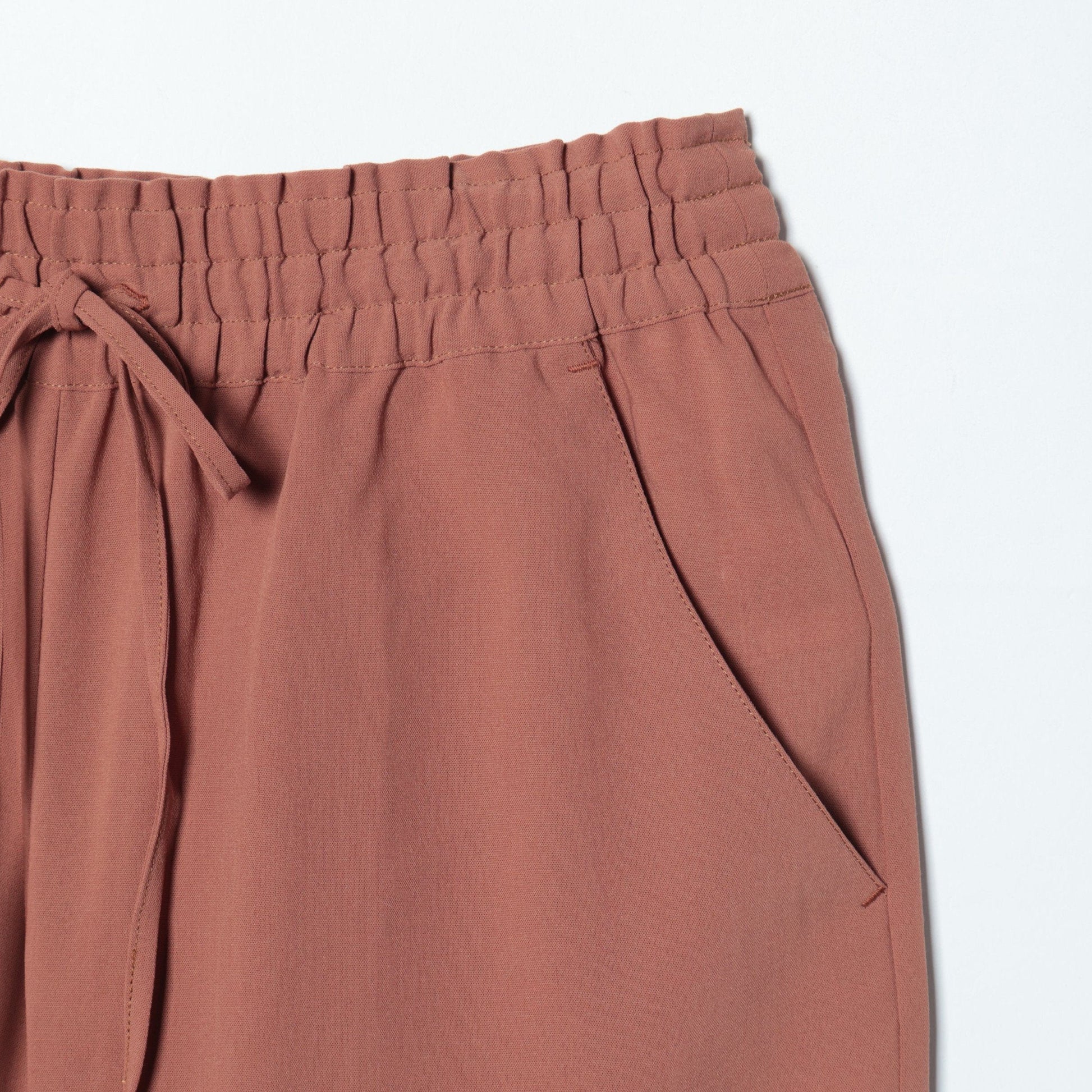 コーディネートを選ばず着回しにも便利なデザインで、軽さと、肌離れのいい着心地感がポイントのリラックスパンツ。
