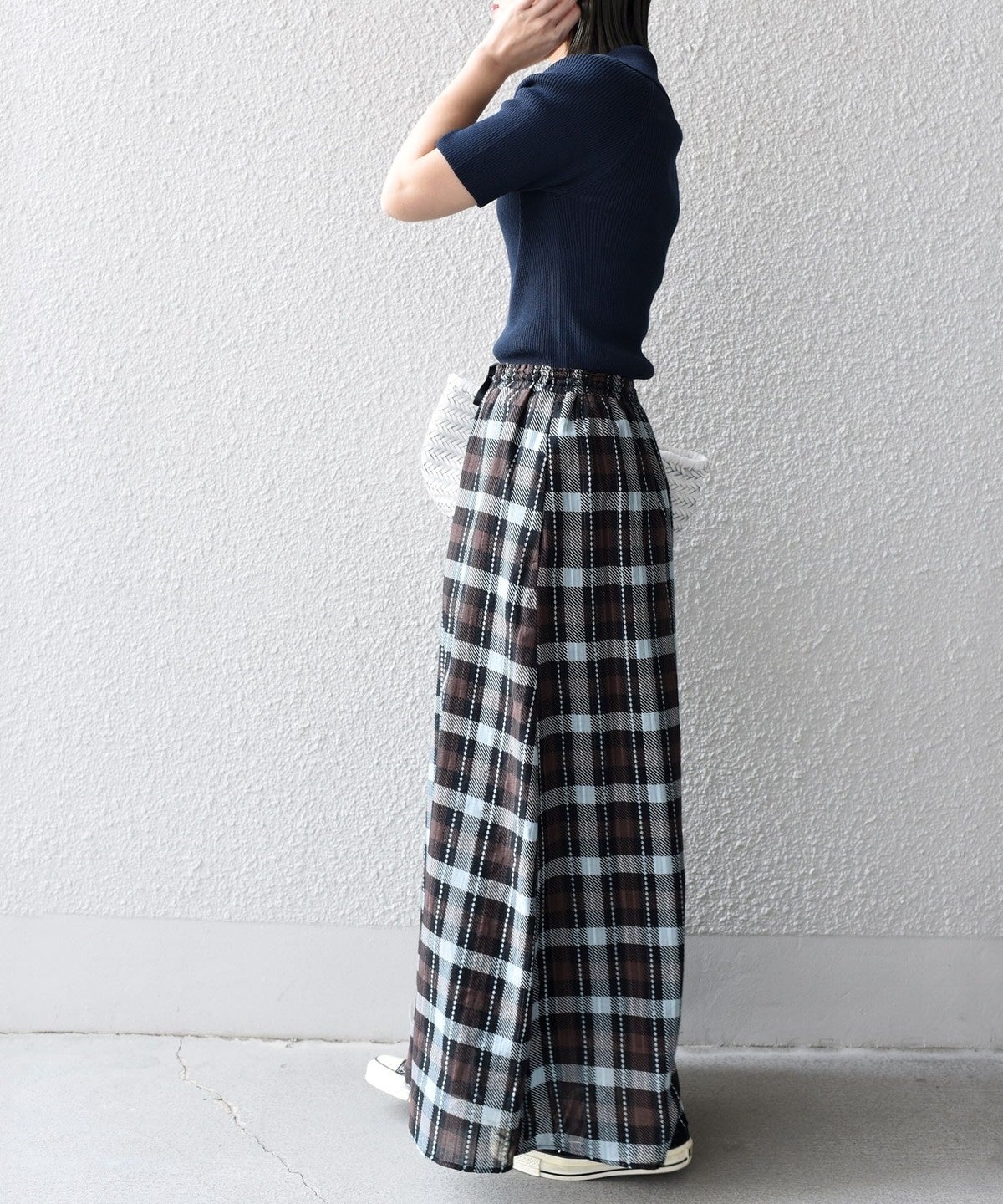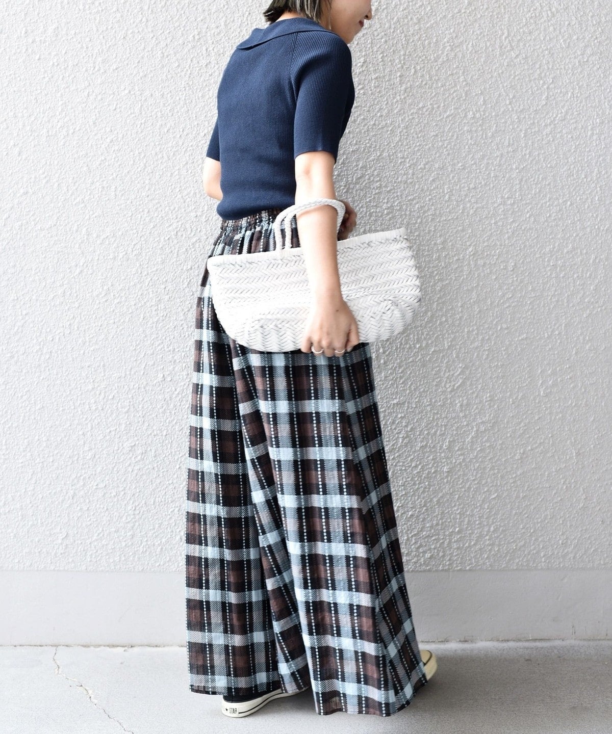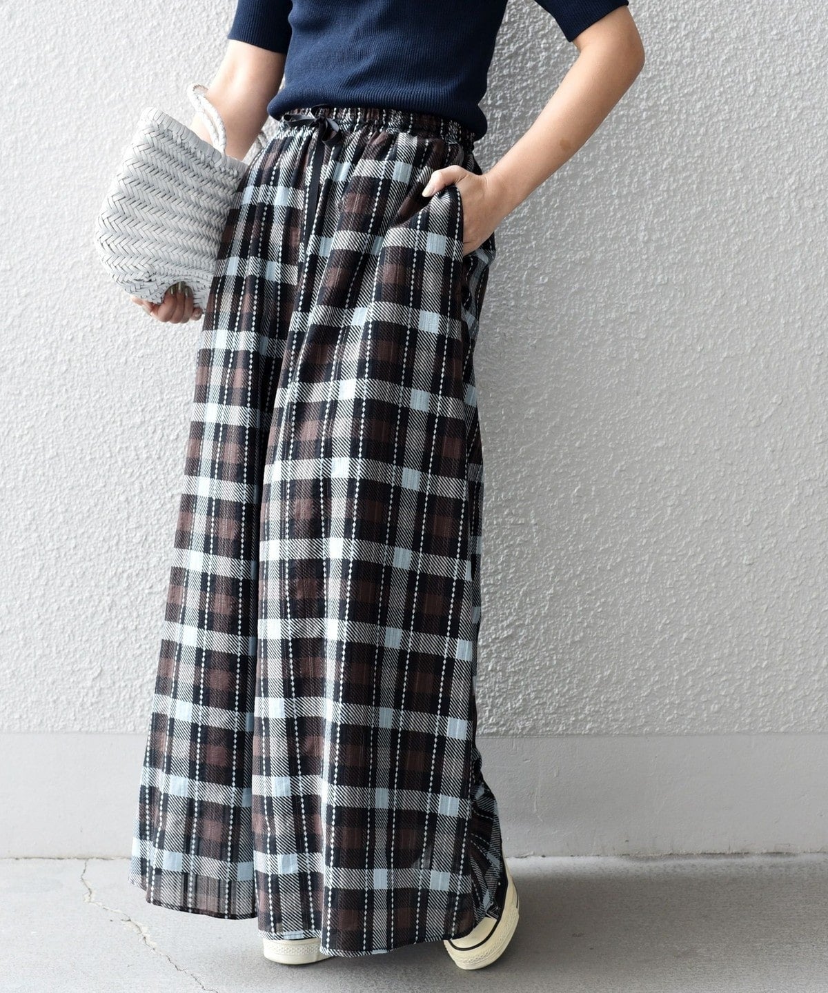 スカート見えのワイドパンツは動き易く、カジュアルなシーンでも重宝する一枚です。