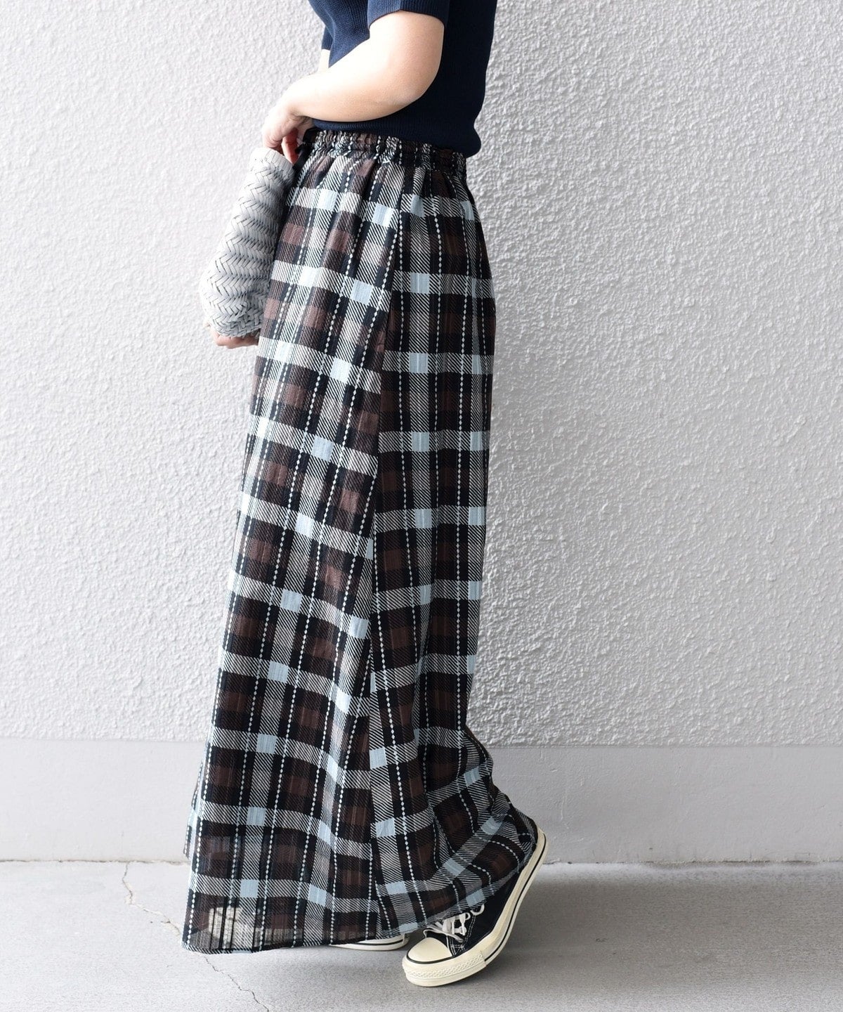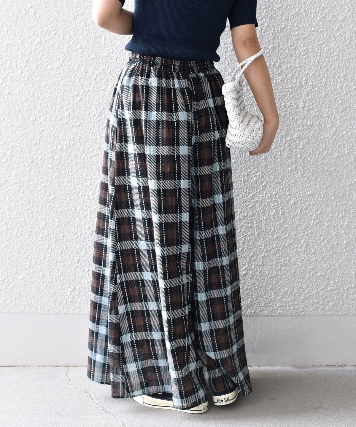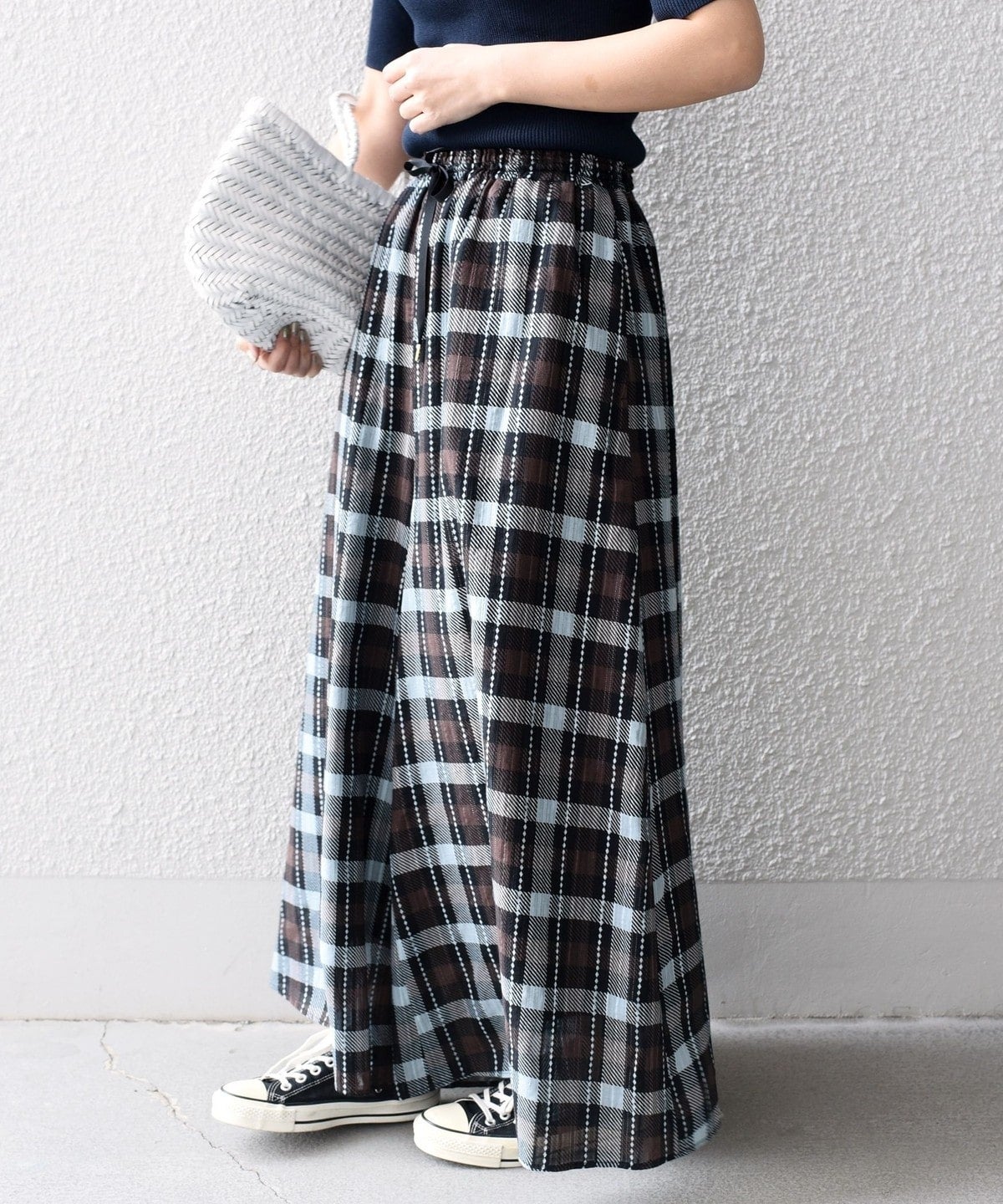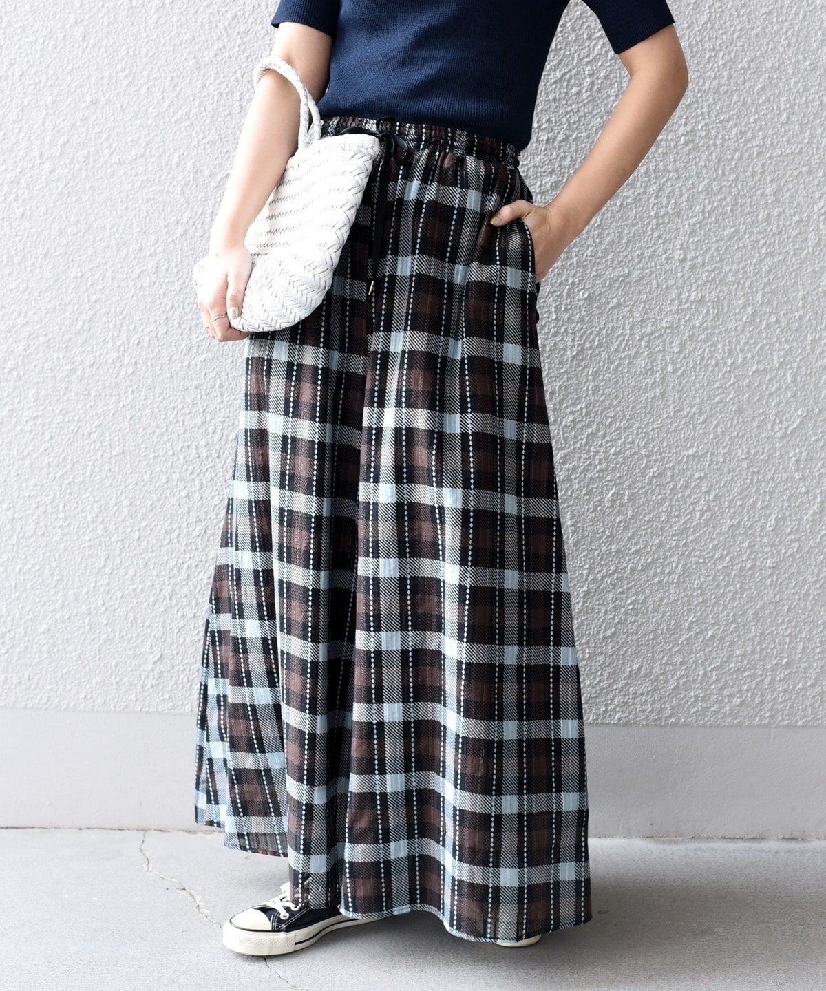 スカート見えのワイドパンツは動き易く、カジュアルなシーンでも重宝する一枚です。