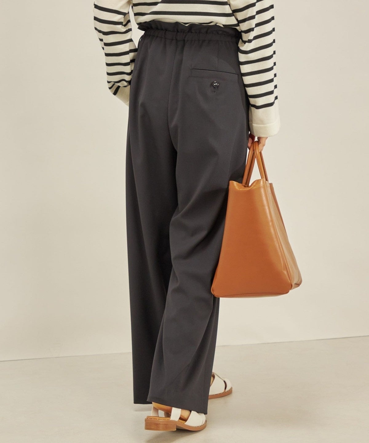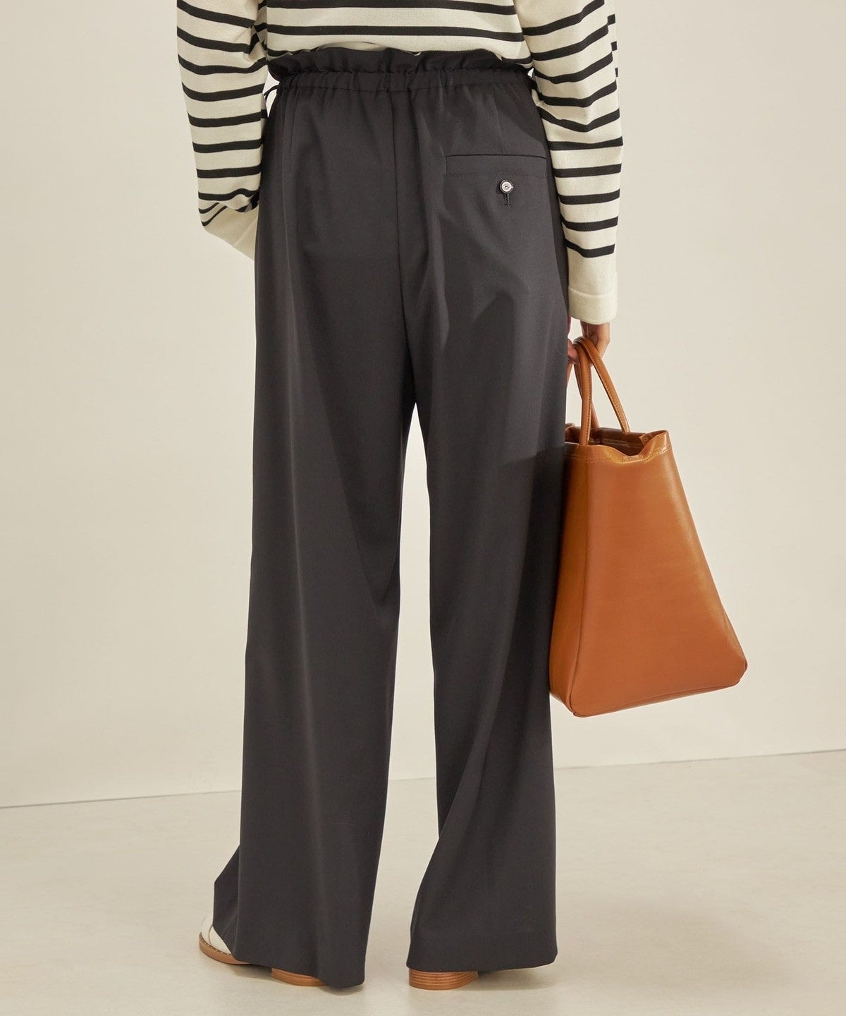 スタイリッシュなウール梳毛を使用しながら、SHIPSでは新しいシルエットやディテールを盛り込んだ遊び心のあるワイドパンツ。