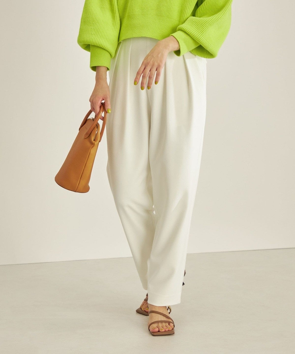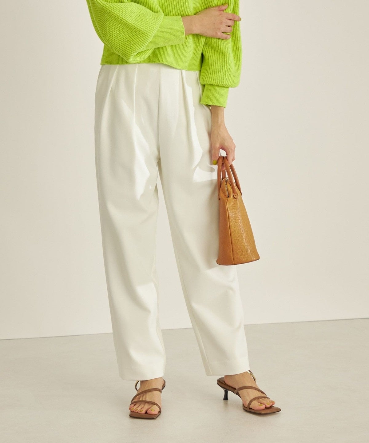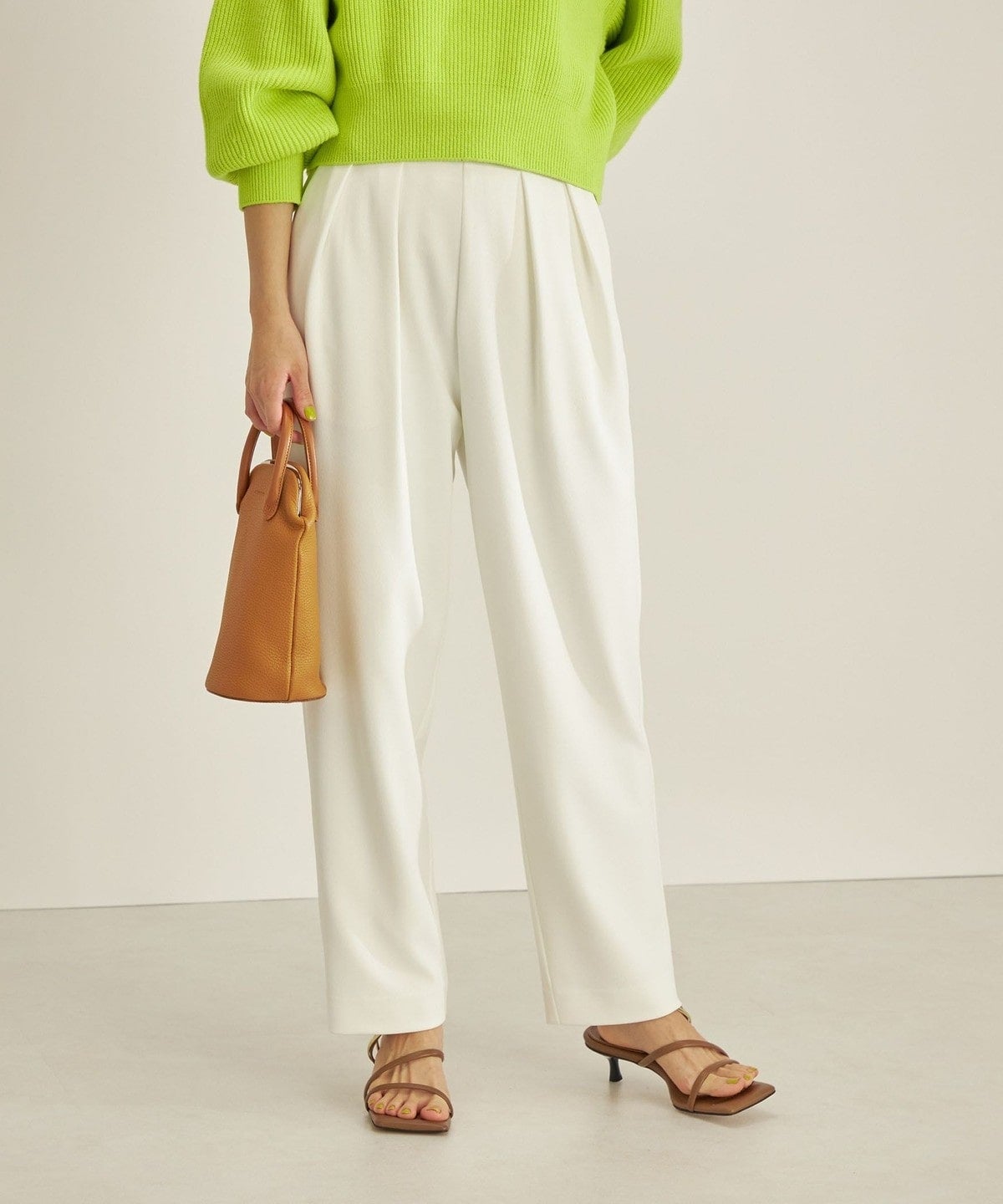 ウエストのタックがポイントなので、トップスのインスタイルがおすすめ。