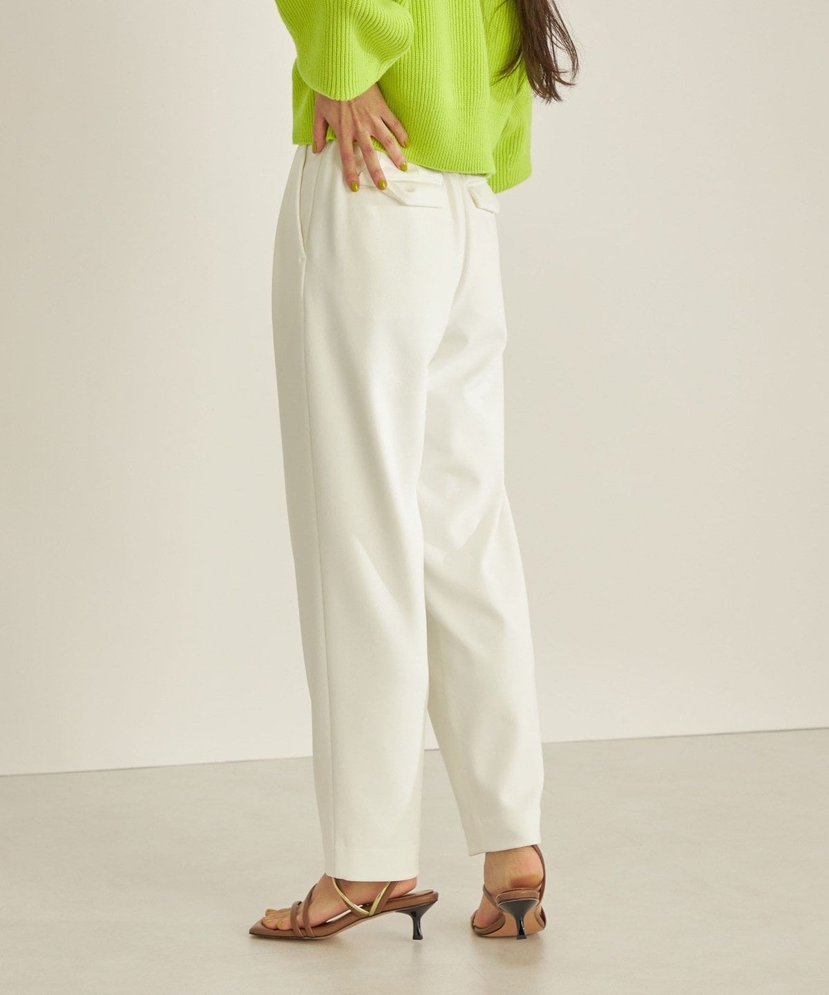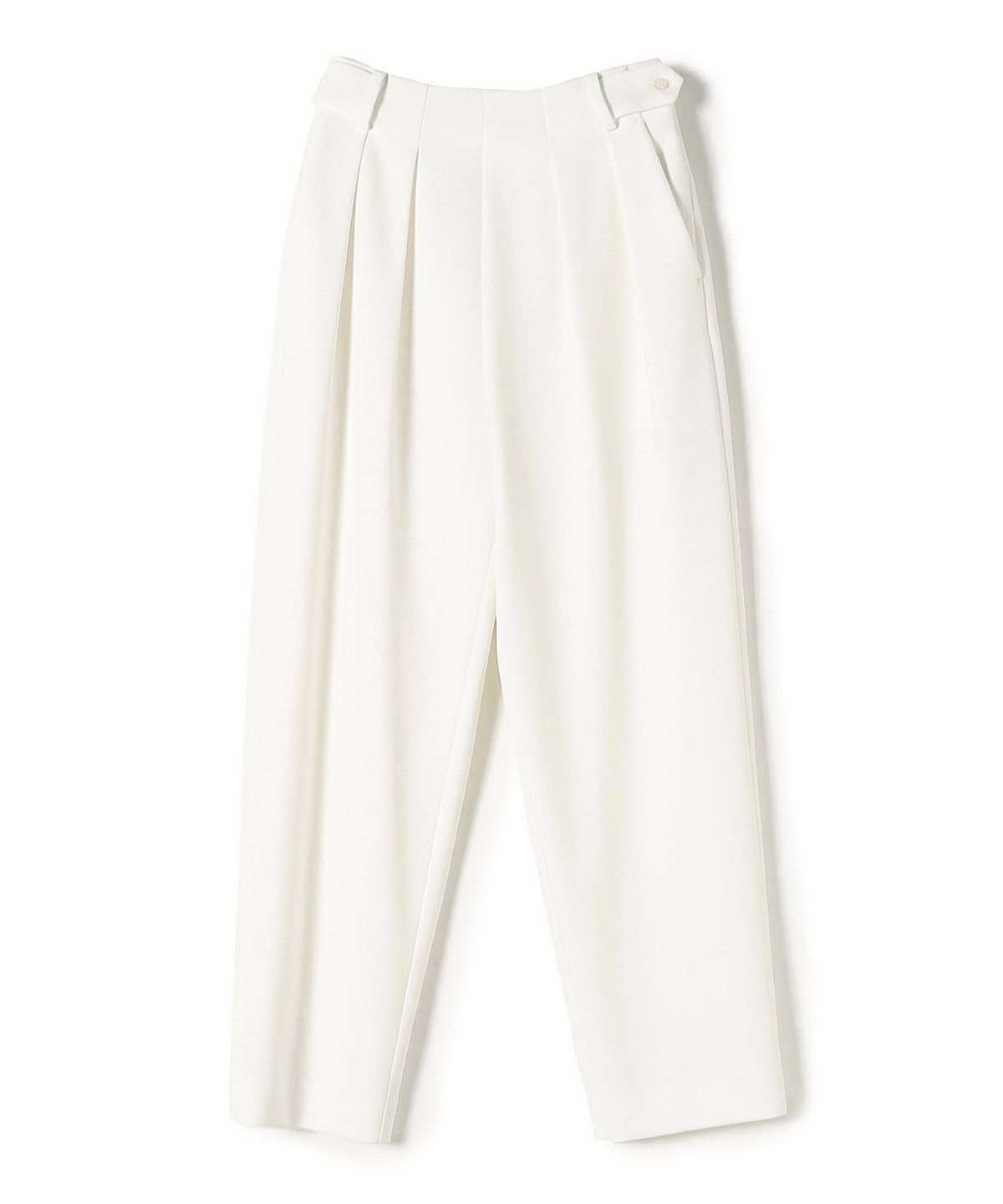ベルトサイドに調整タブ付きでハイウエストをキープしたテーパードパンツ。