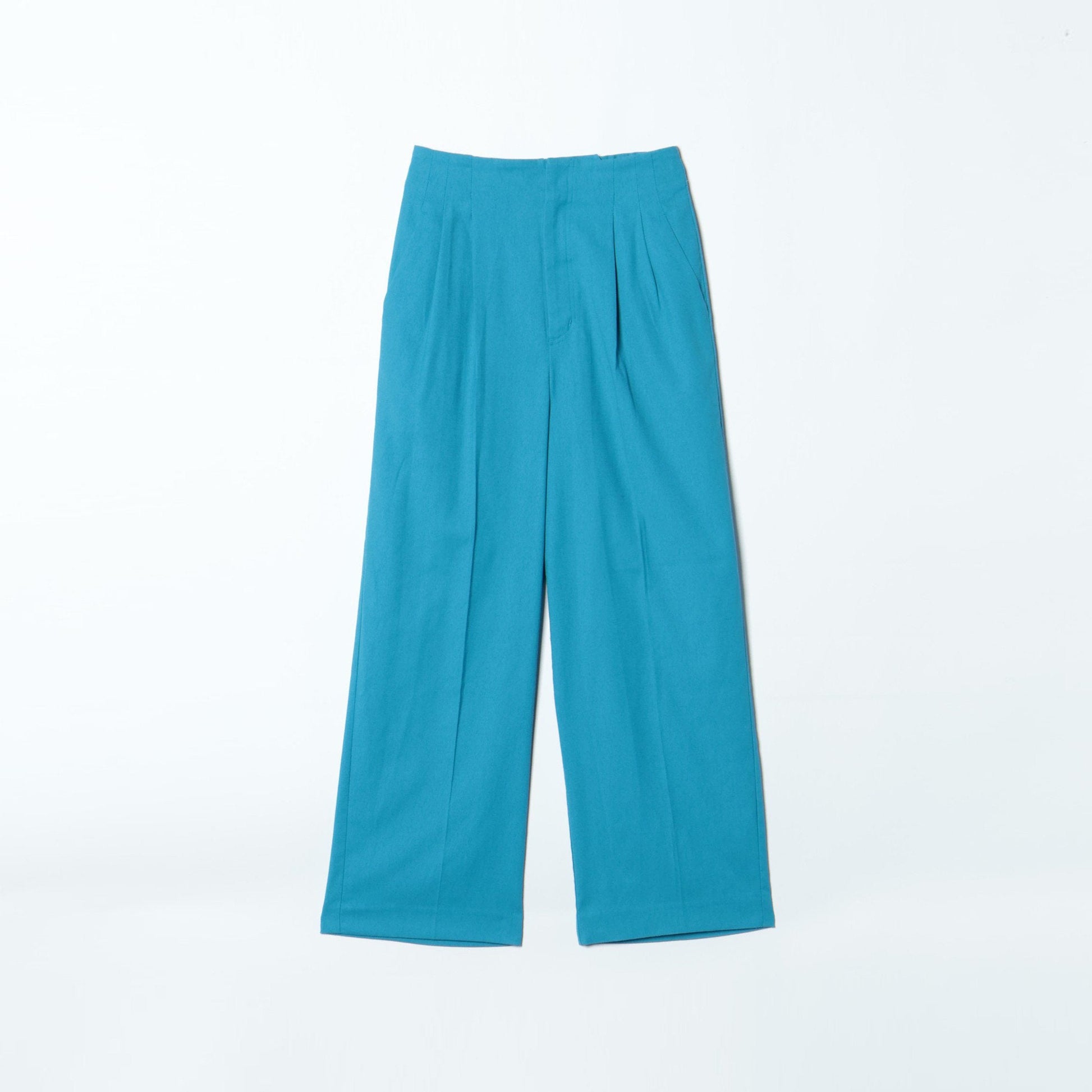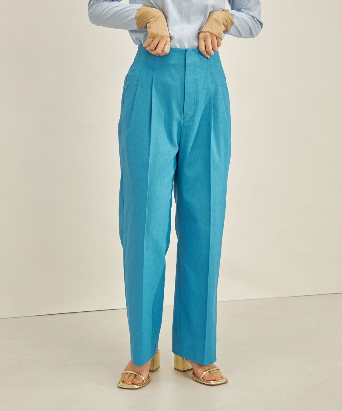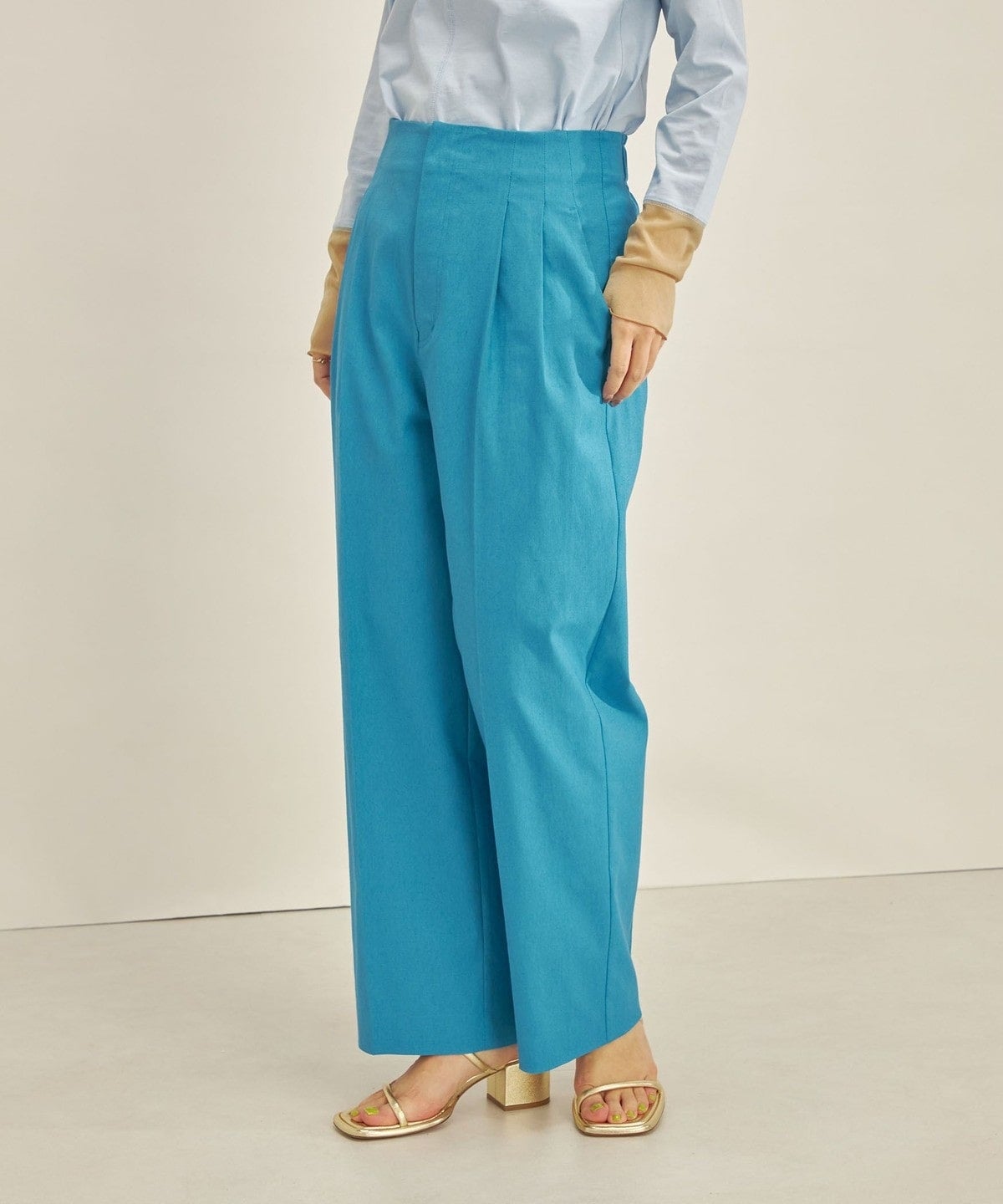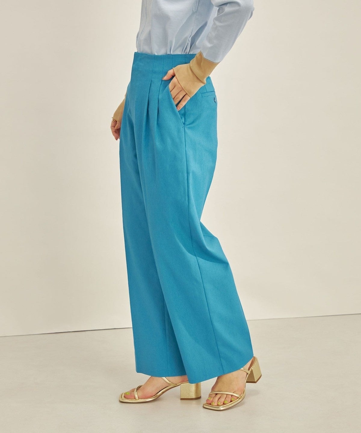 タックの上端は中縫いがされていてウエスト周りがすっきり見えるデザインです。