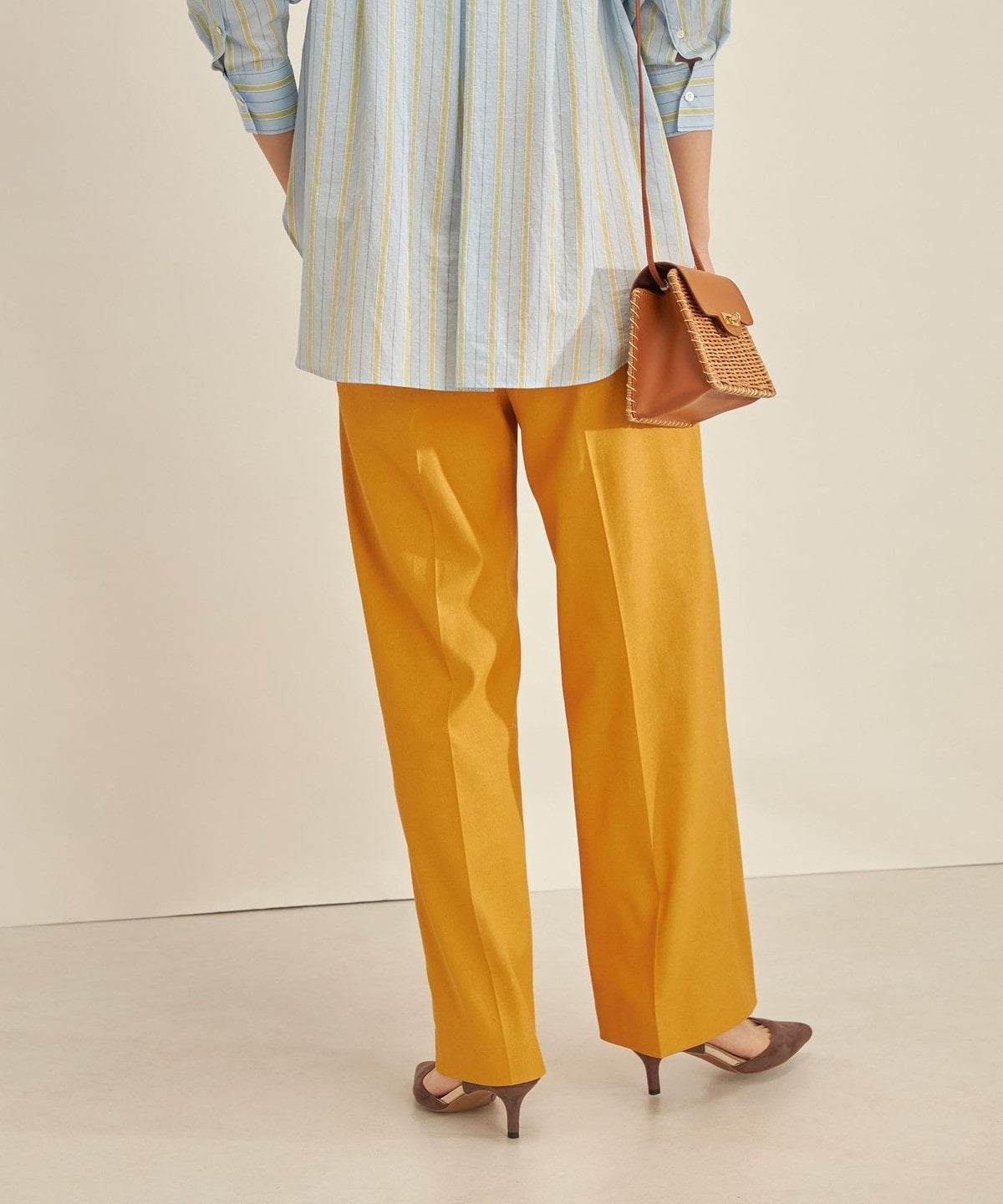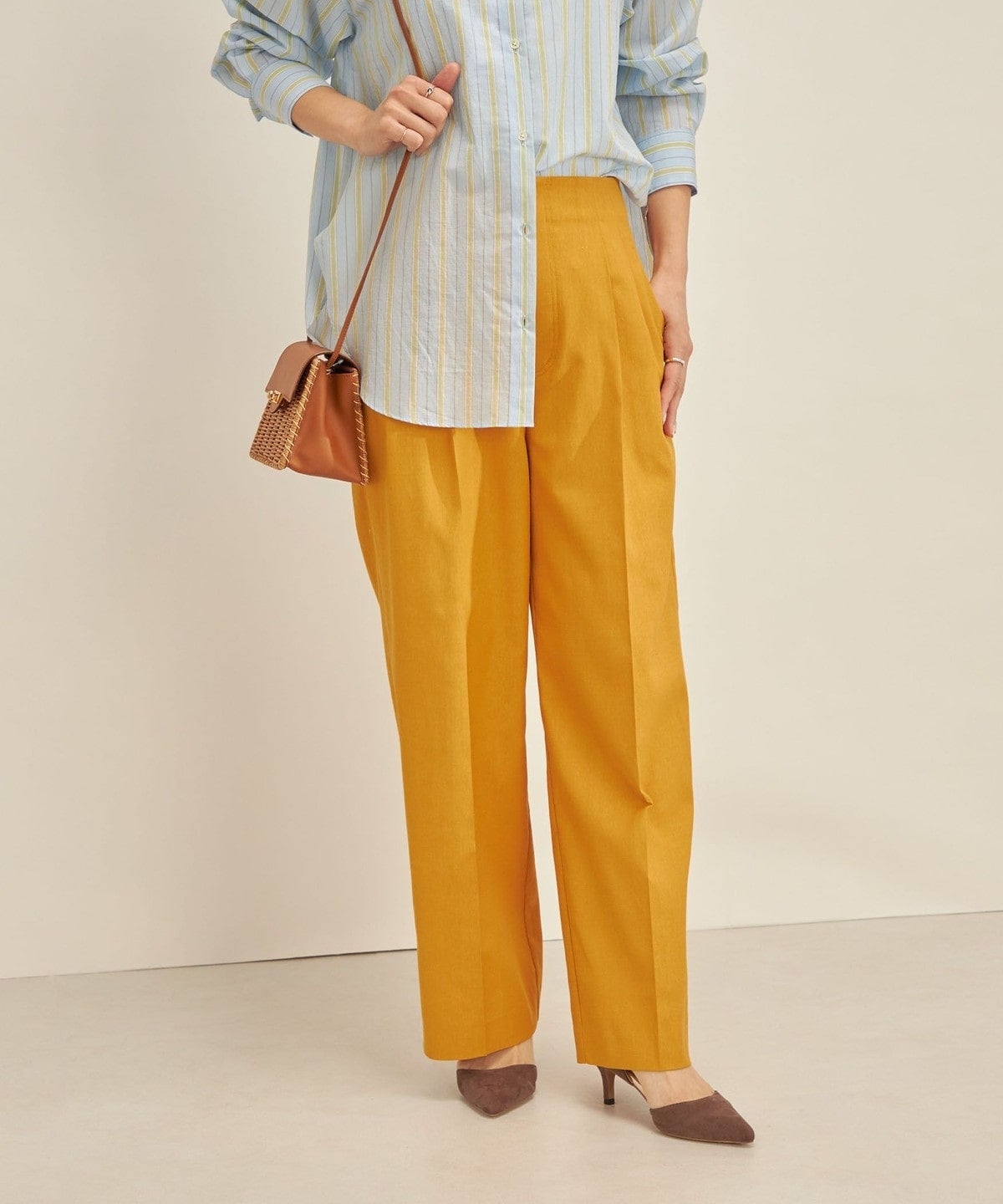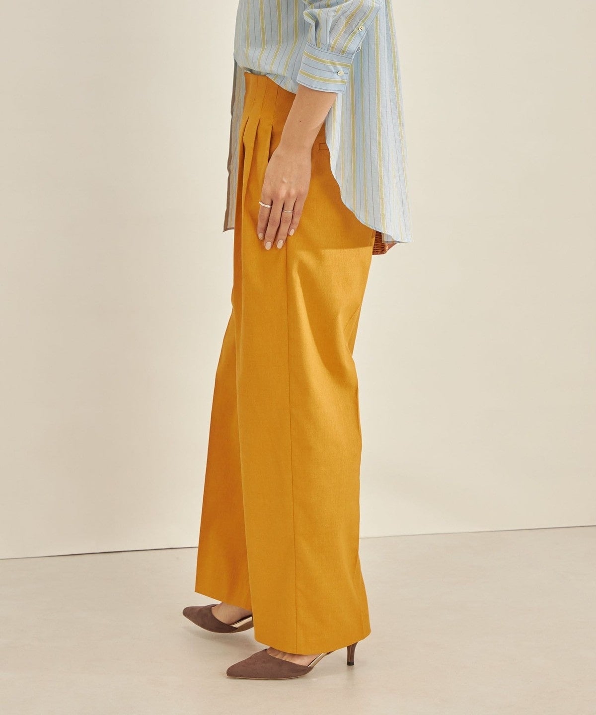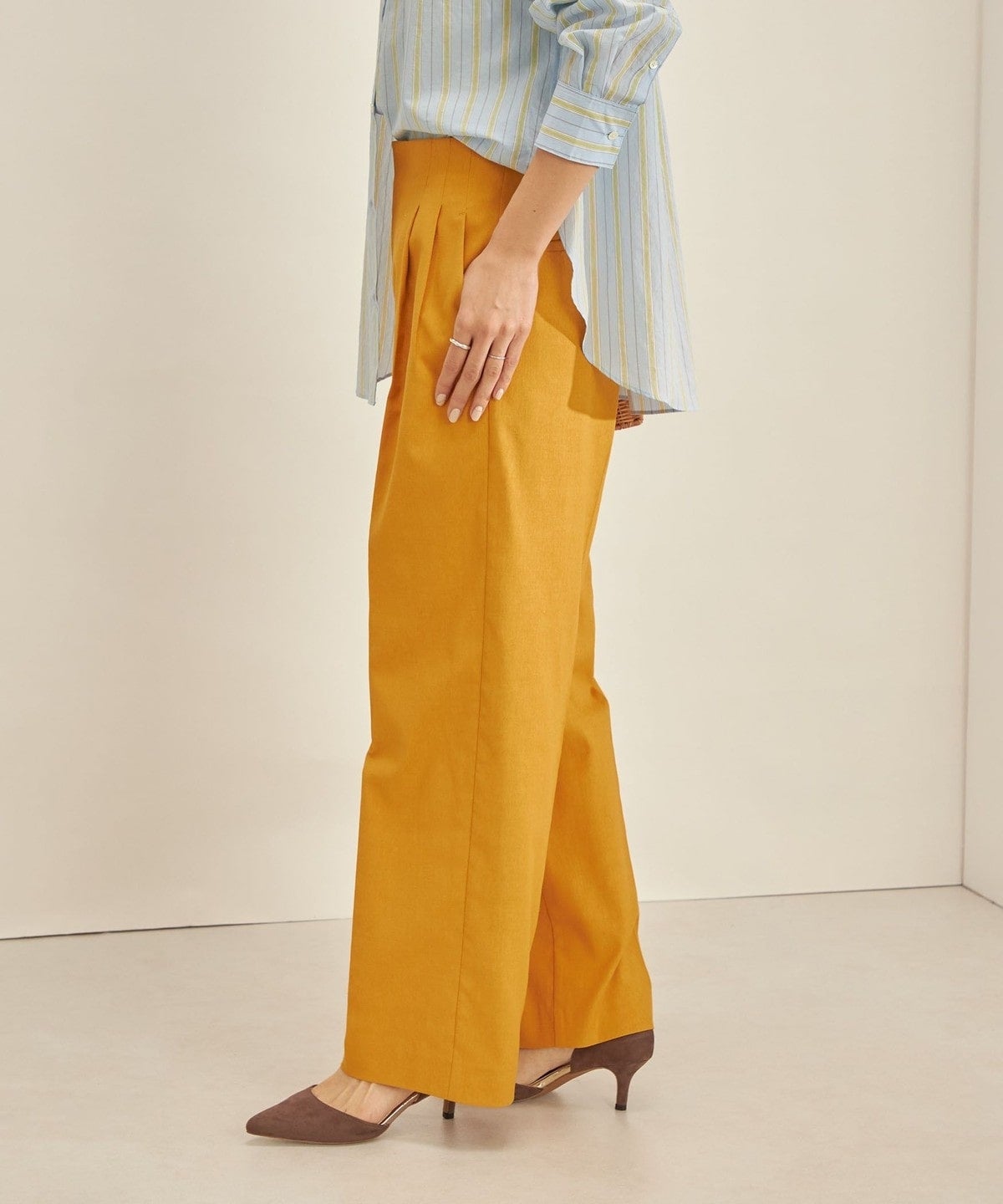タックの上端は中縫いがされていてウエスト周りがすっきり見えるデザインです。