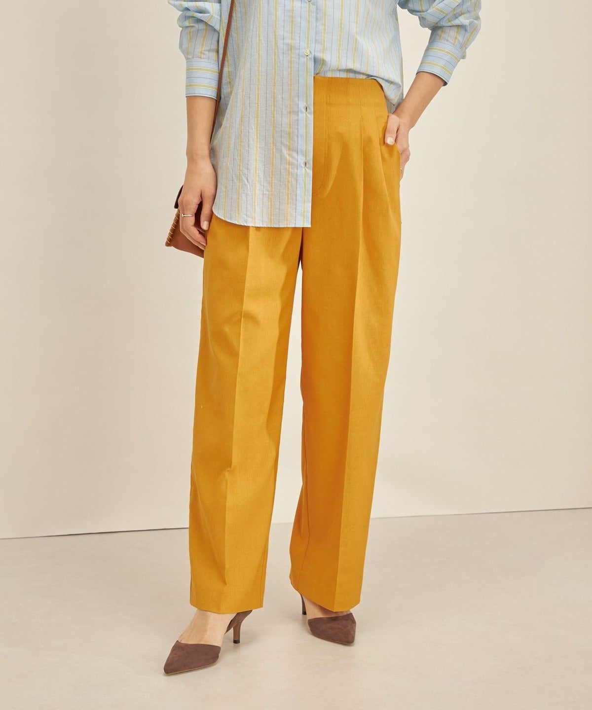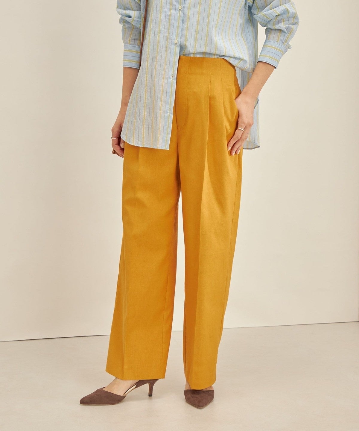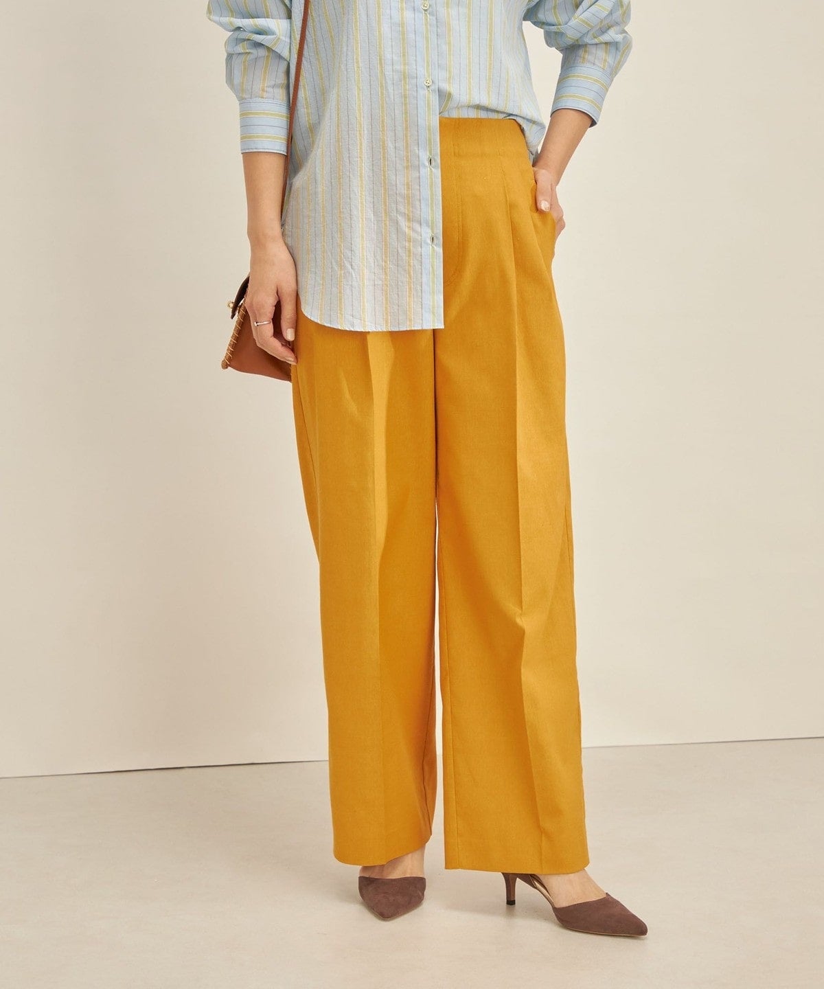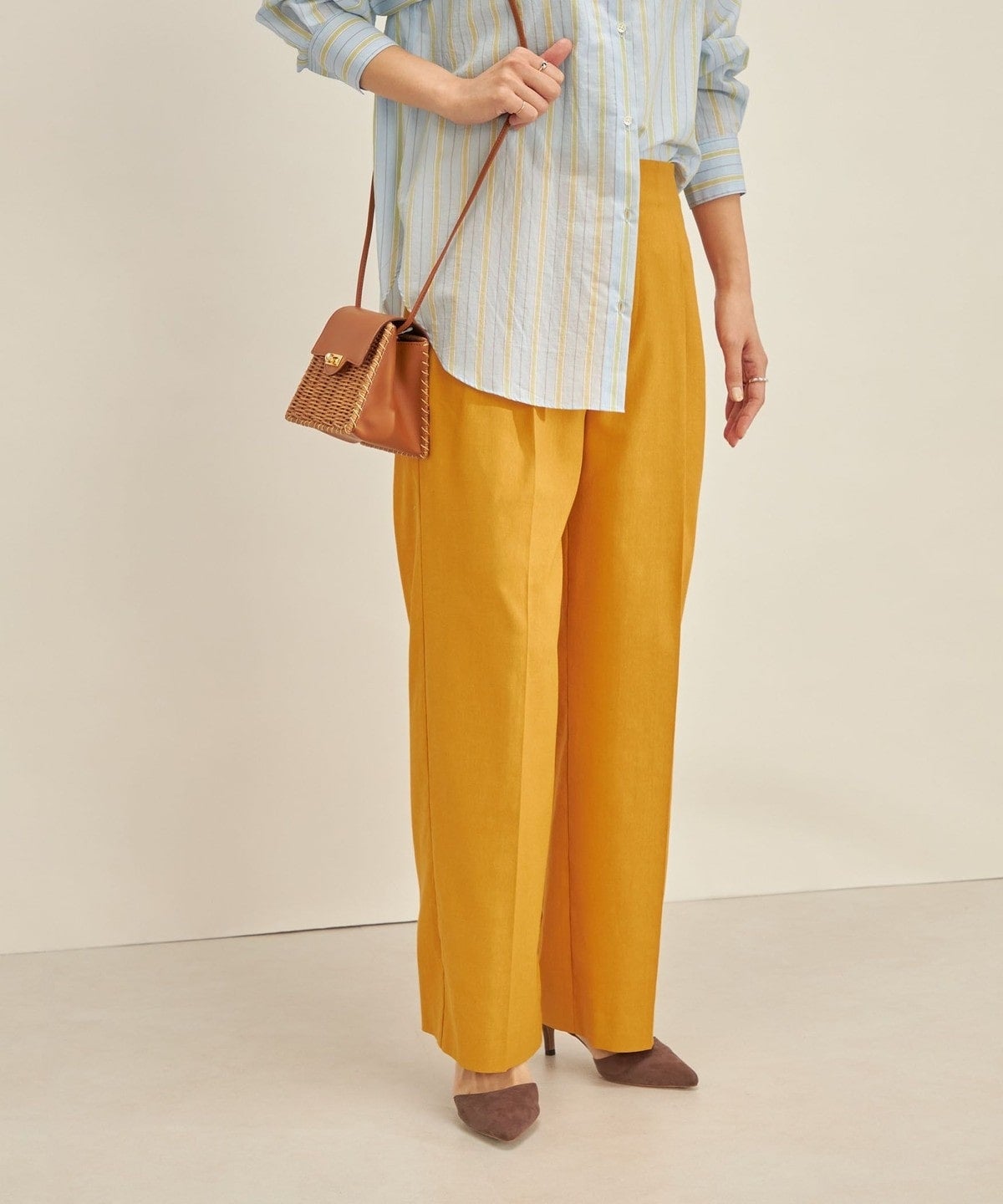 タックの上端は中縫いがされていてウエスト周りがすっきり見えるデザインです。