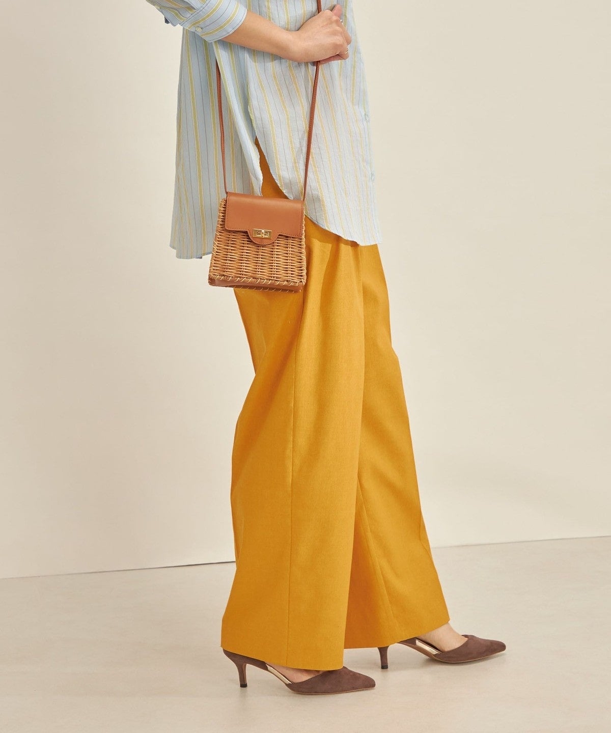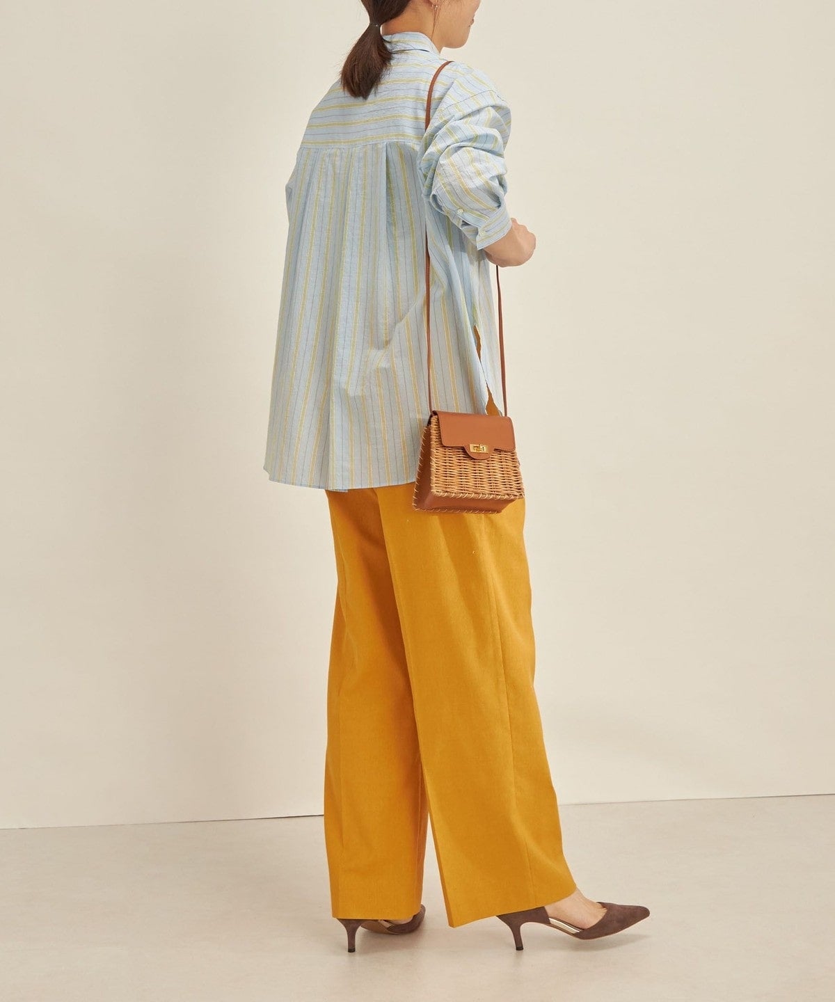 程よいカジュアル感ときれいさがあるので、Tシャツなどのラフなスタイルから、ジャケット合せやブラウスまで幅広く対応できます。