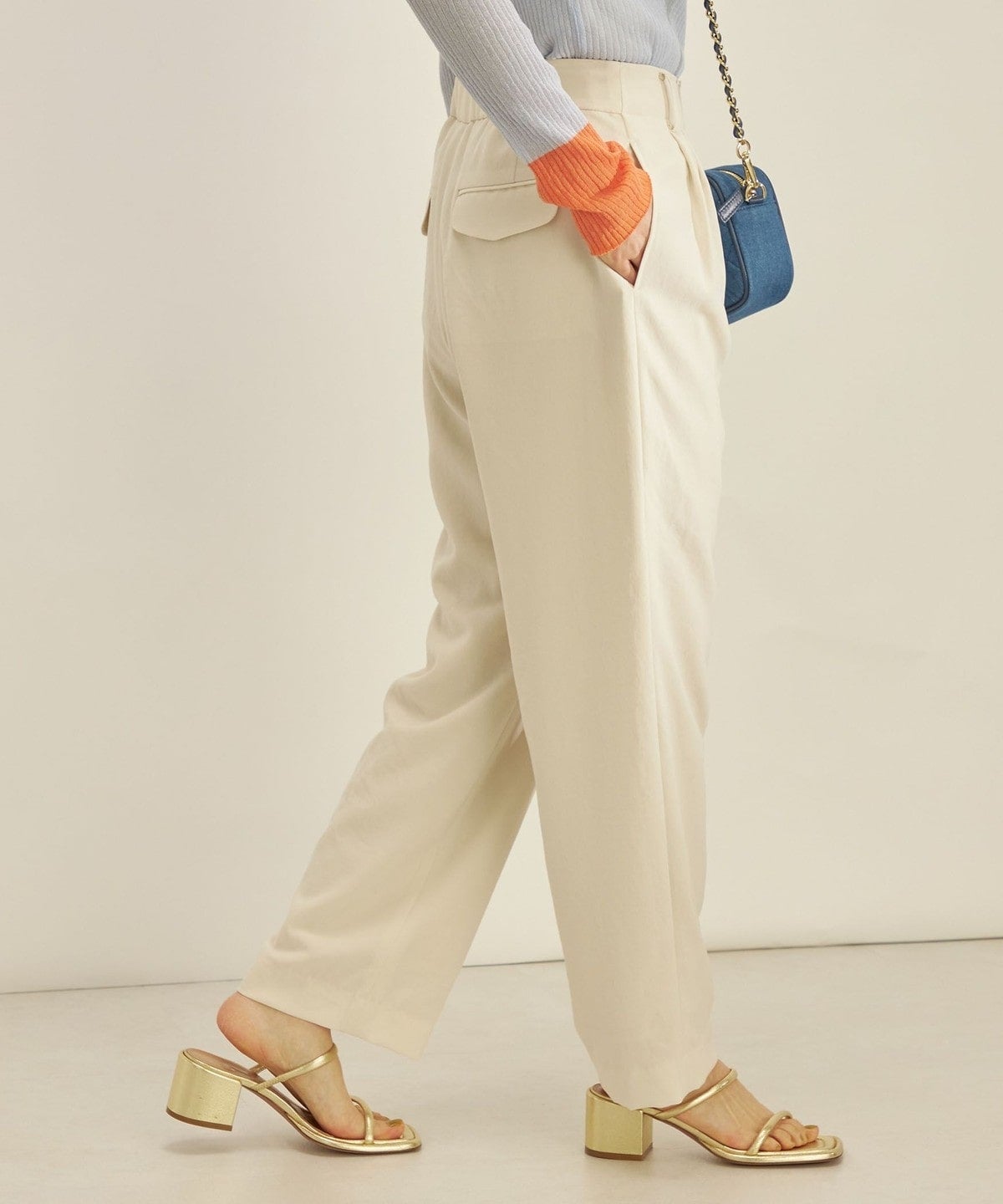 きれい目なトップス合わせででもスエットやTシャツ、スニーカー合わせのカジュアルコーディネートにも合わせられ、トップスを選ばない万能なパンツです。