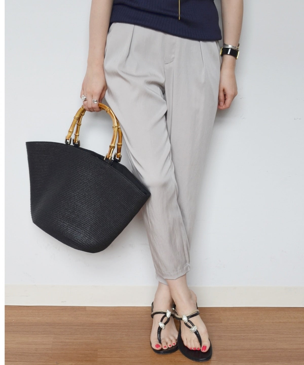 光沢感と落ち感のある生地が上品な印象のクロップドパンツです。