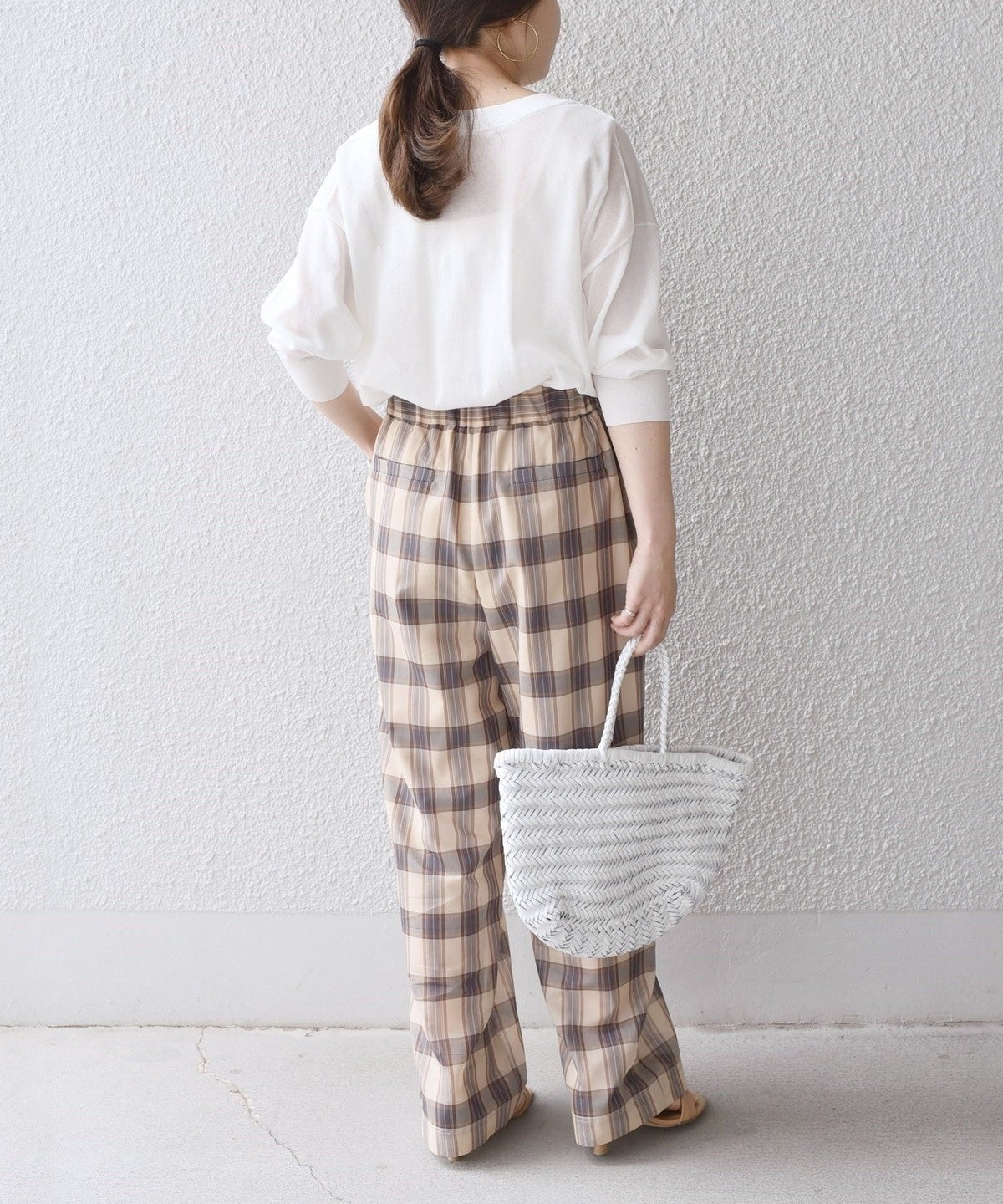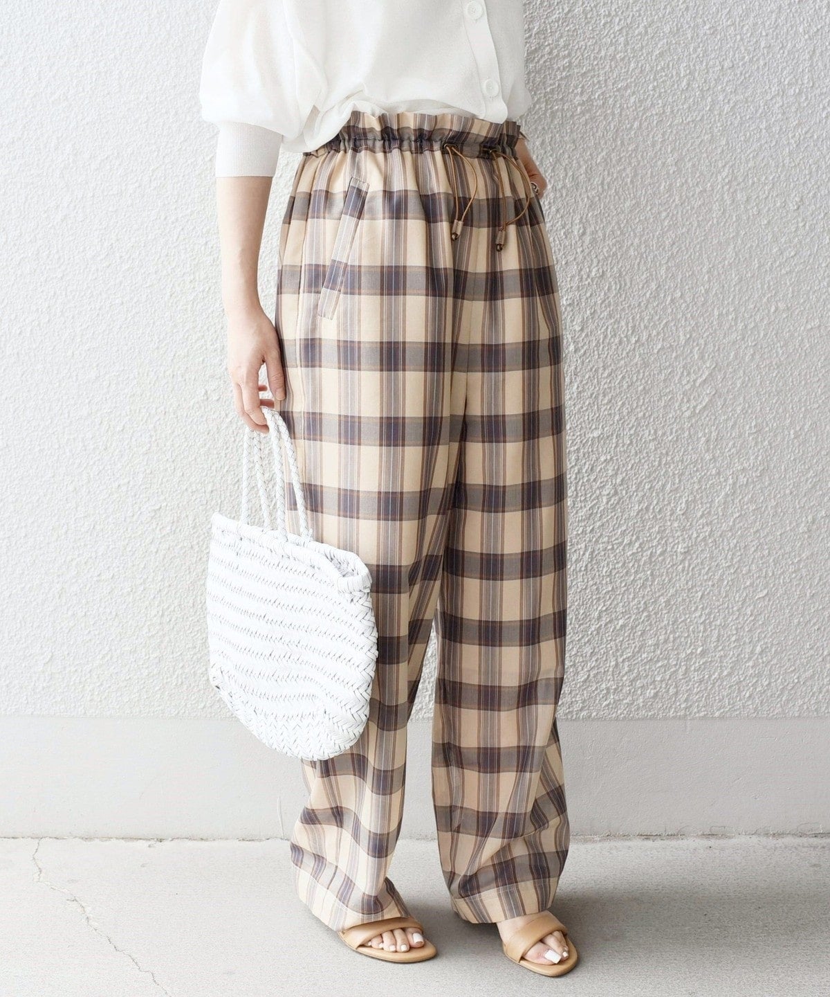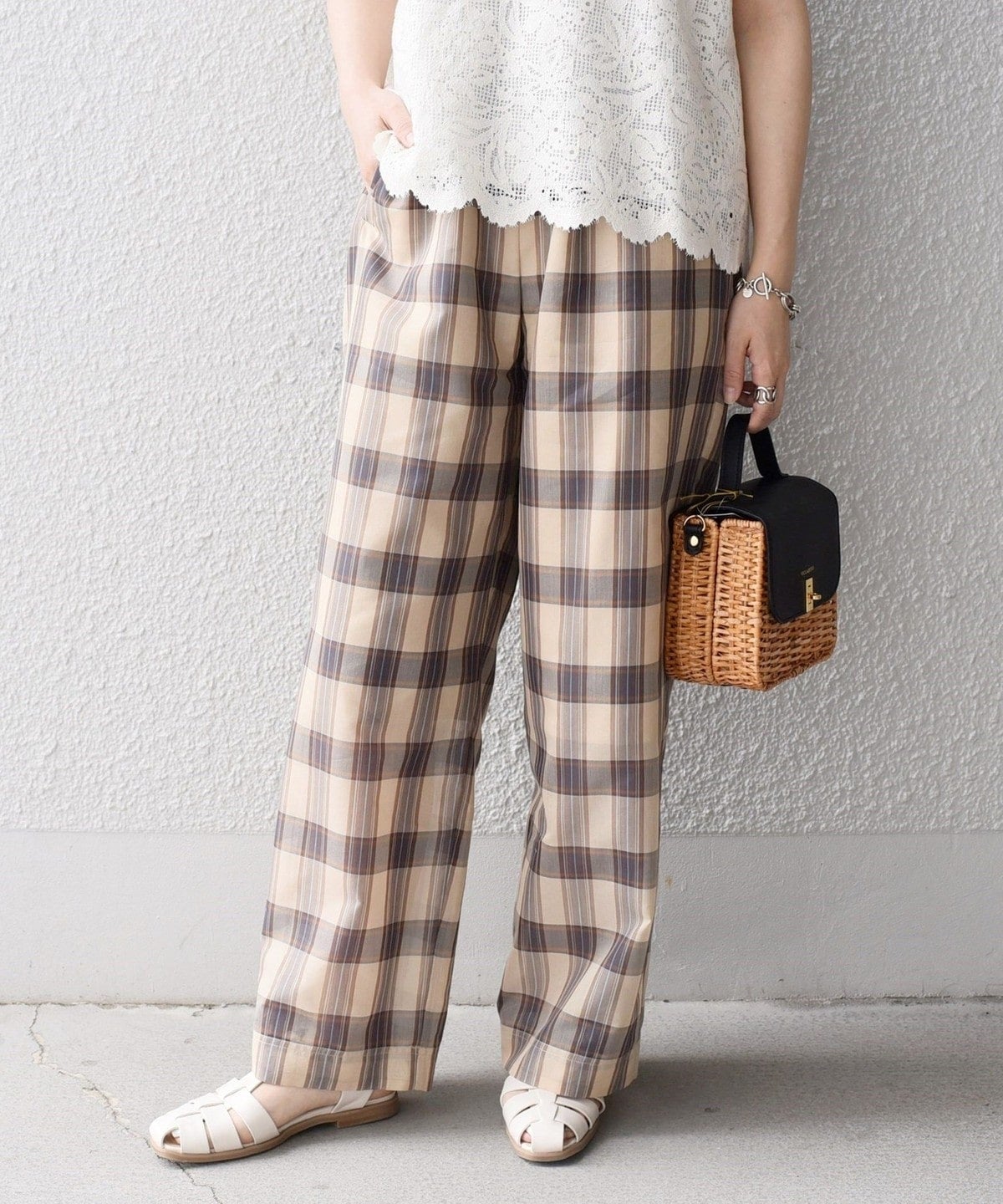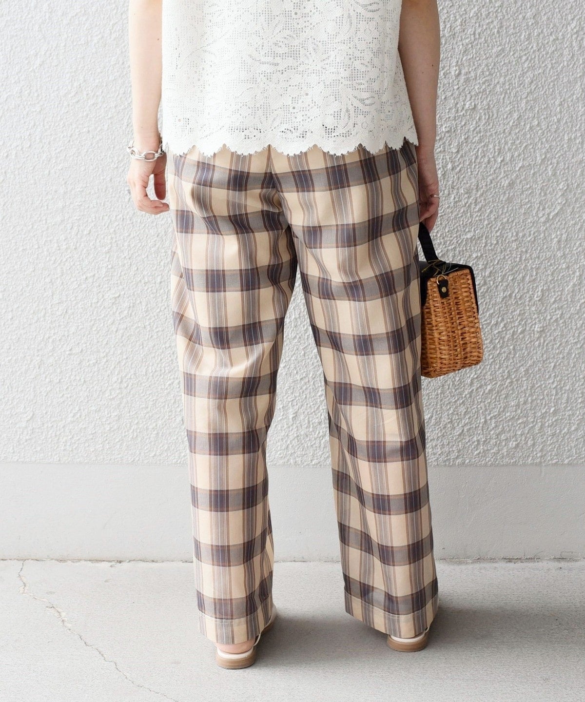 夏にまといたい涼し気素材のチェック柄パンツ。