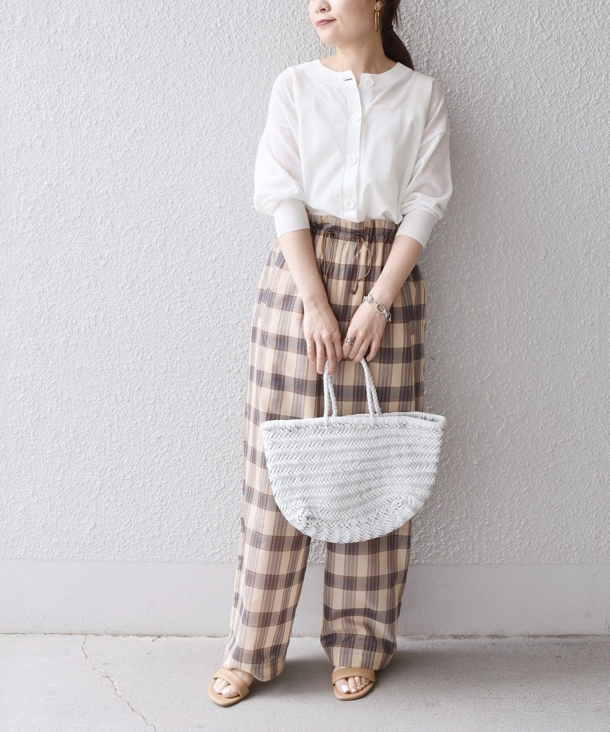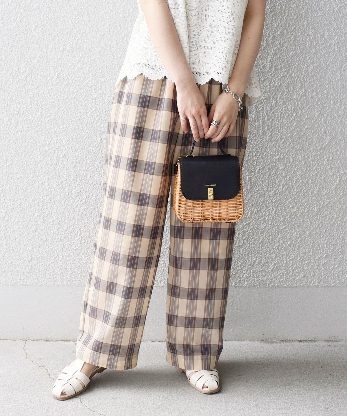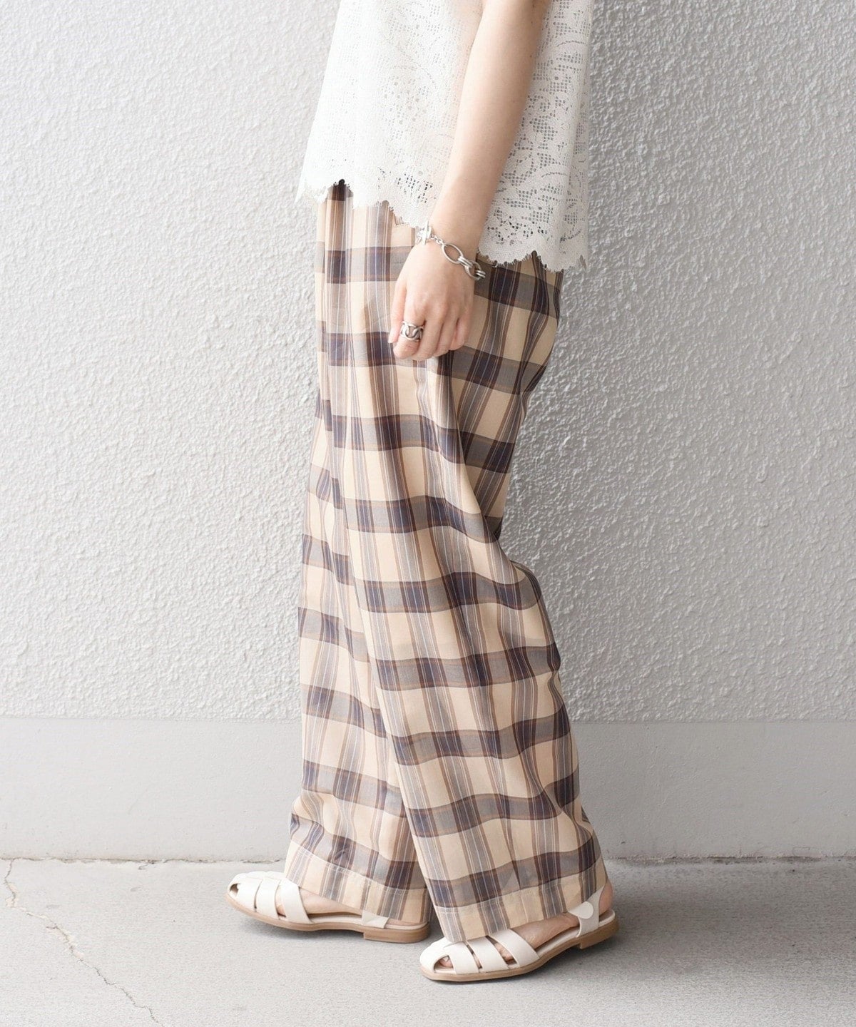 夏にまといたい涼し気素材のチェック柄パンツ。
