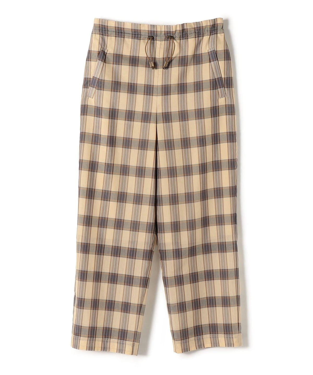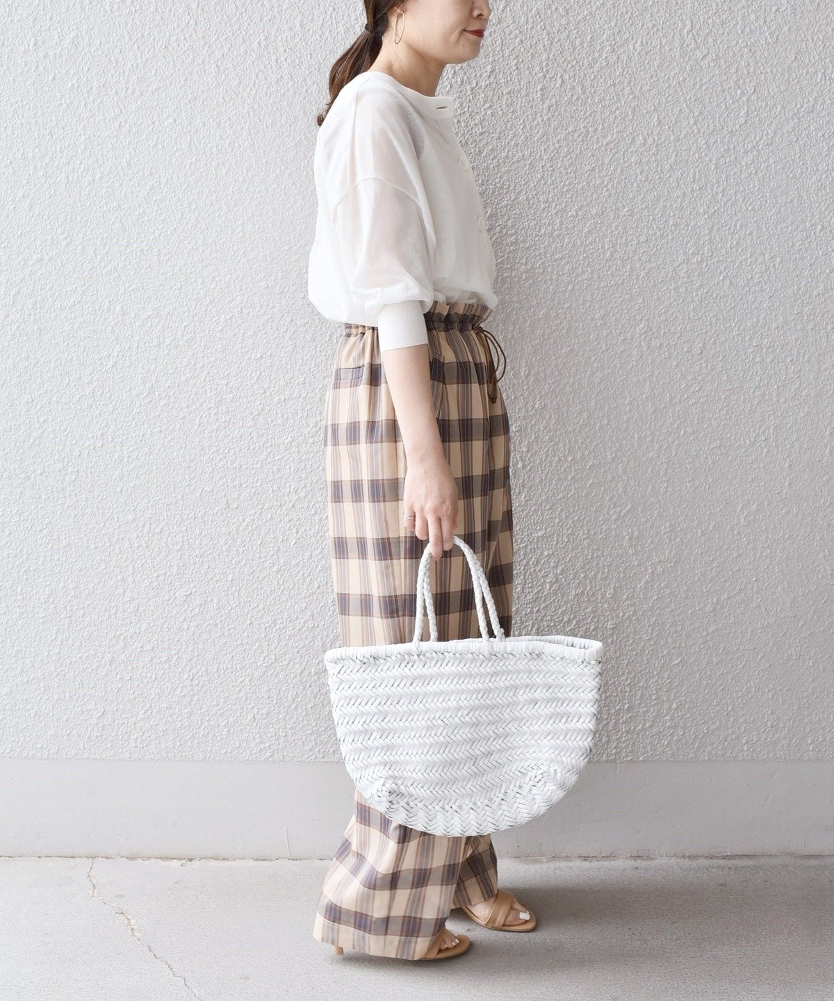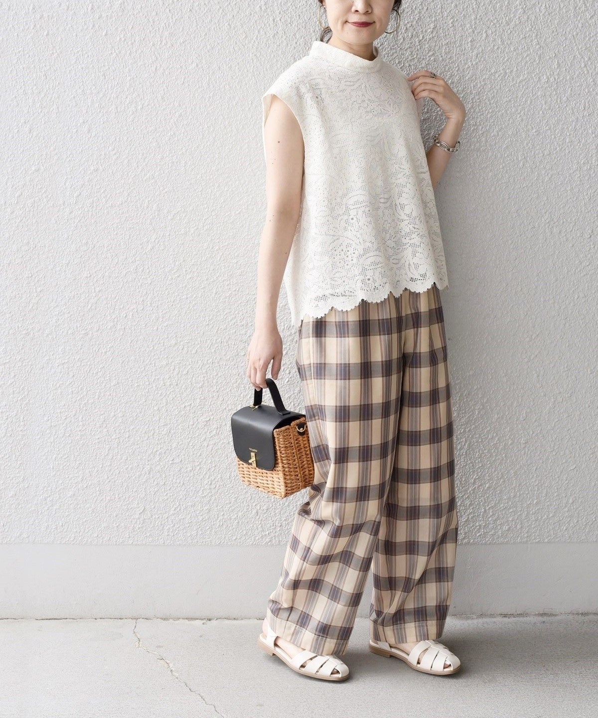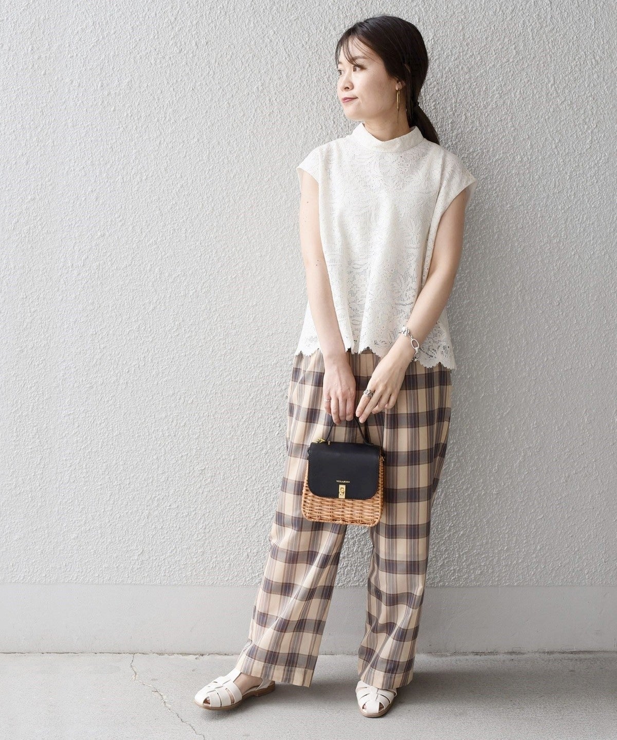夏にまといたい涼し気素材のチェック柄パンツ。