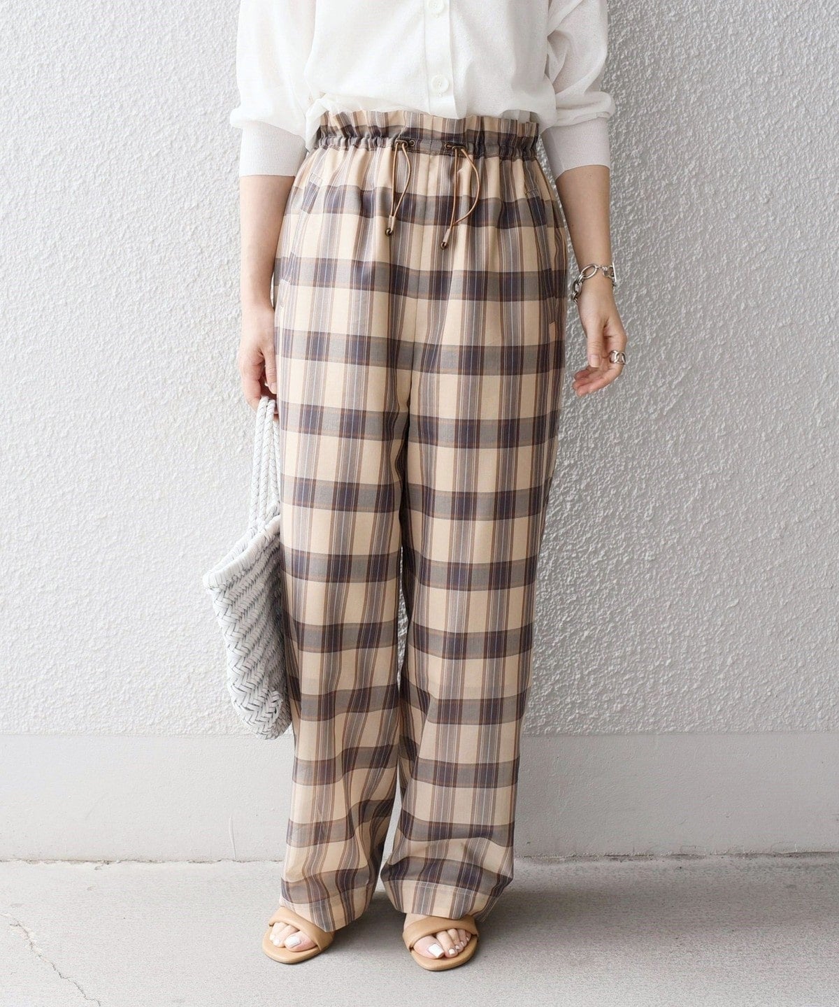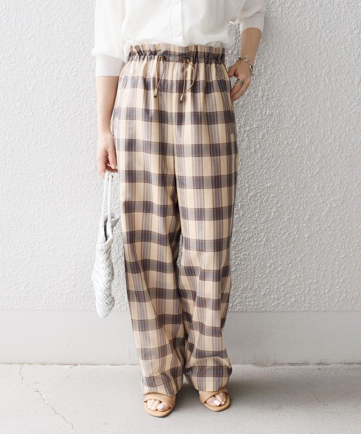 〈手洗い可能〉ウエストギャザーチェックパンツ