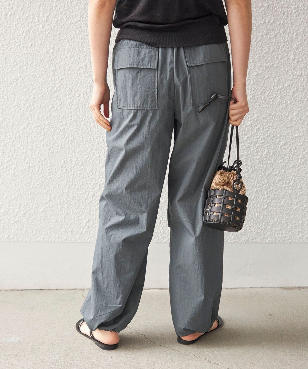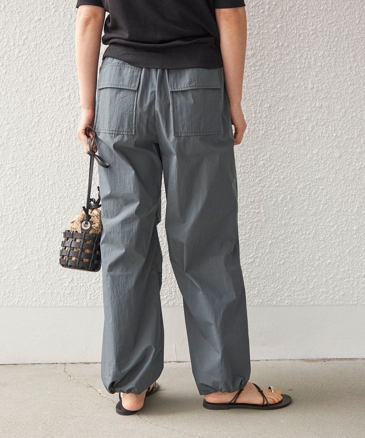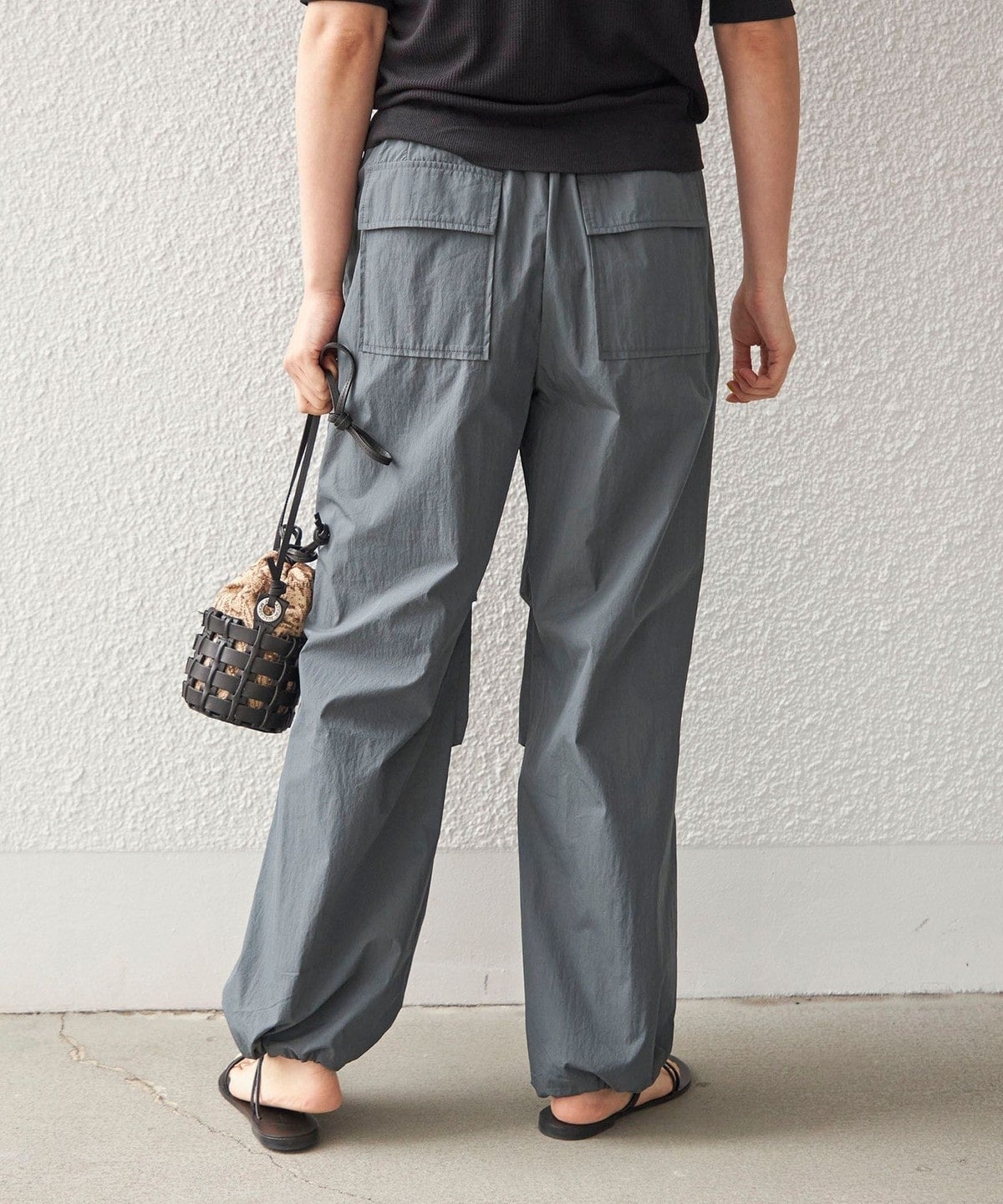 〈手洗い可能〉綿 ナイロン 裾 ドロスト パンツ