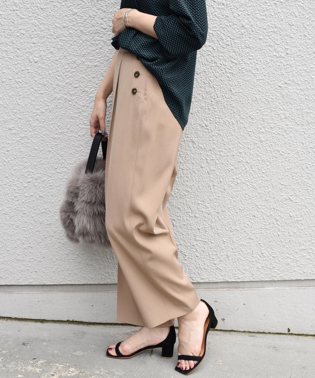 落ち感のあるスッキリとしたシルエットが、幅広く活躍してくれる綺麗めセミワイドパンツ。