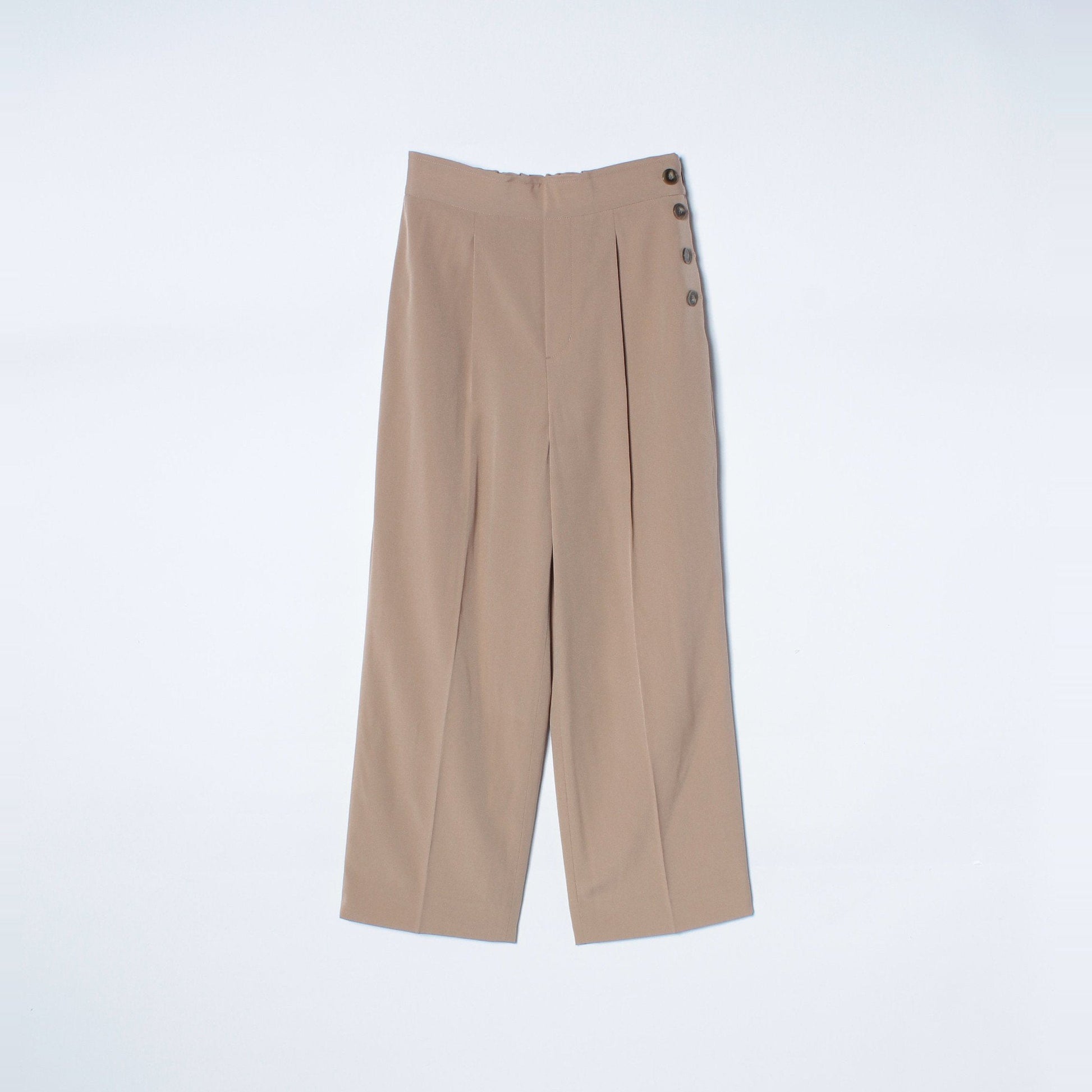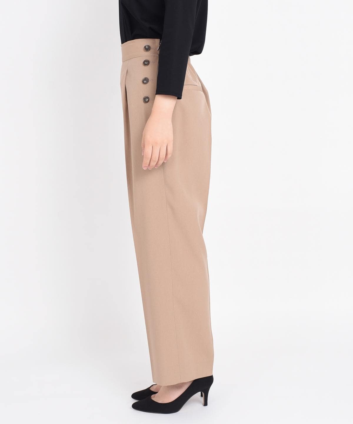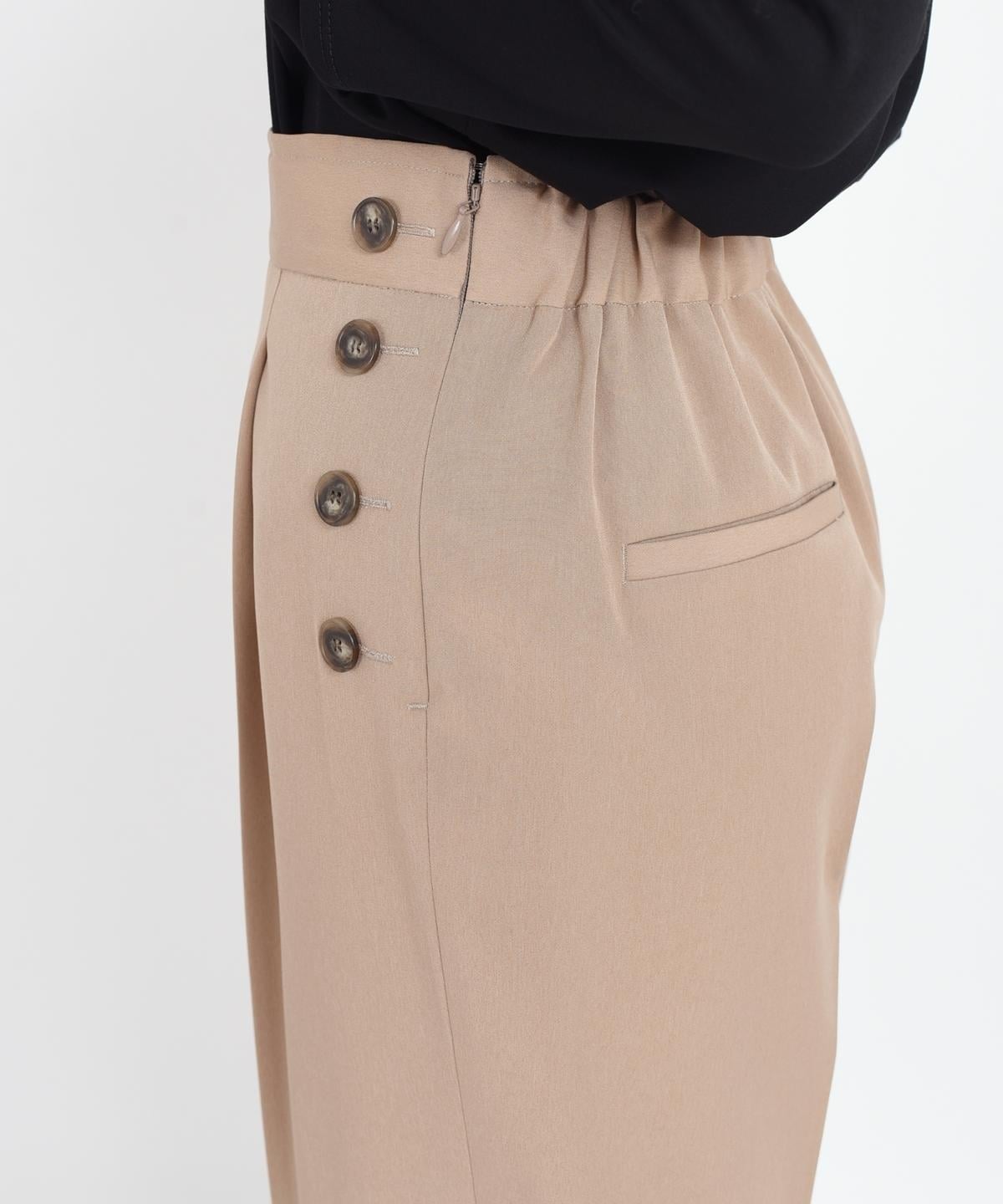 左サイドに施したボタンと、フロントタックがアクセントになった上品さのある1枚。
