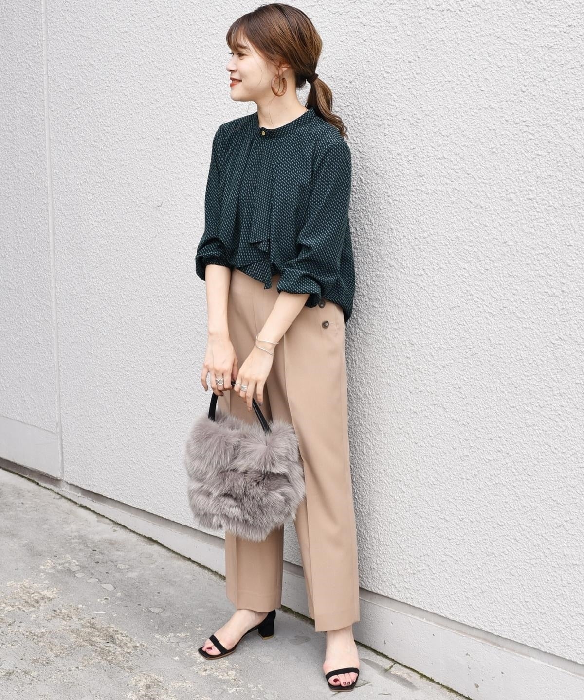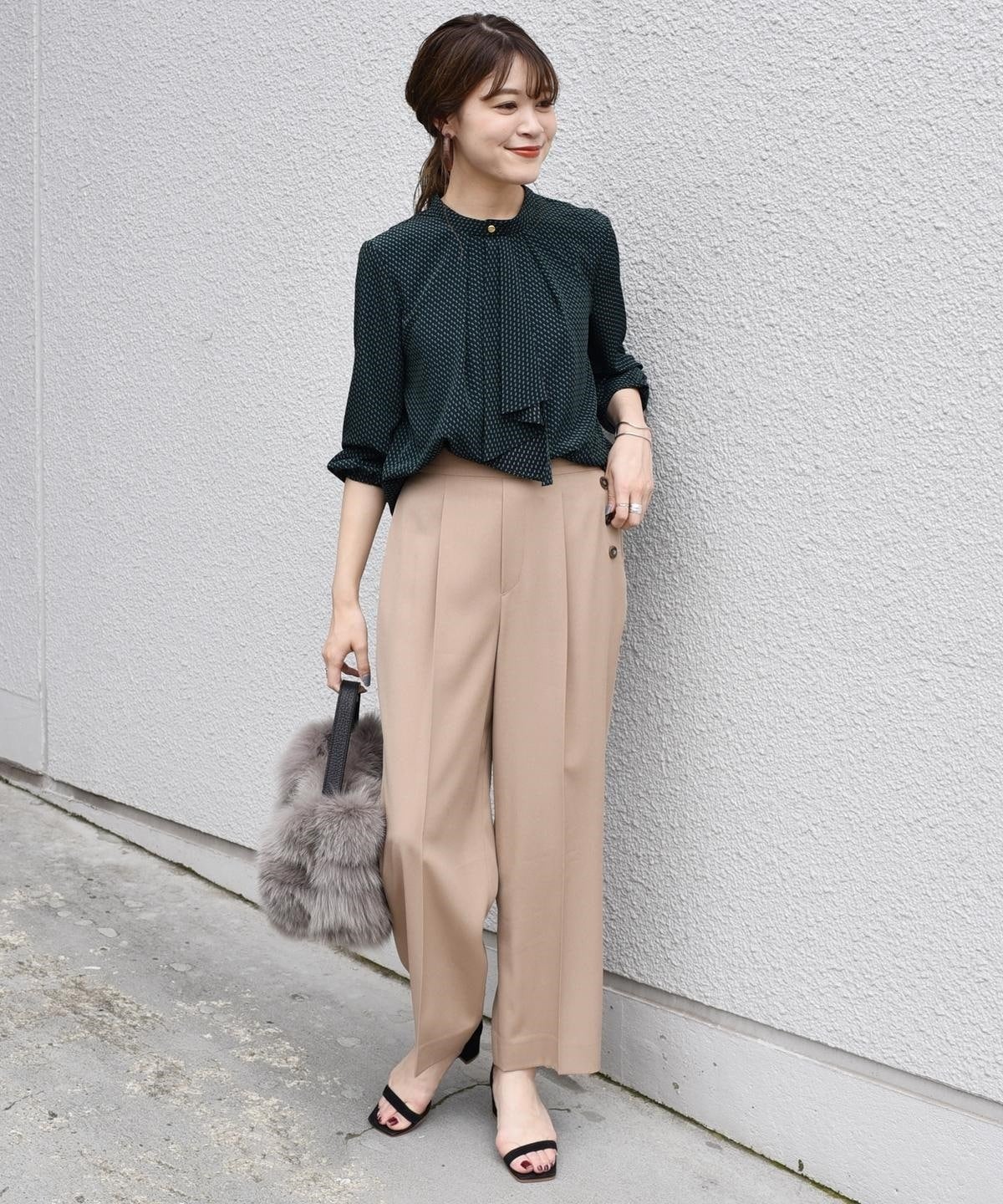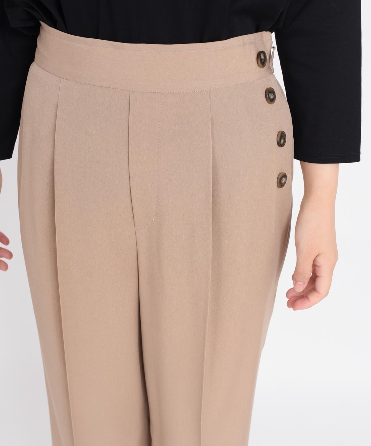 左サイドに施したボタンと、フロントタックがアクセントになった上品さのある1枚。