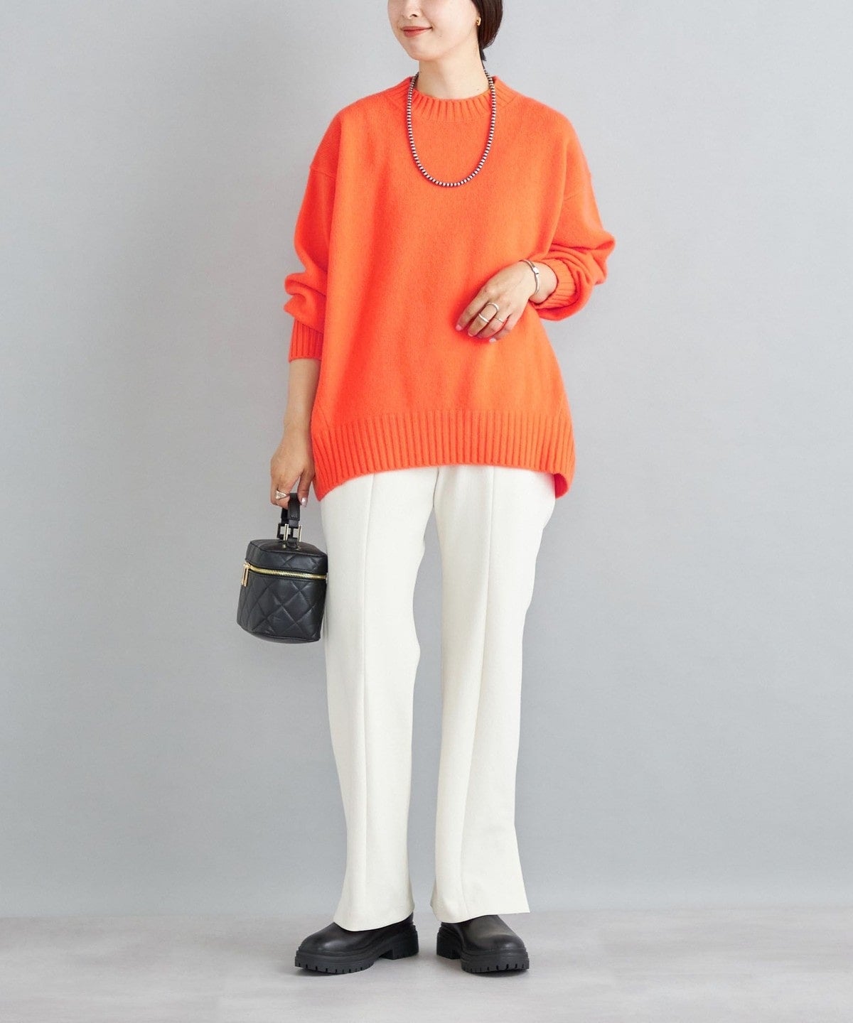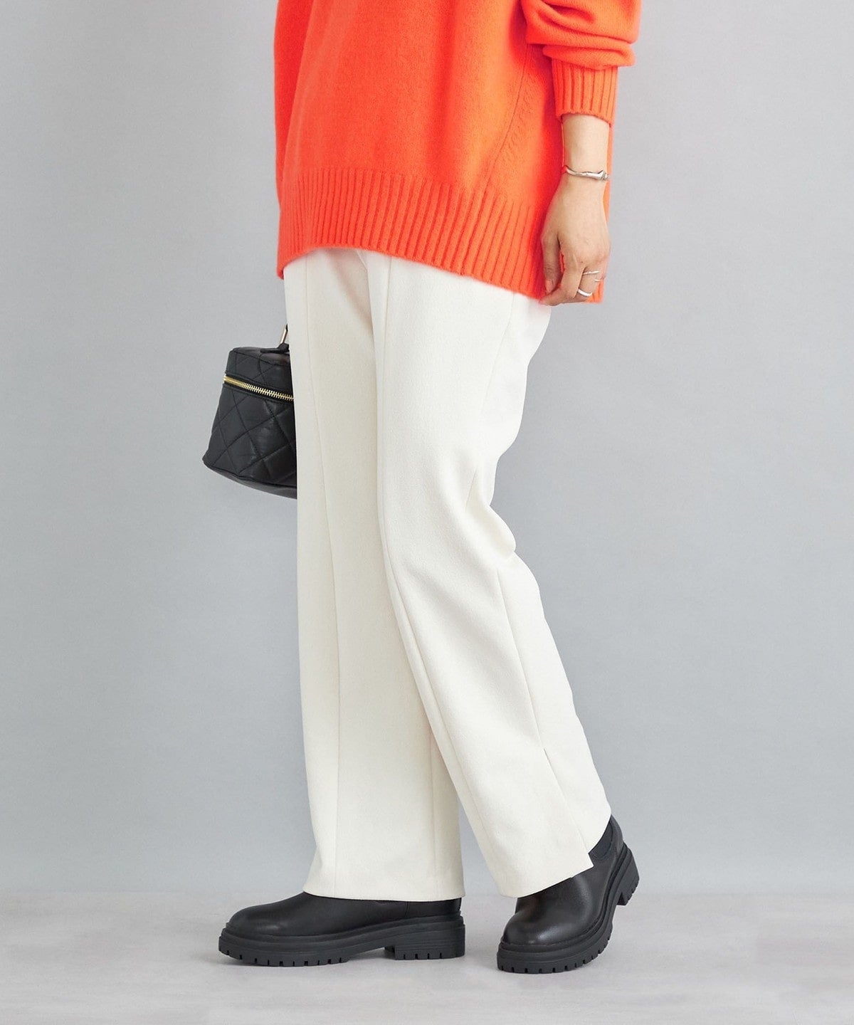 ウエストはゴム仕様のストレスフリーな穿き心地で、レッグラインを拾いすぎずシルエットを美しくみせてくれます。