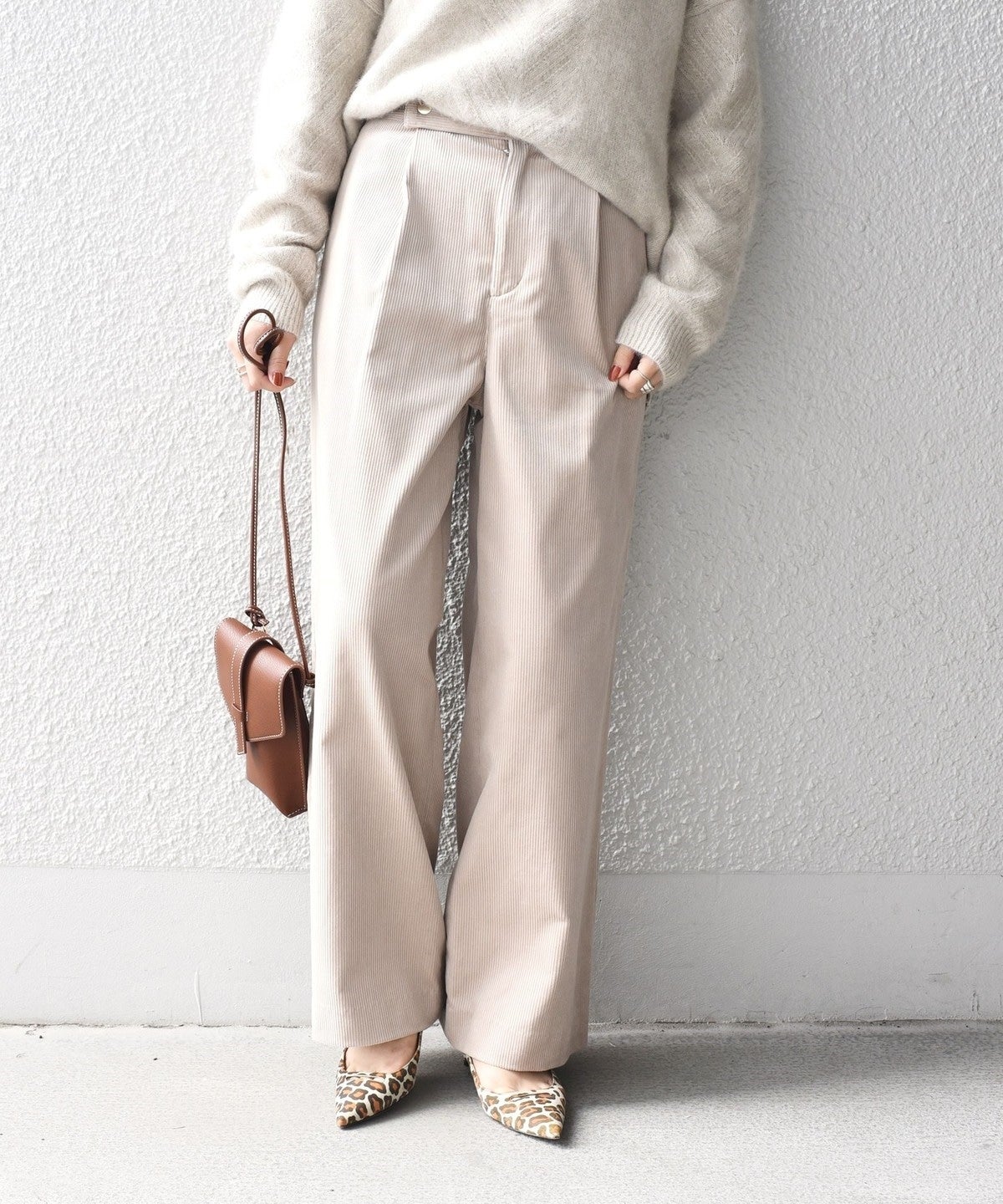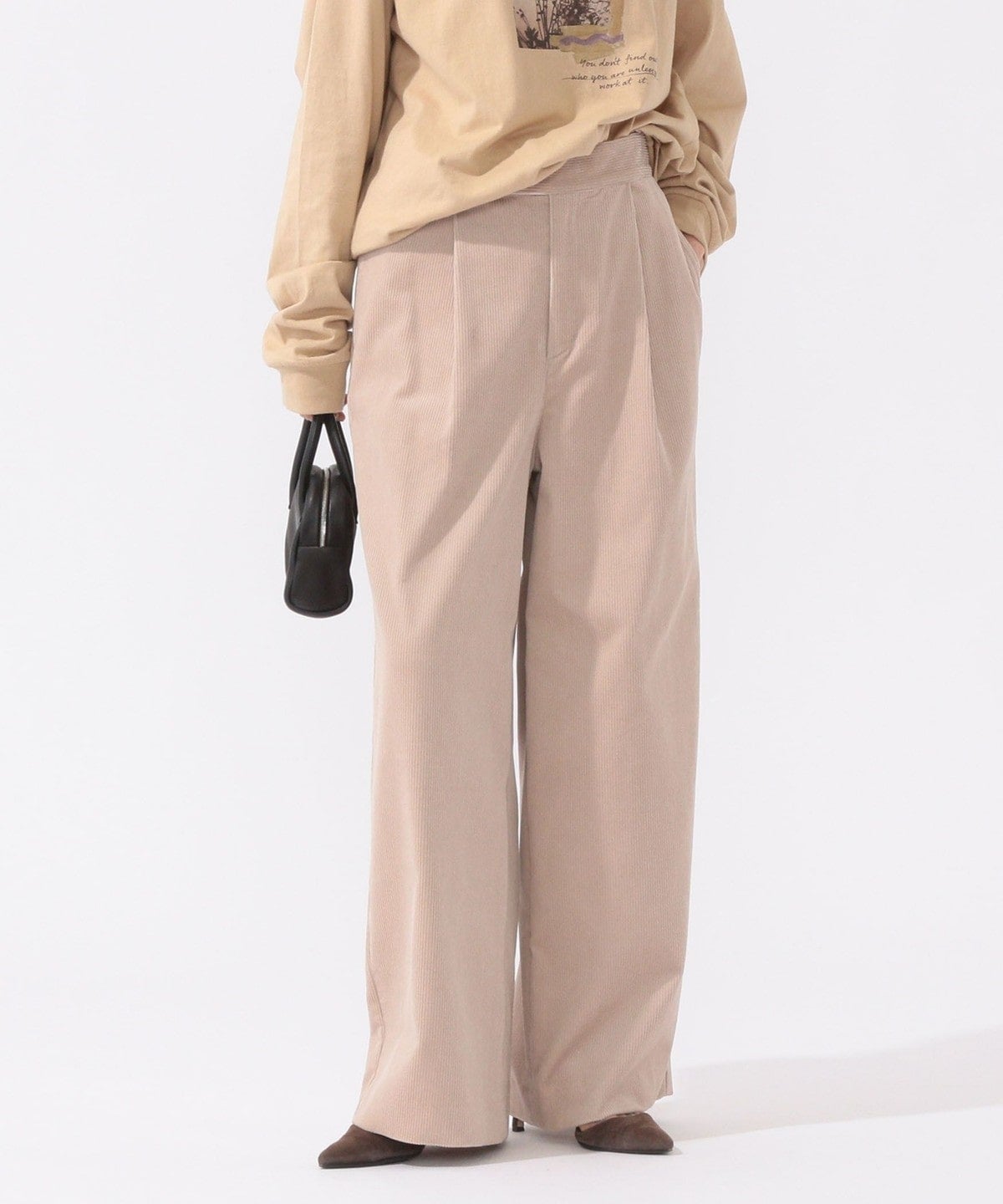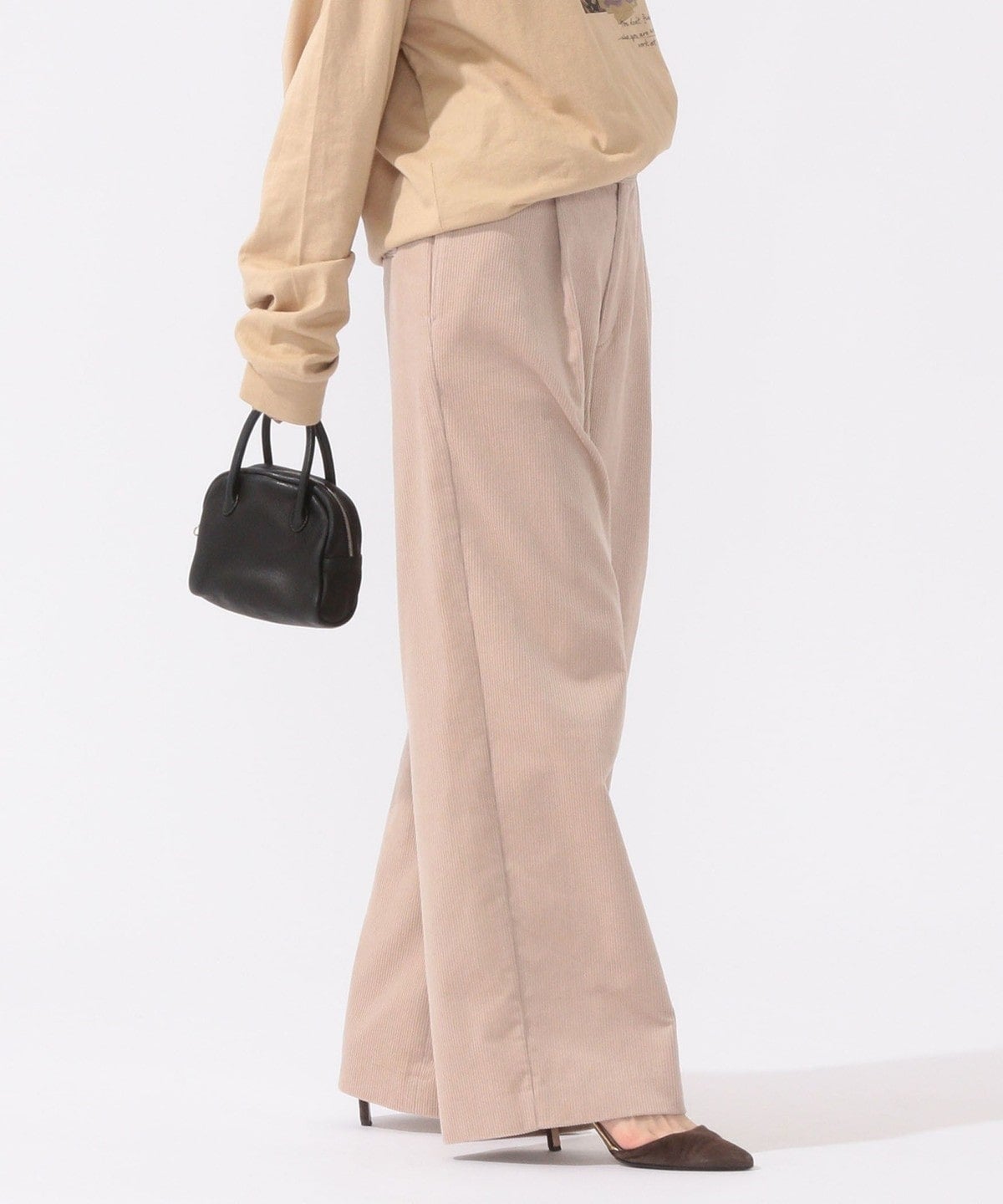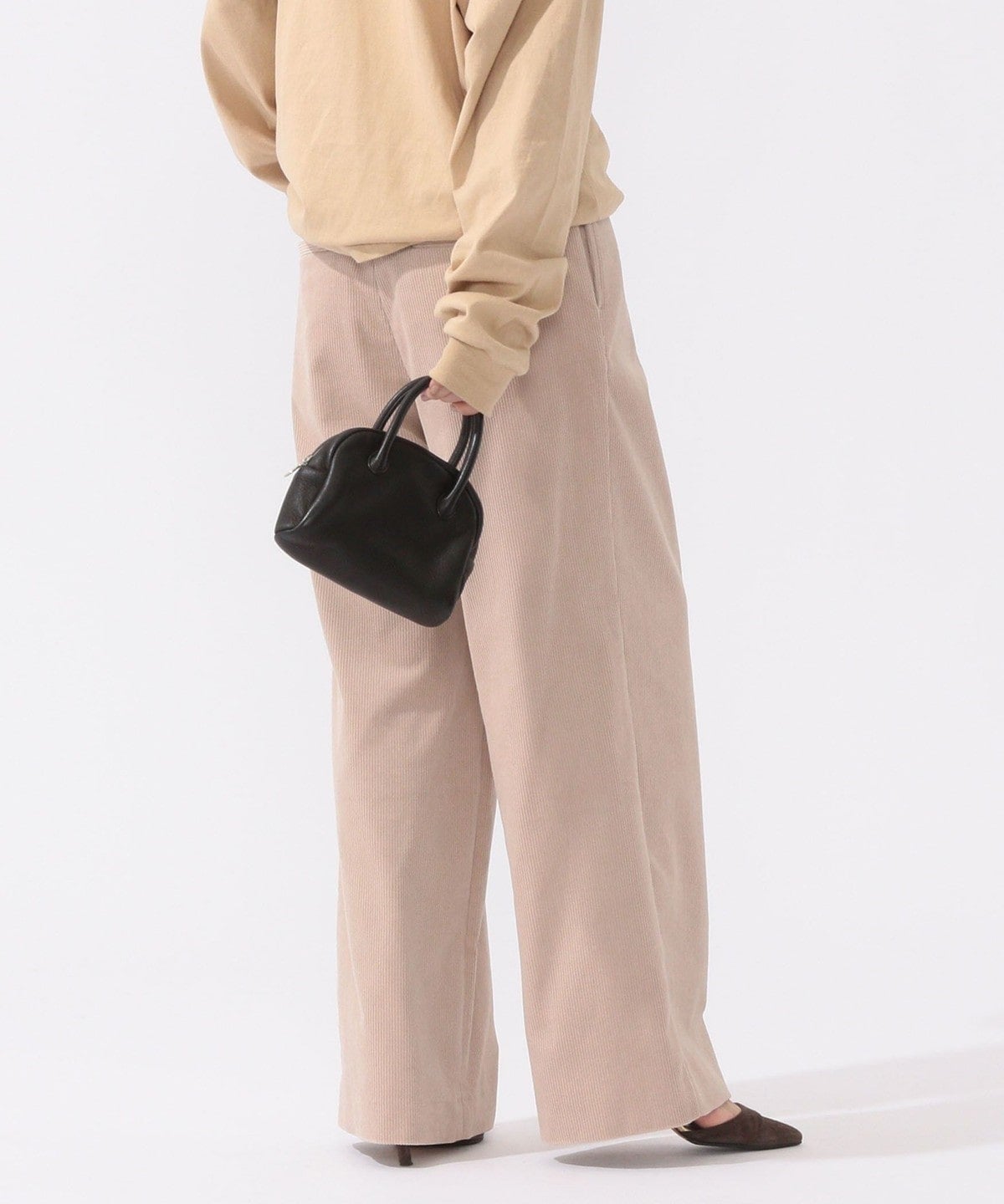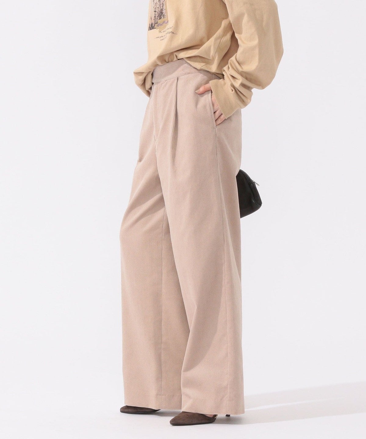 コーデュロイながらもしっとりとした風合いで大人っぽい印象の一着。